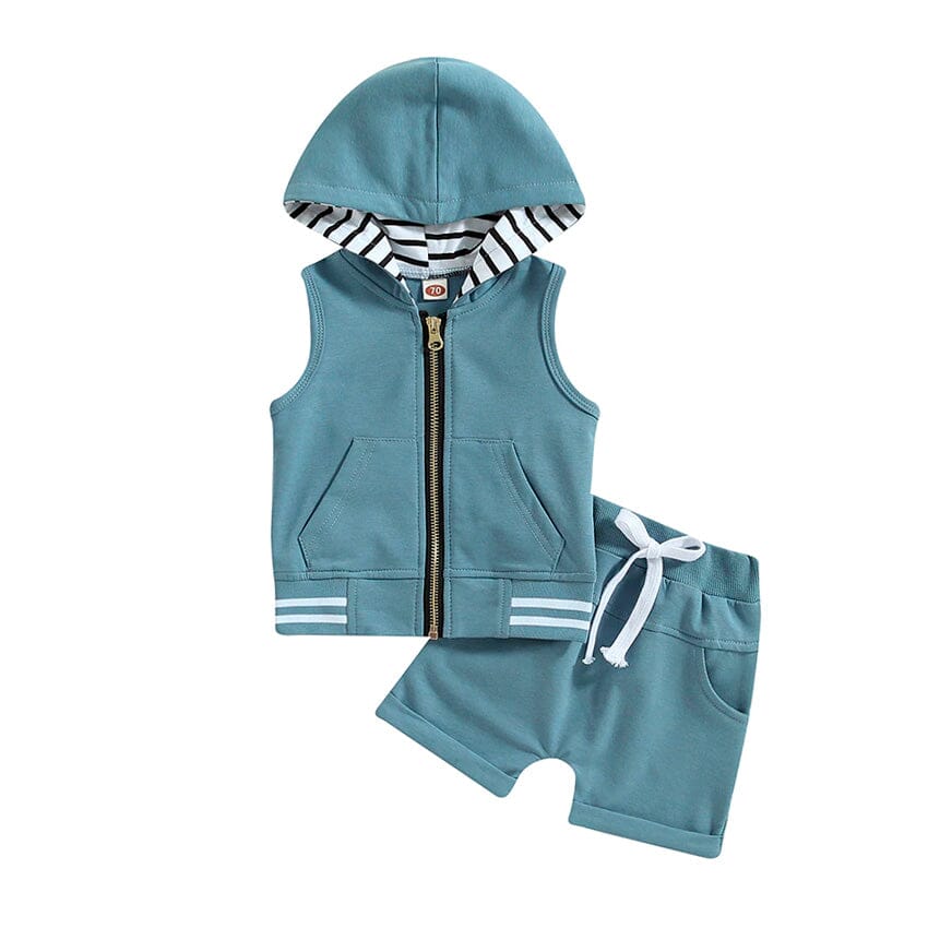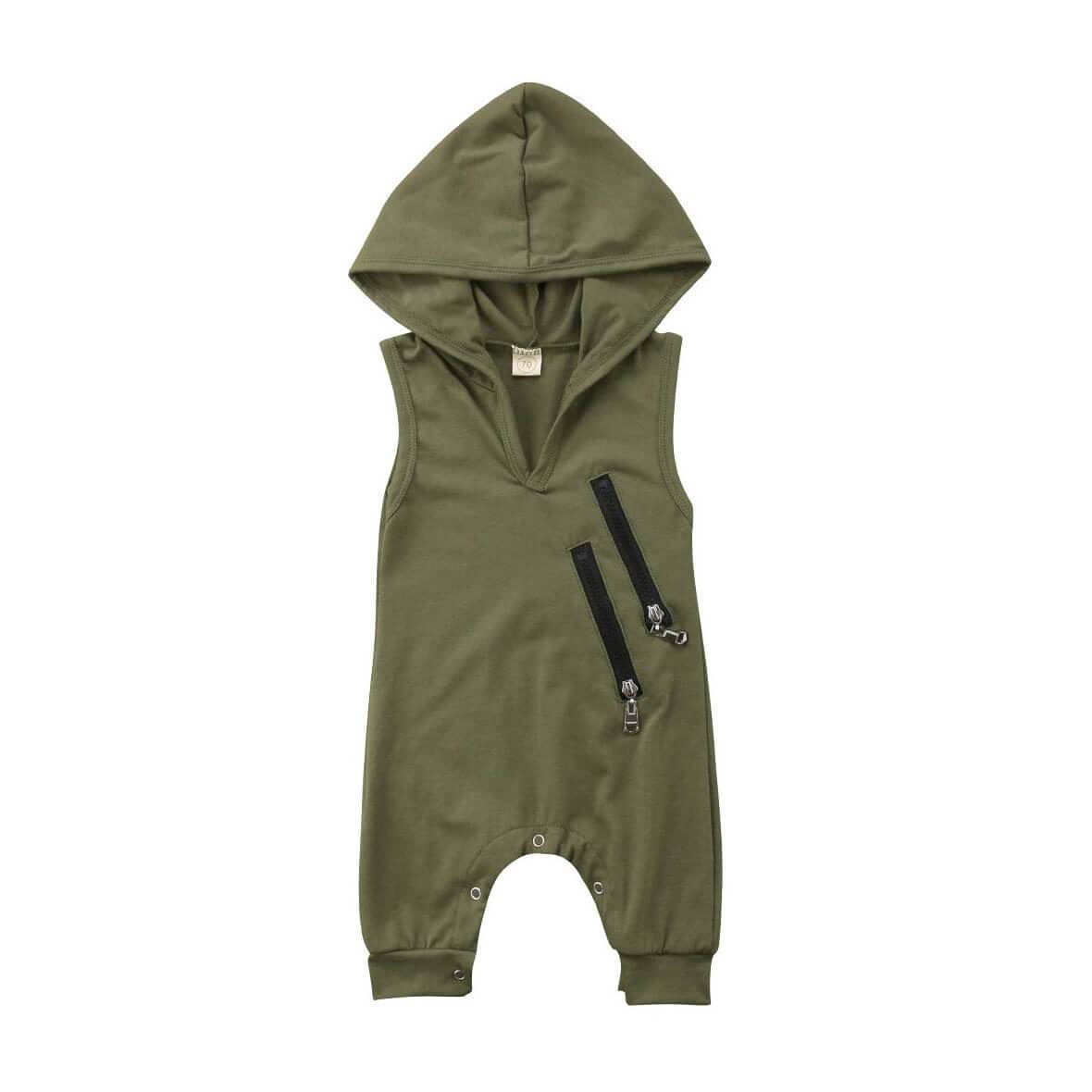 Sleeveless Zipper Hooded Baby Jumpsuit