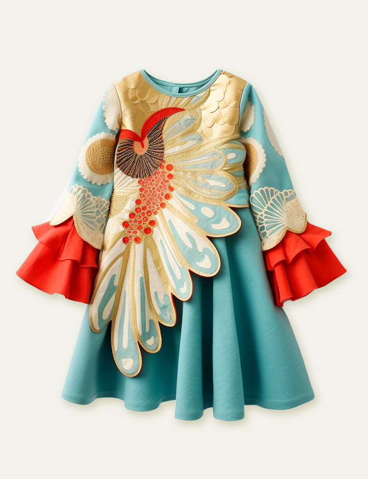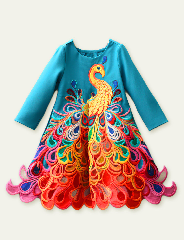 Toddler Kid Girl Gorgeous Peacock Long Sleeves Dress
