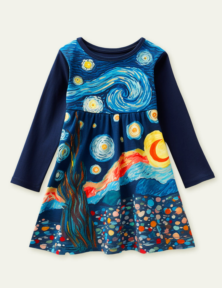 Toddler Kid Girl Starry Sunset Long Sleeve Dress