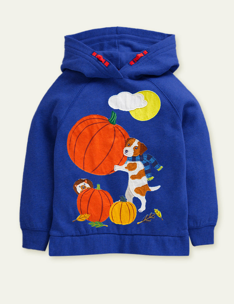 Toddler Kid Unisex Puppy Carrying Pumpkin Appliqu茅 Pull Over Hoodie