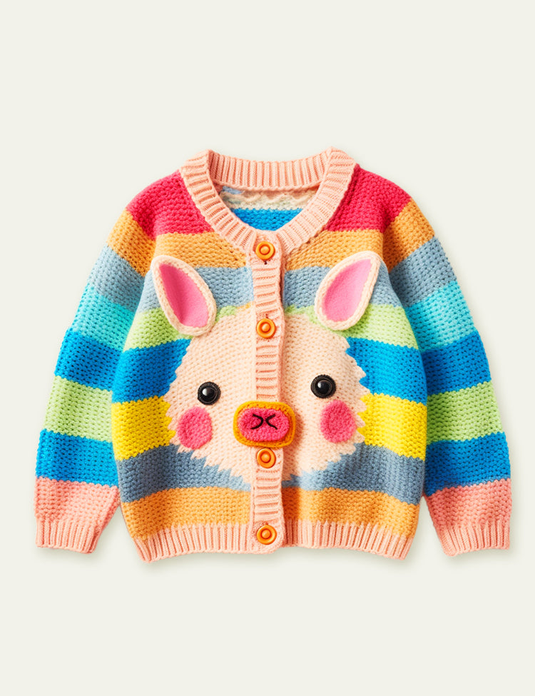 Toddler Kid Cute Piggy Rainbow Stripe Cardigan