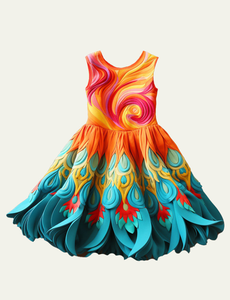 Toddler Kid Girl Gorgeous Peacock Open Dress