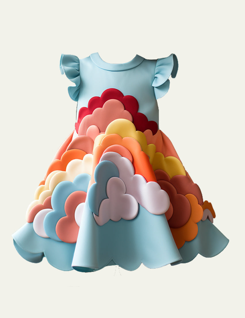 Toddler & Kids Rainbow Clouds Flutter-sleeve Dress