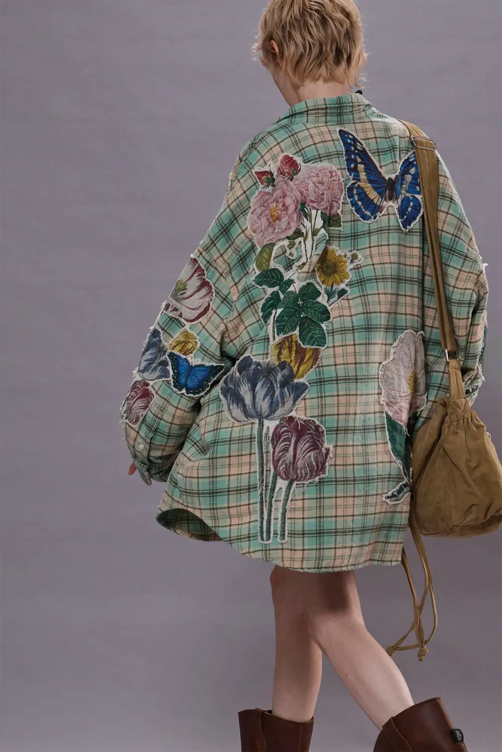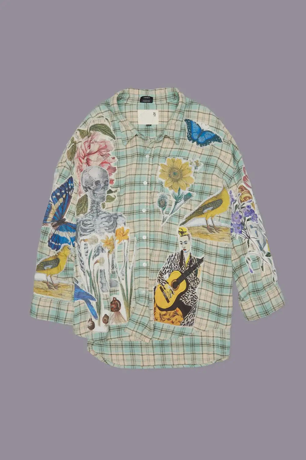 DROP NECK SHIRT - LIGHT GREEN PLAID W/ APPLIQUE