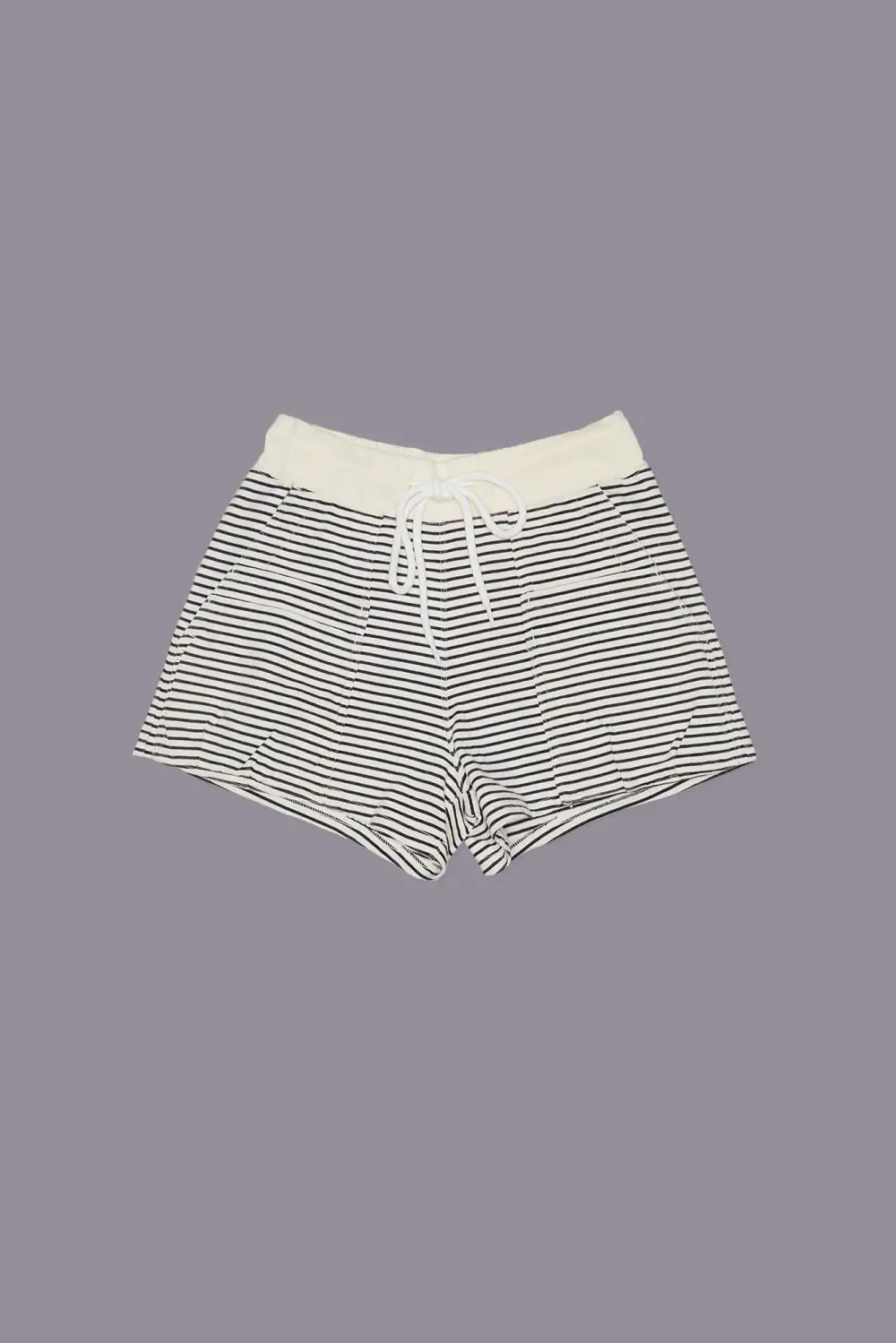 LAYERED POCKET SWEATSHORT - NAVY/ECRU NARROW STRIPE