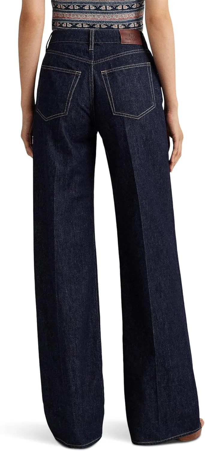 Lauren Ralph Lauren Women's Mid-Rise Wide Leg Jeans in Deep Rinse Wash