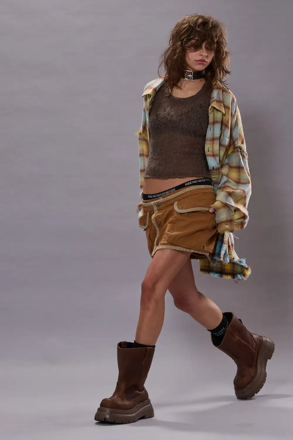 TAILORED MICRO SHORT - BROWN HERRINGBONE