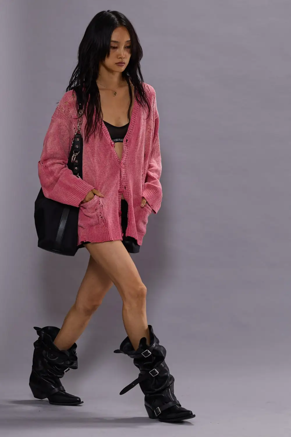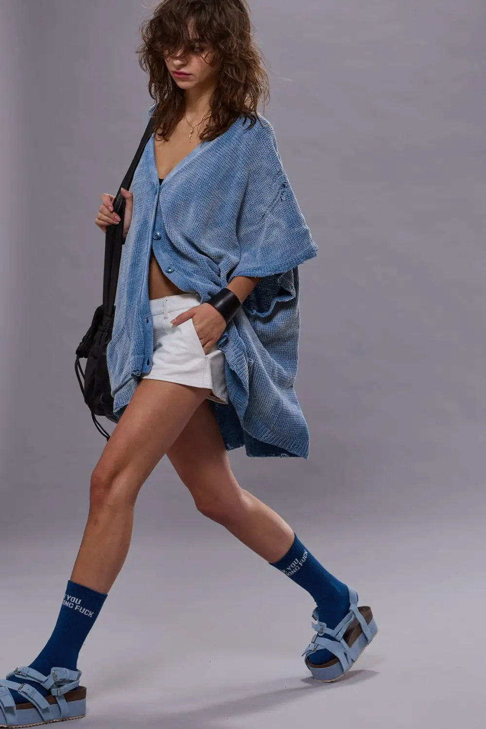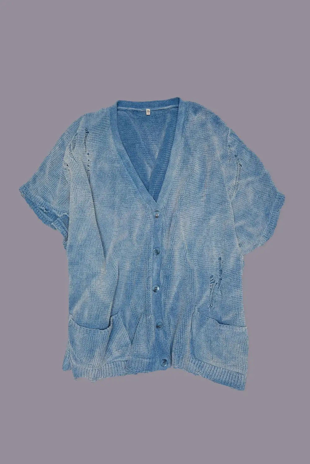 SLEEVELESS BOXY CARDIGAN DRESS - LIGHT BLUE