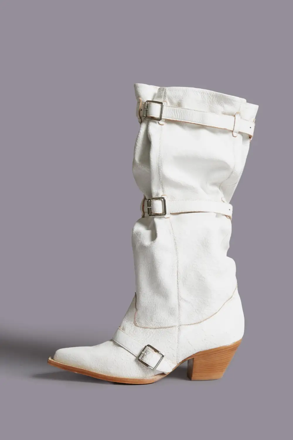 SHRUNKEN LEATHER JACKET WITH STAND COLLAR - CRACKLE WHITE