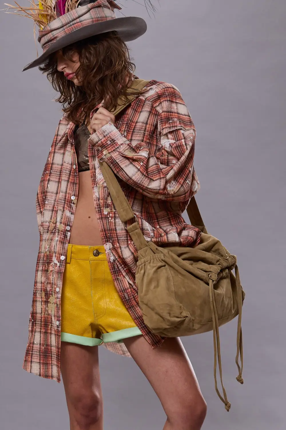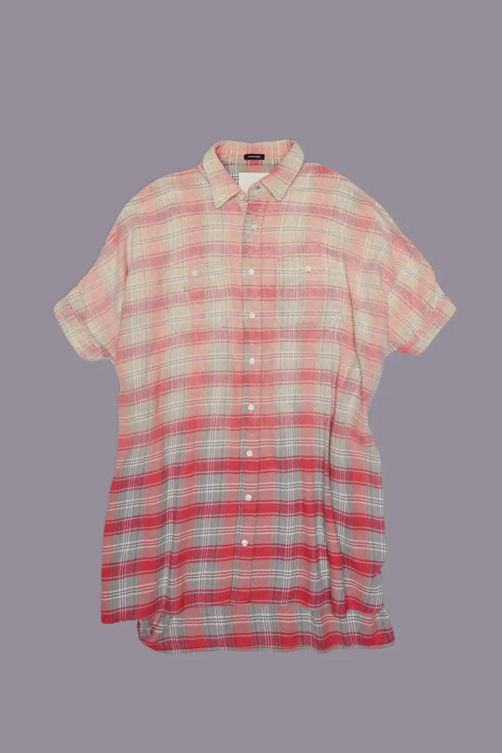 PLAID OVERSIZED BOXY SHIRTDRESS - BLEACHED OUT PINK/GREY PLAID