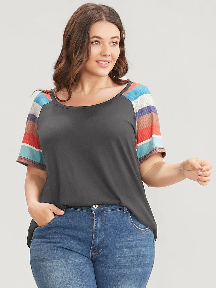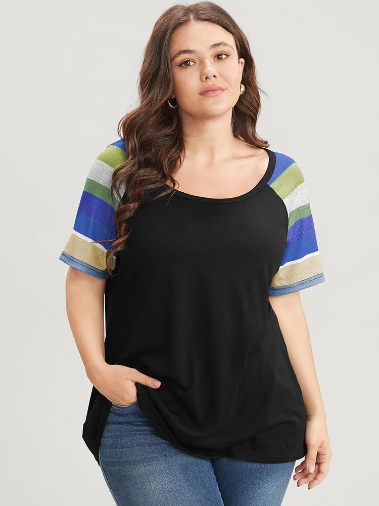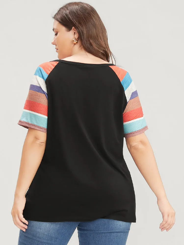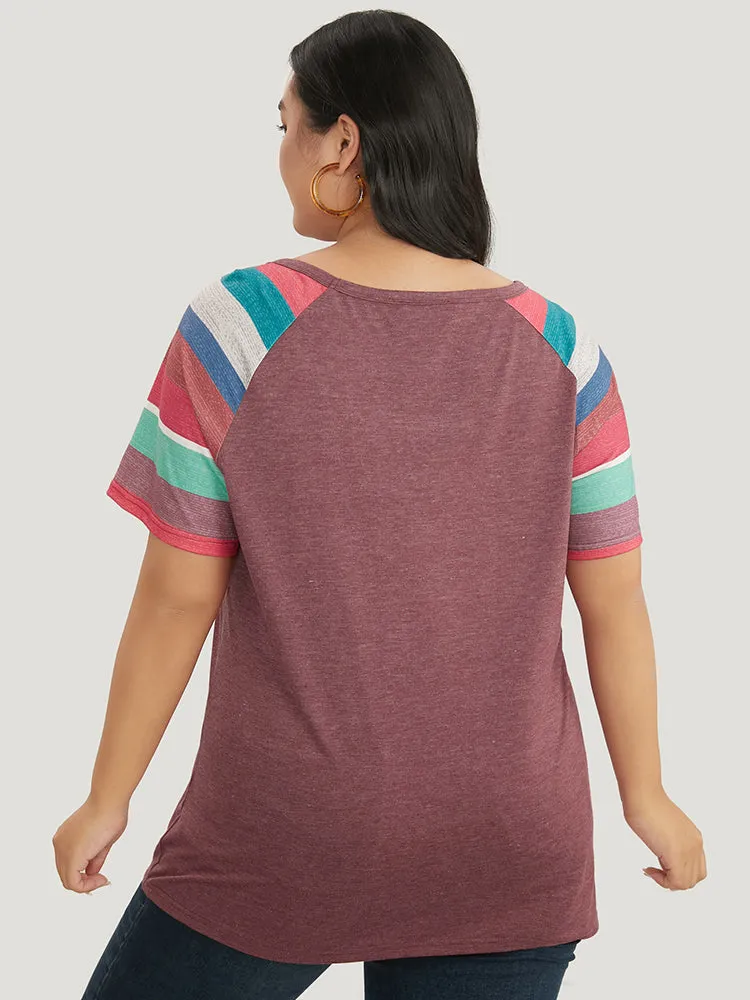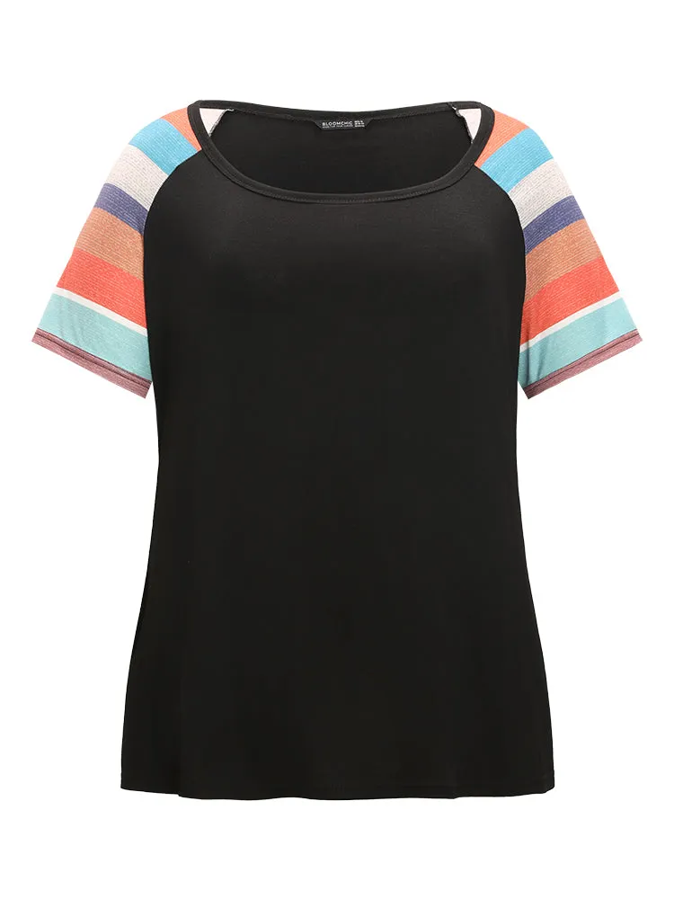 Striped Contrast Raglan Sleeve Round Neck T-shirt