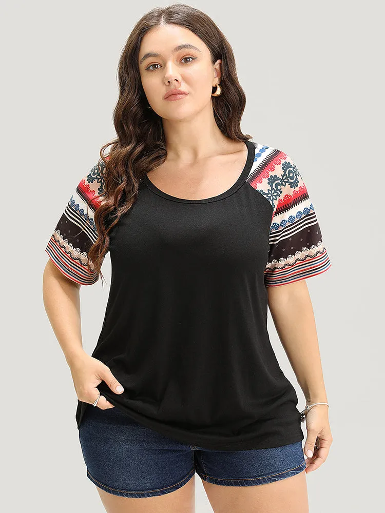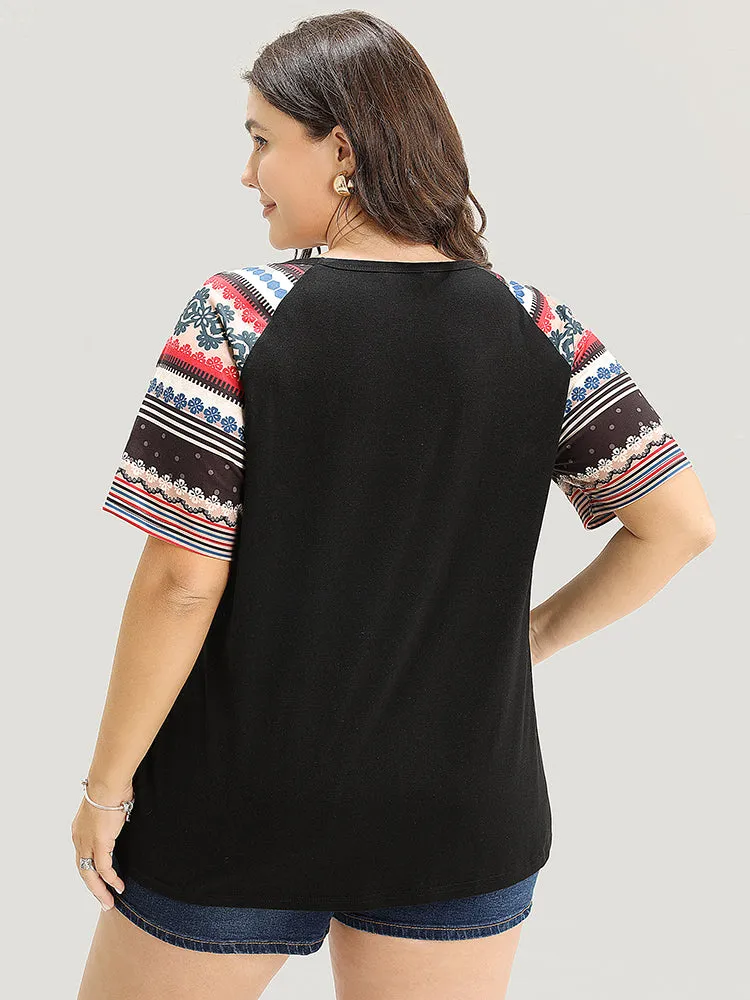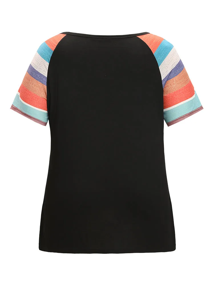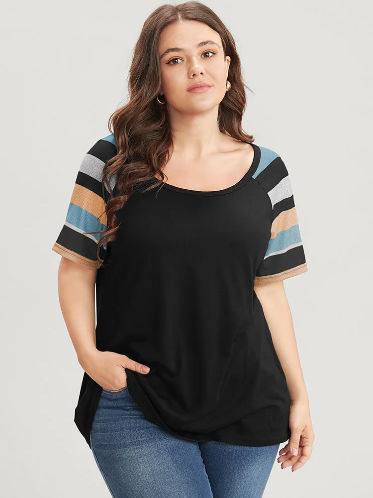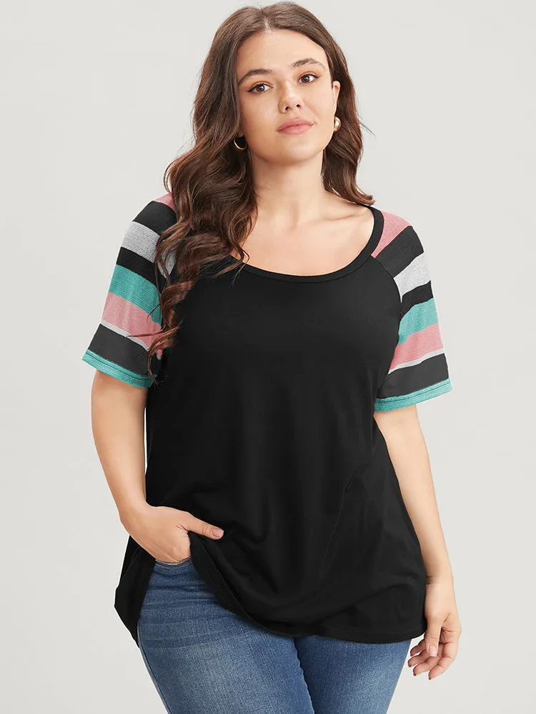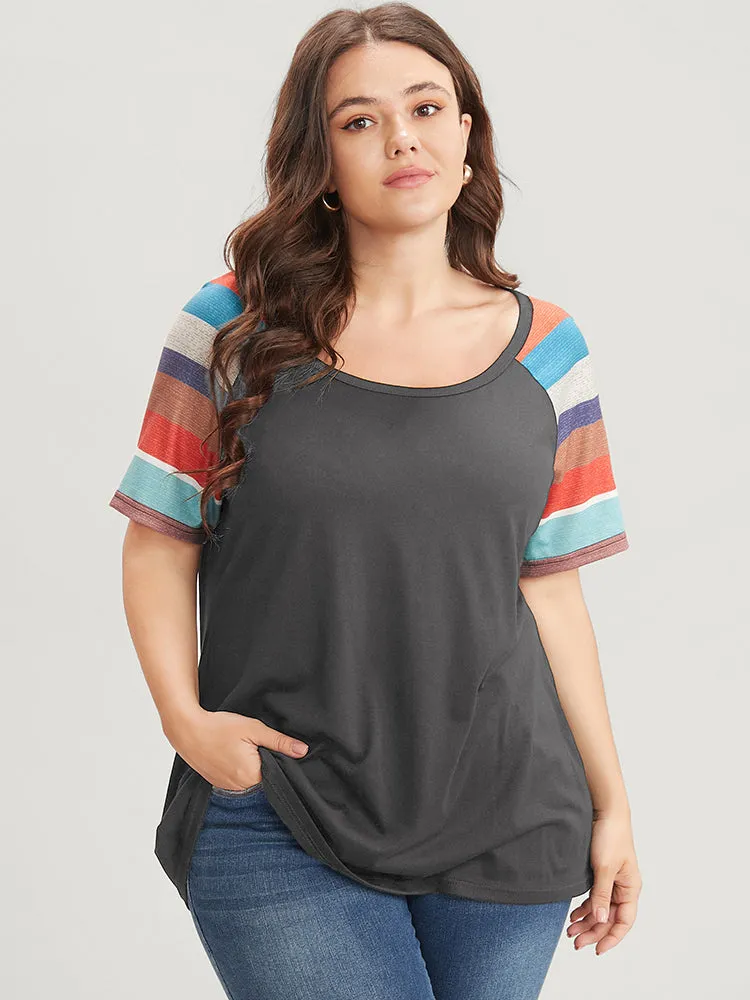 Striped Contrast Raglan Sleeve Round Neck T-shirt