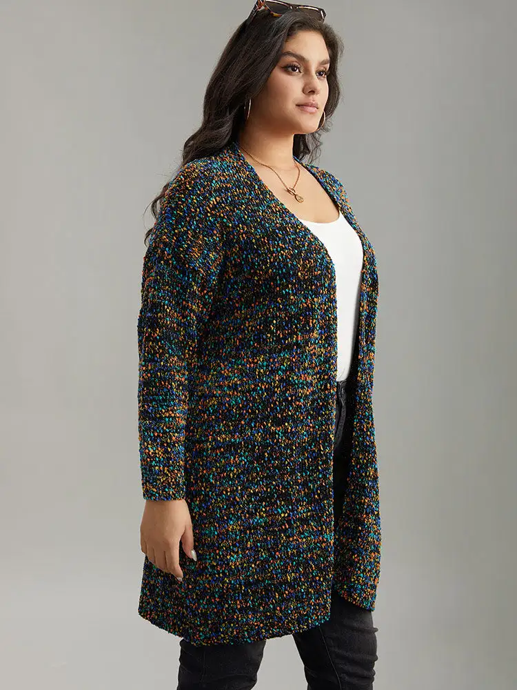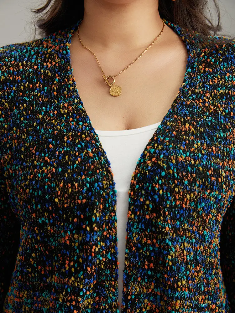Colour Textured Open Front Cardigan