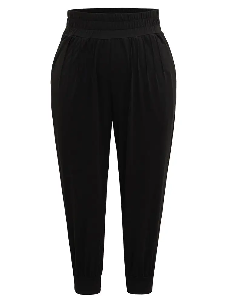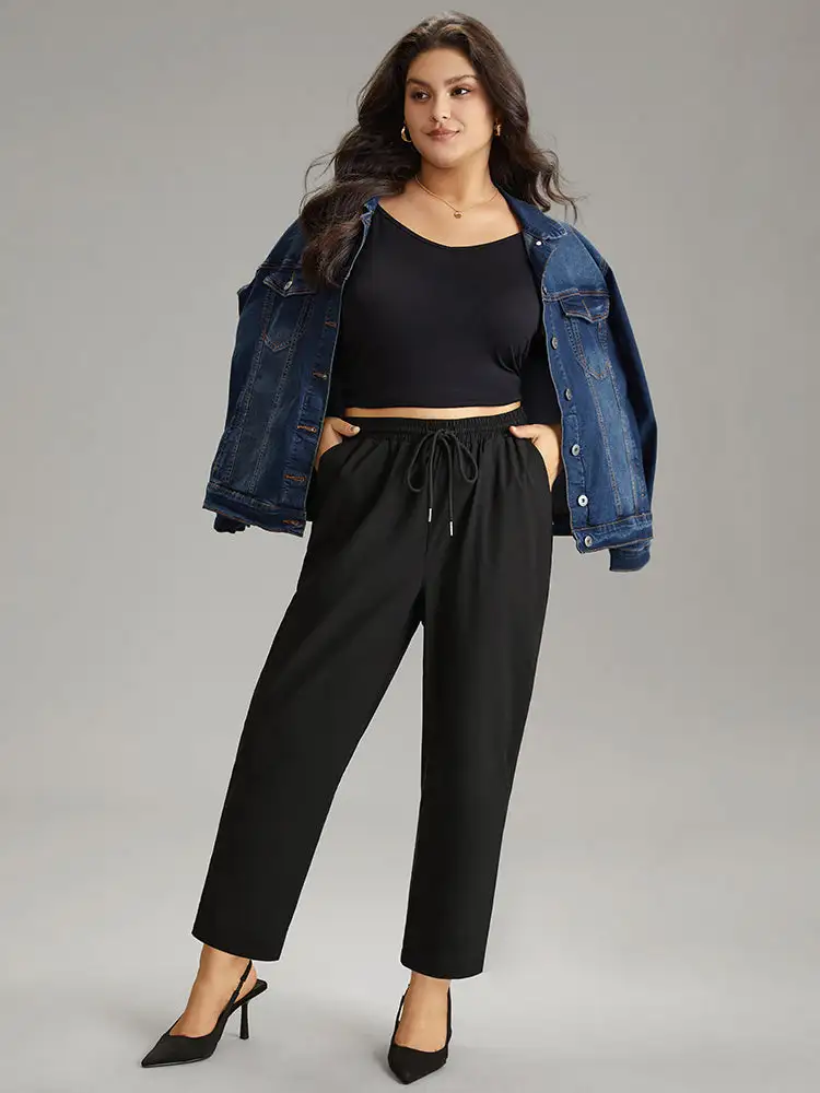 Solid Drawstring Pocket Elastic Waist Pants