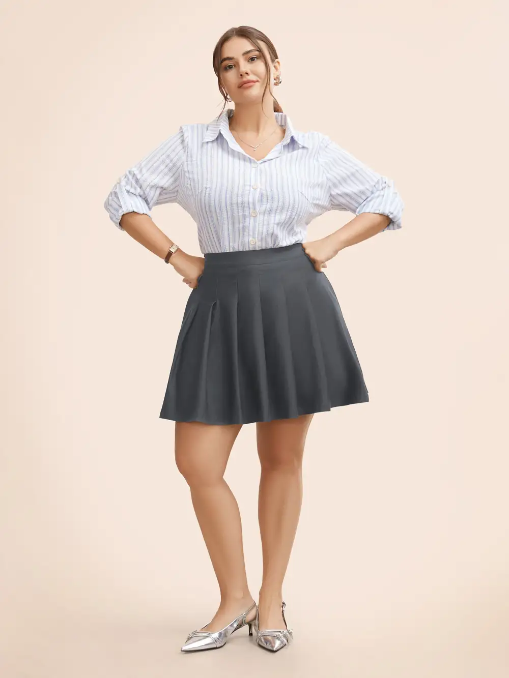 Stretch Woven Hidden Shorts Mini Skirt