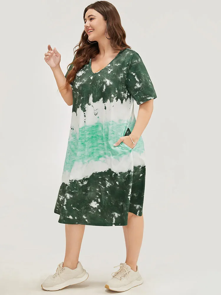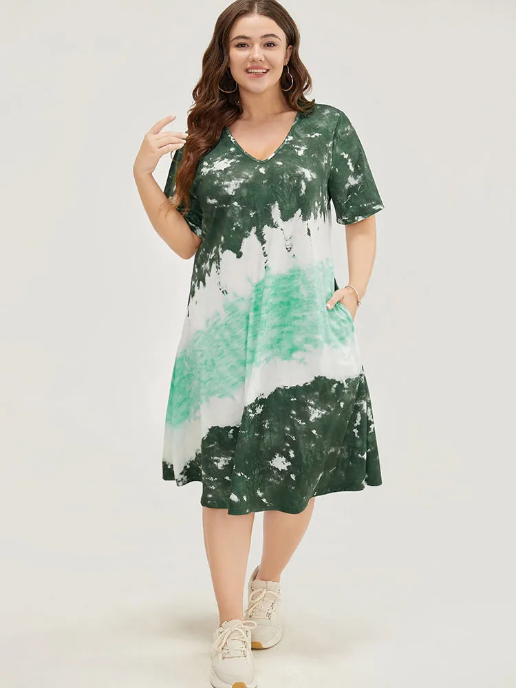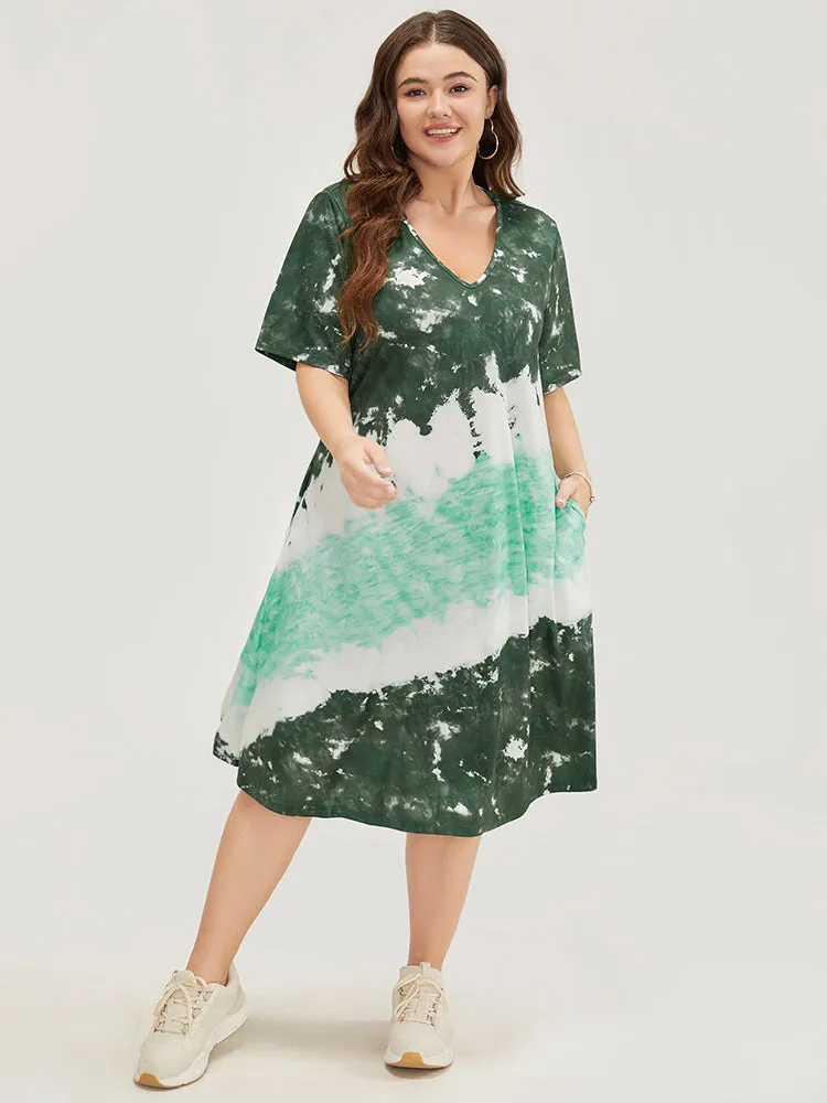 Tie Dye V Neck Pocket Midi Dress