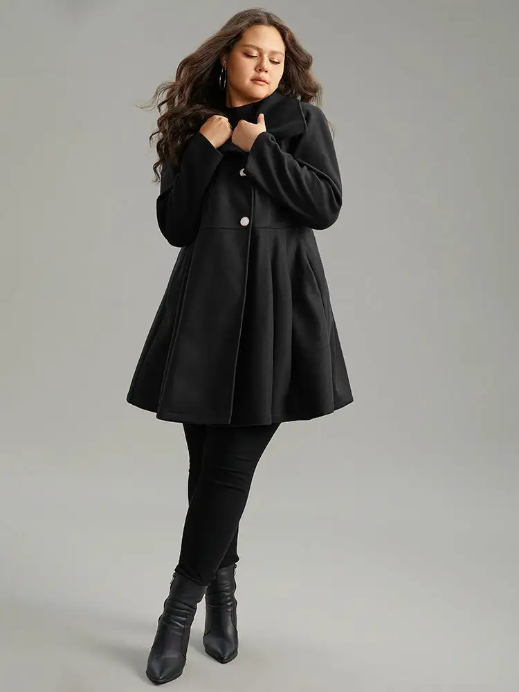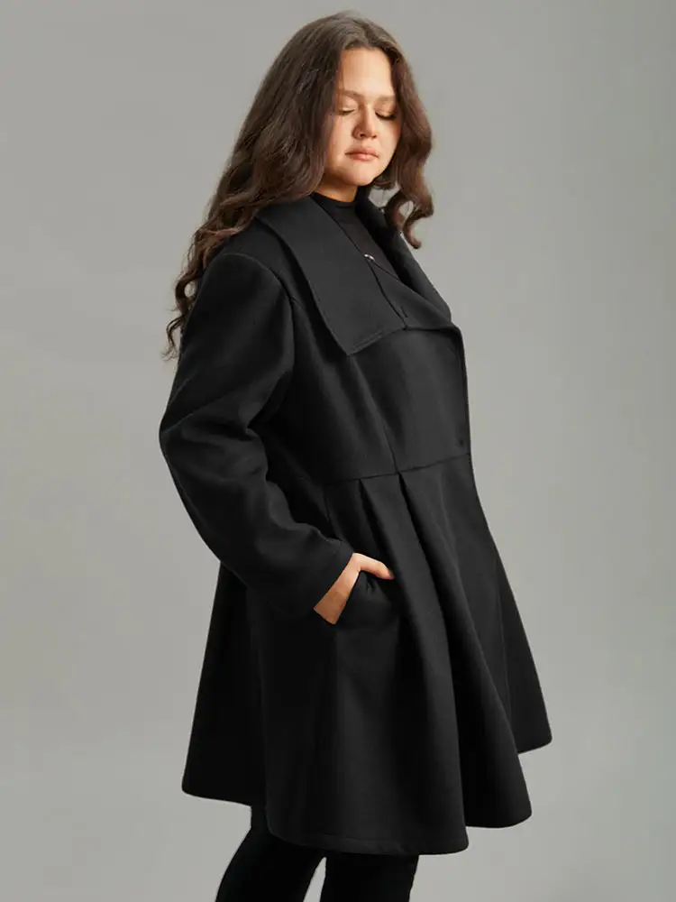 Plain Button Up Pocket Asymmetrical Lapel Collar Coat
