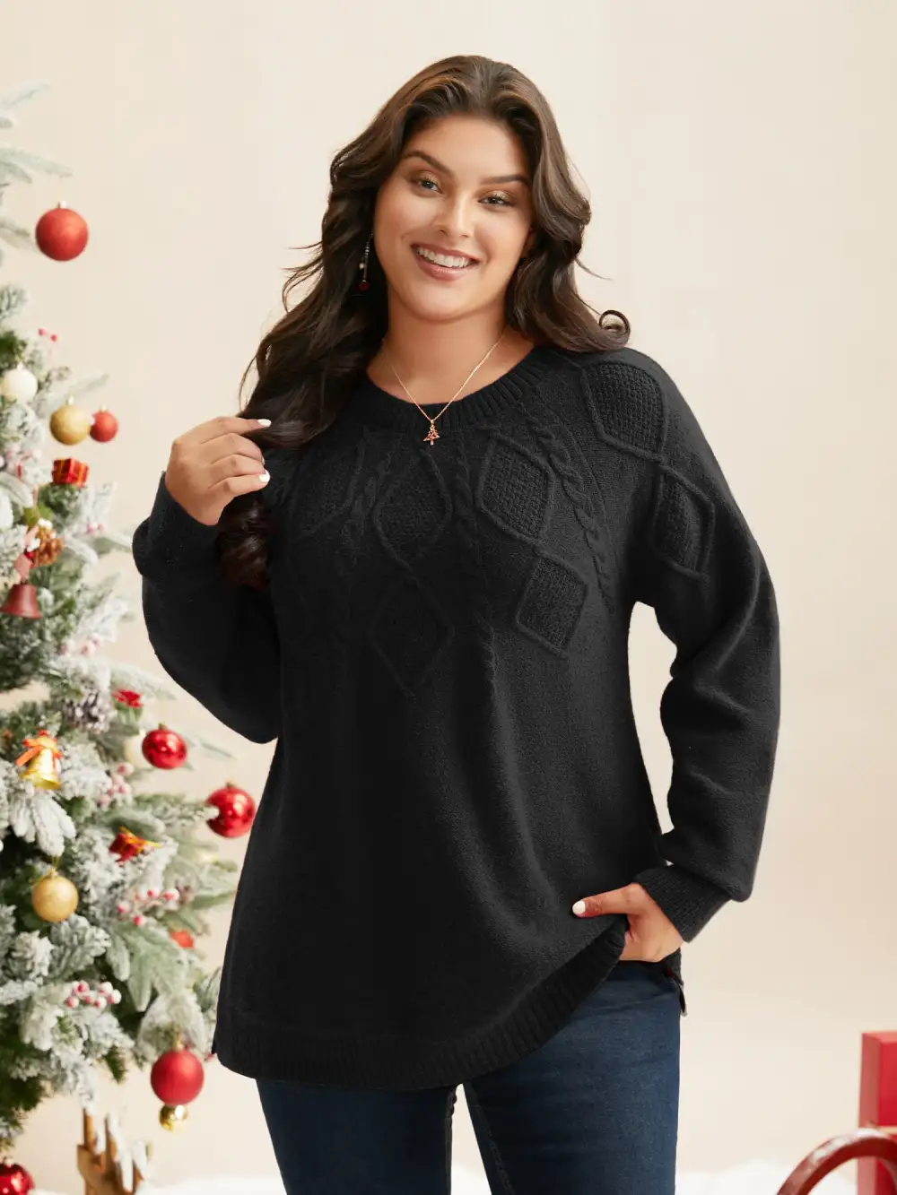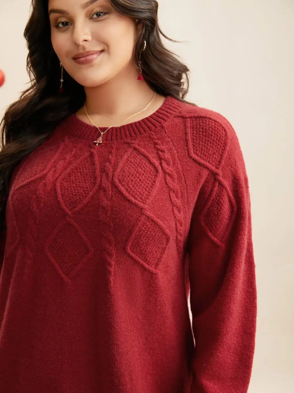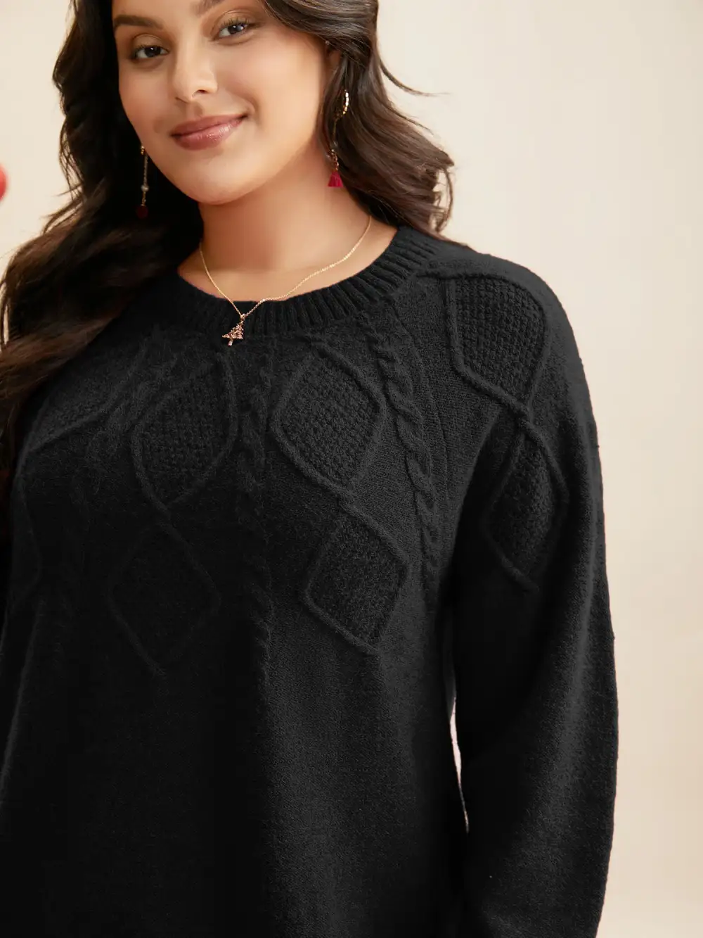 Cable Knit Bodice Crew-Neck Pullover