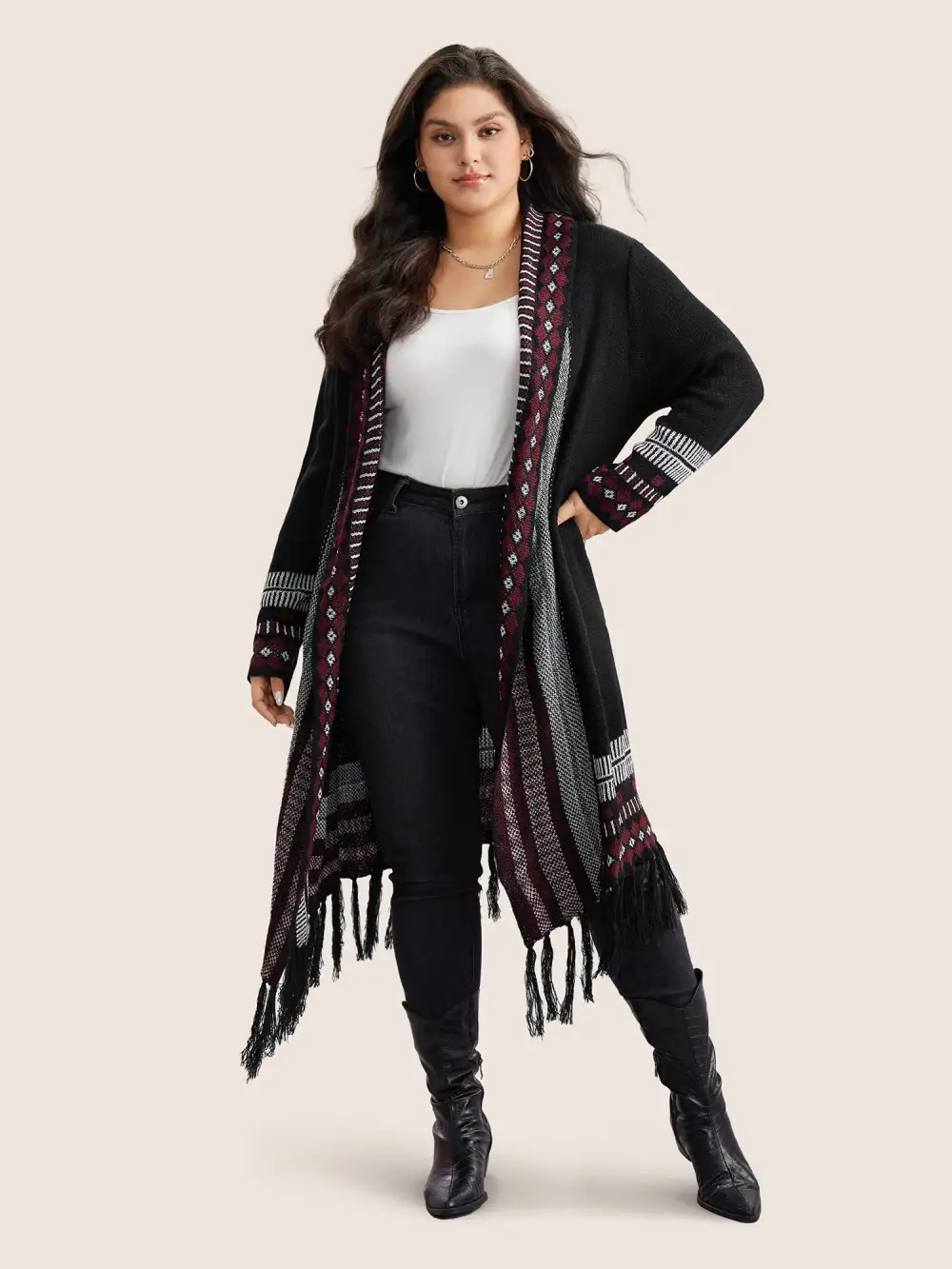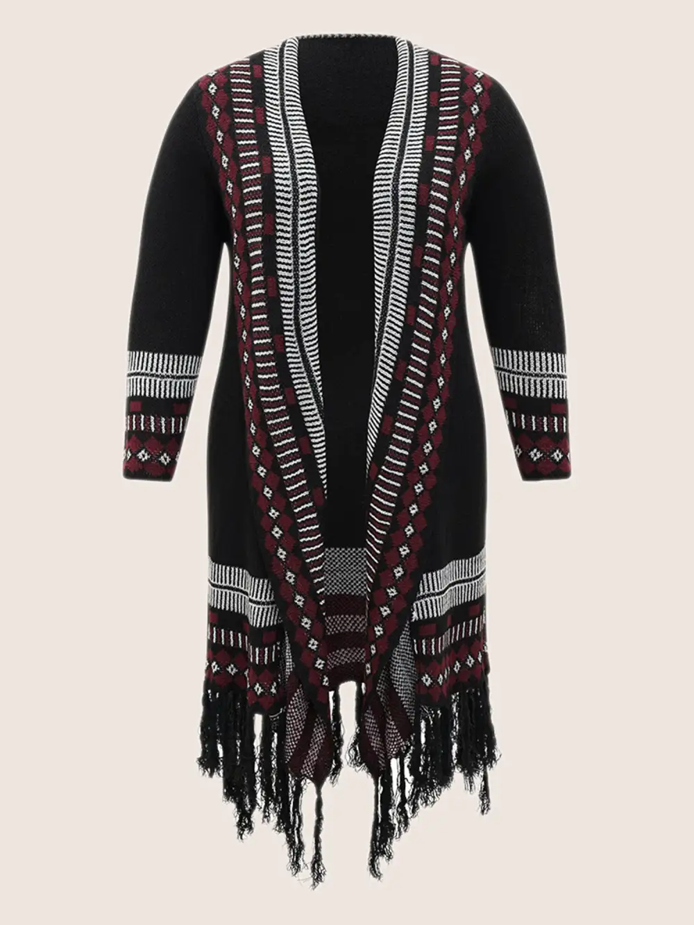 Bandana Print Fringe Trim Maxi Cardigan