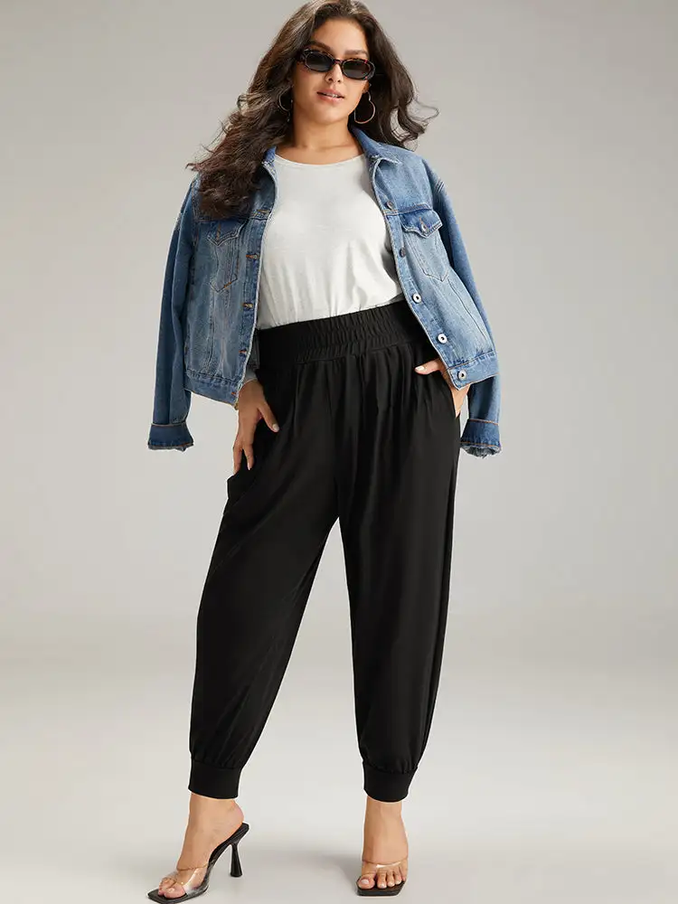 Solid Shirred Pocket Harem Sweatpants