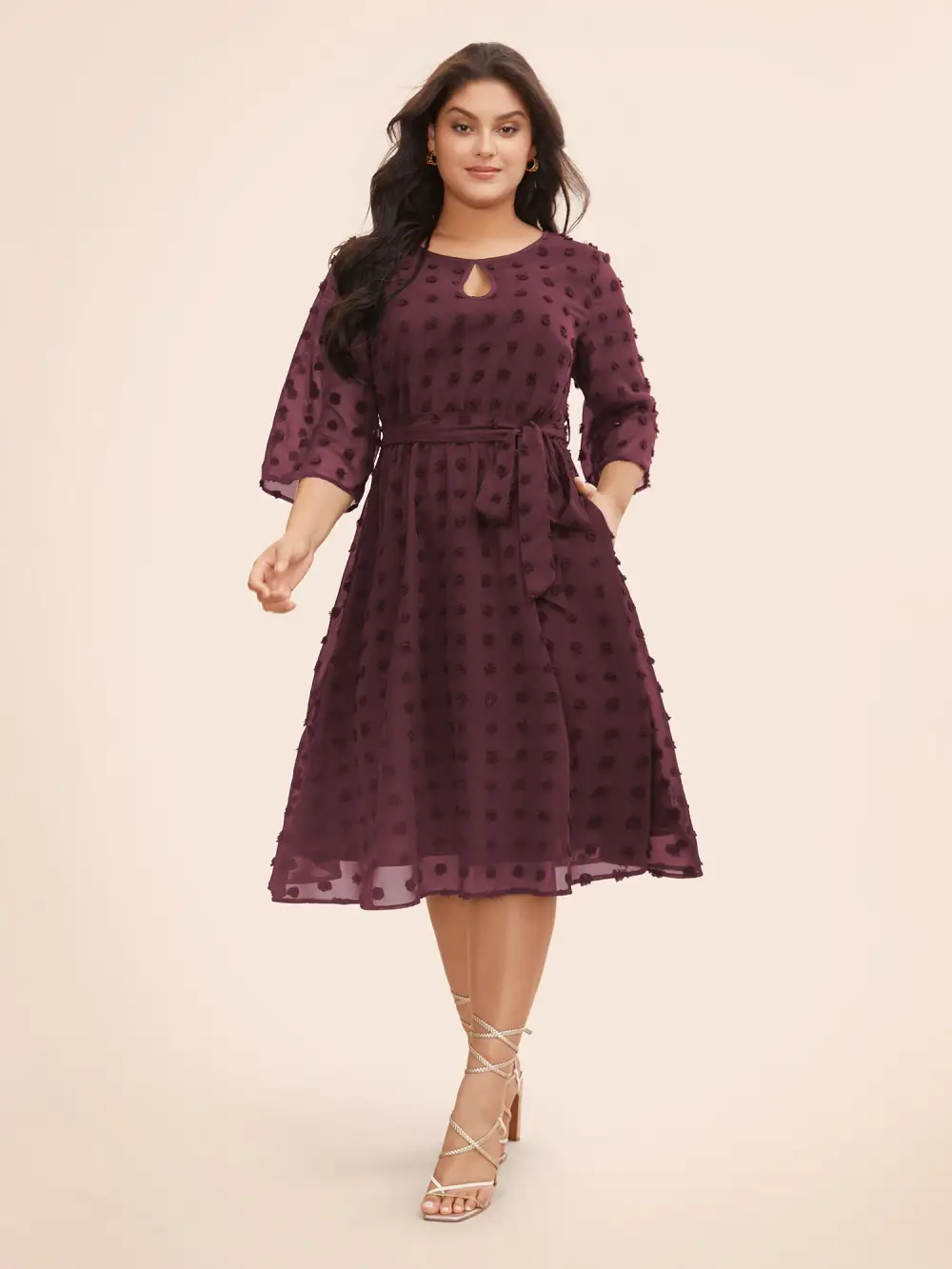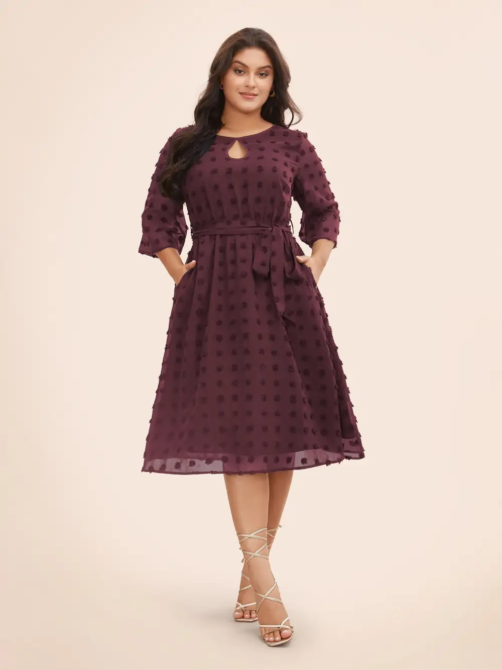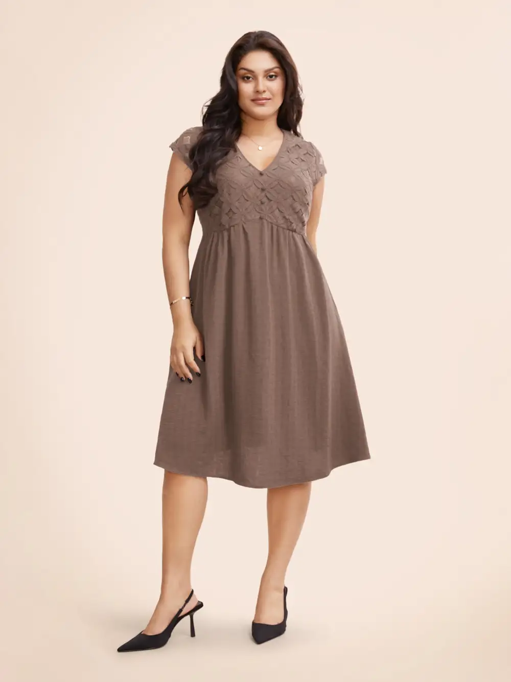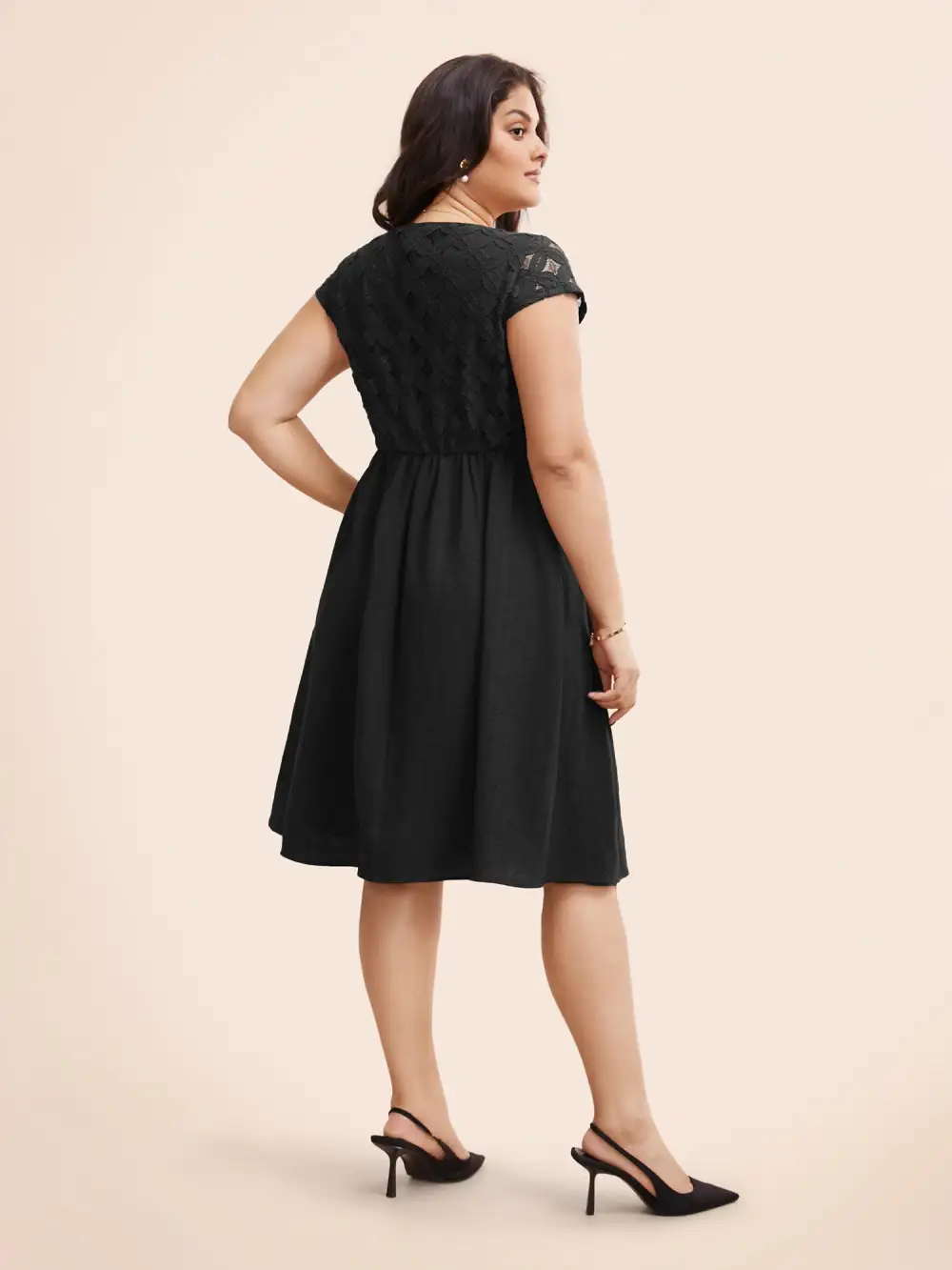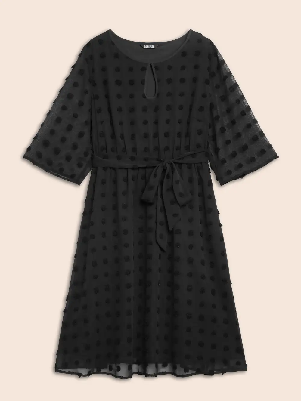 Chiffon Jacquard Patchwork Mesh Keyhole Dress