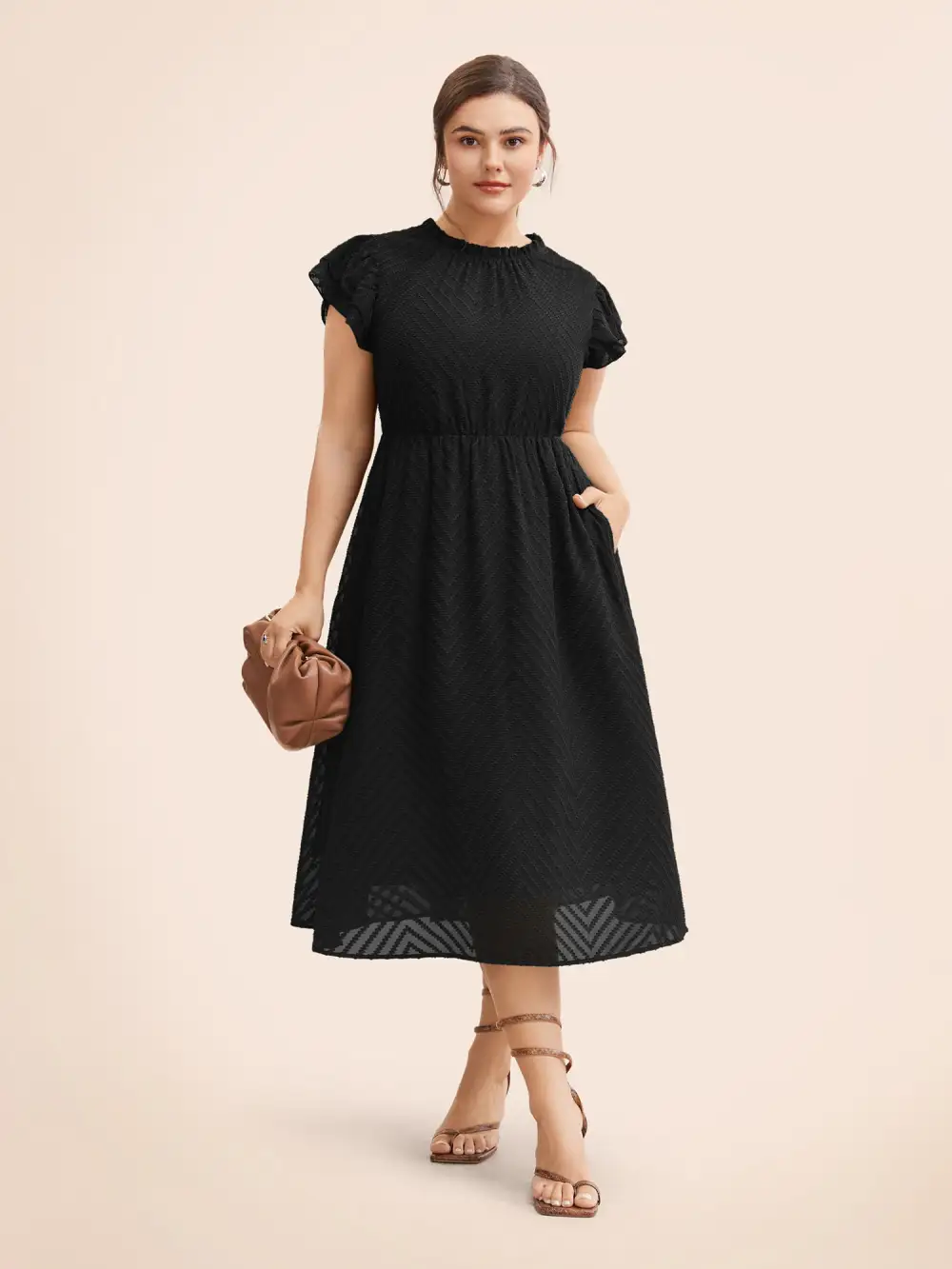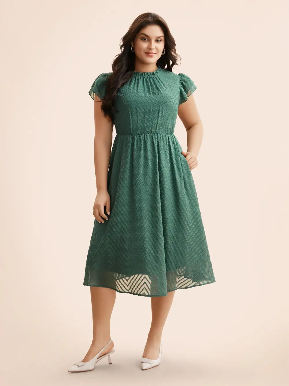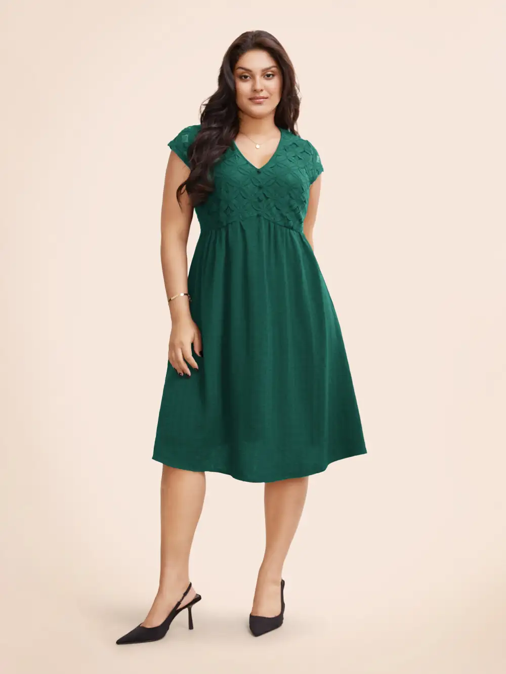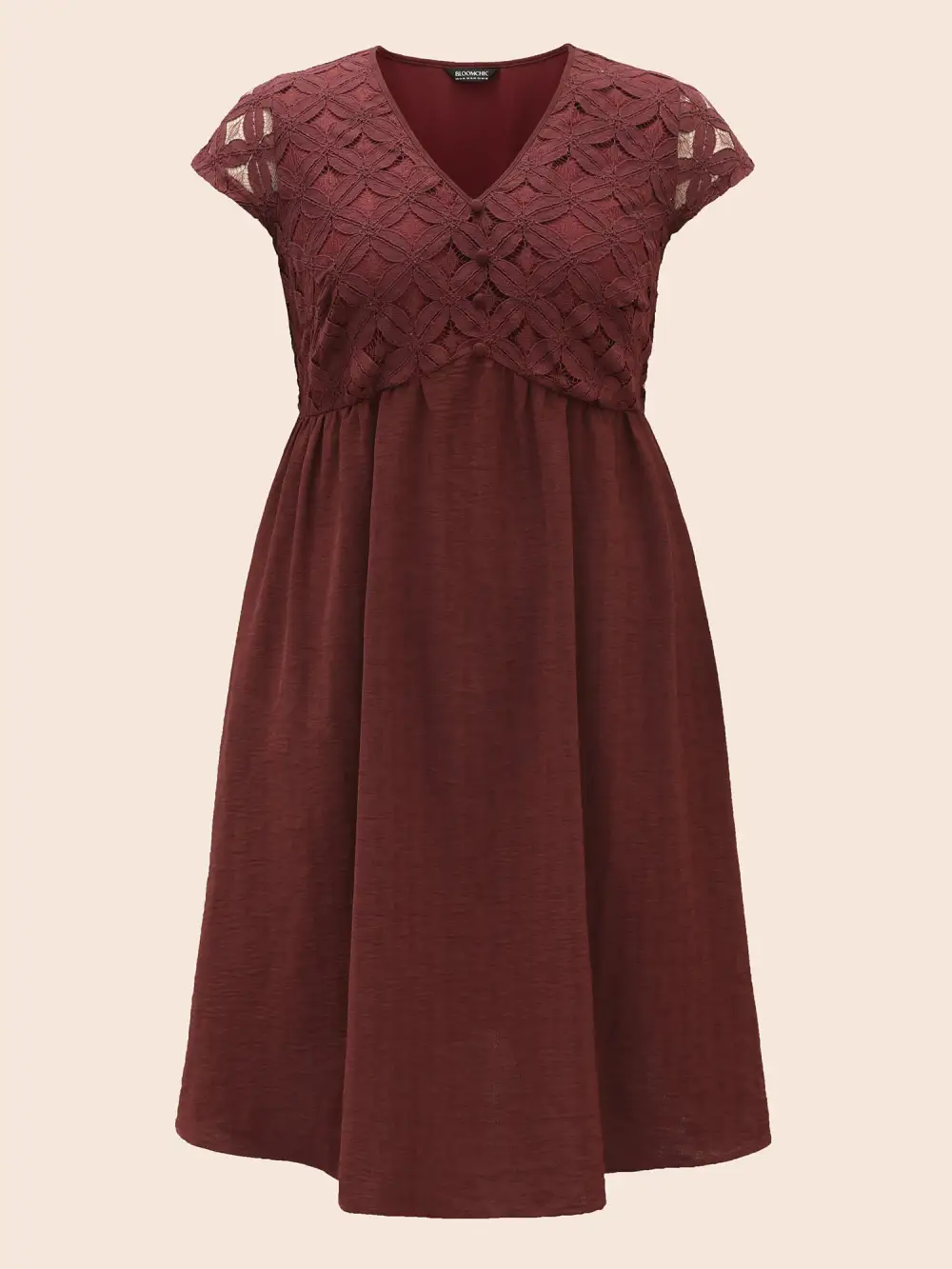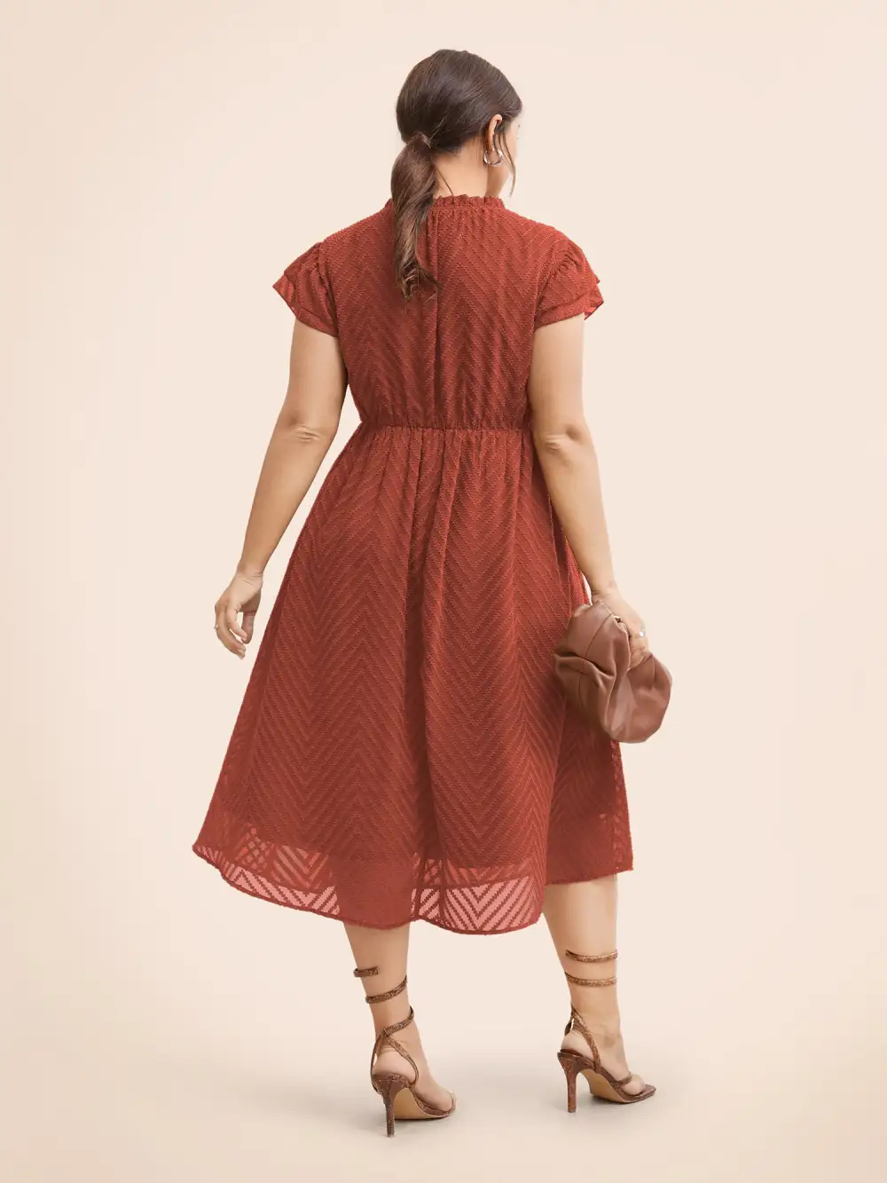 Chiffon Jacquard Patchwork Mesh Keyhole Dress