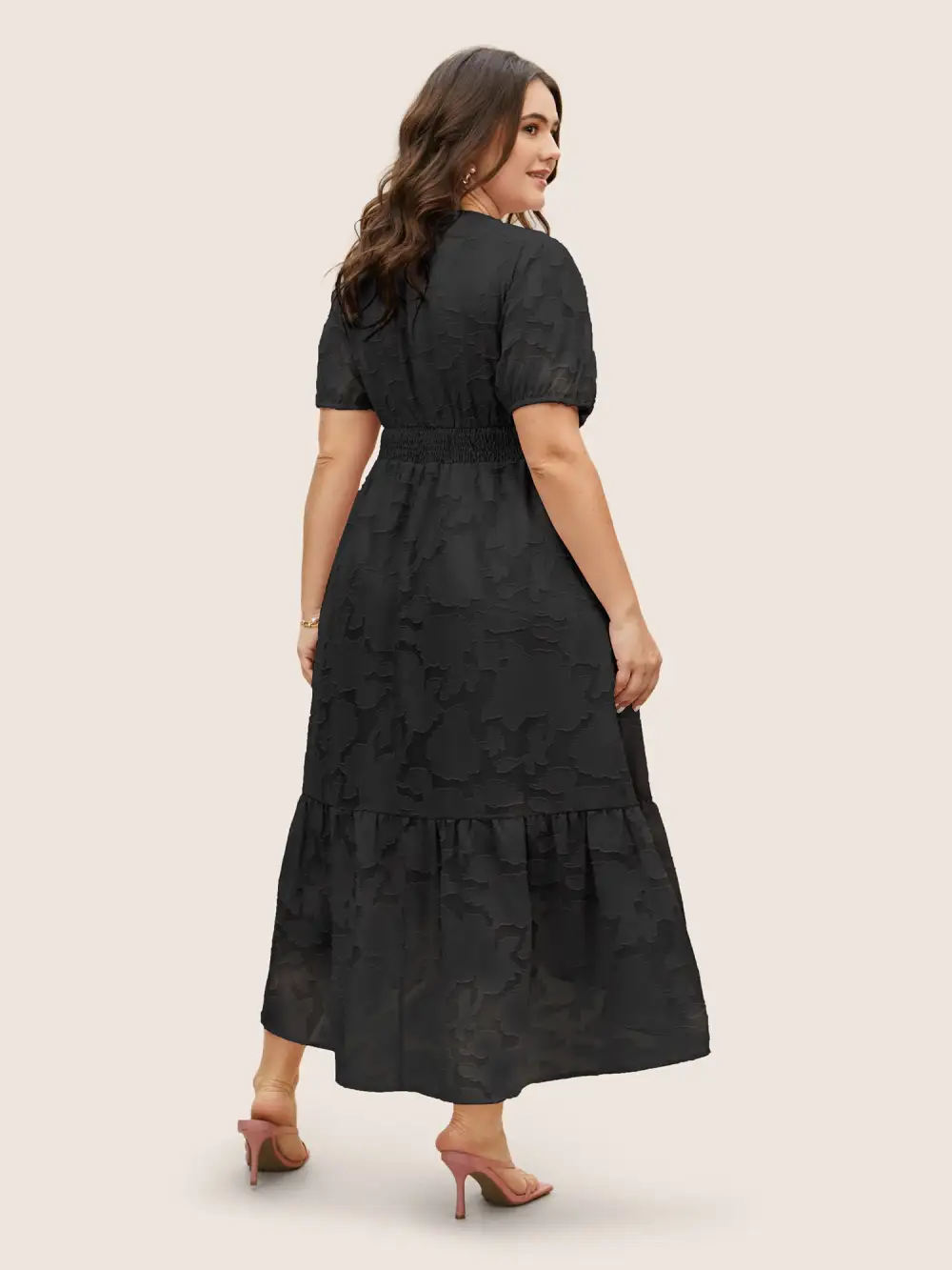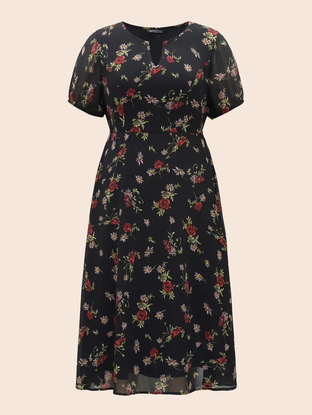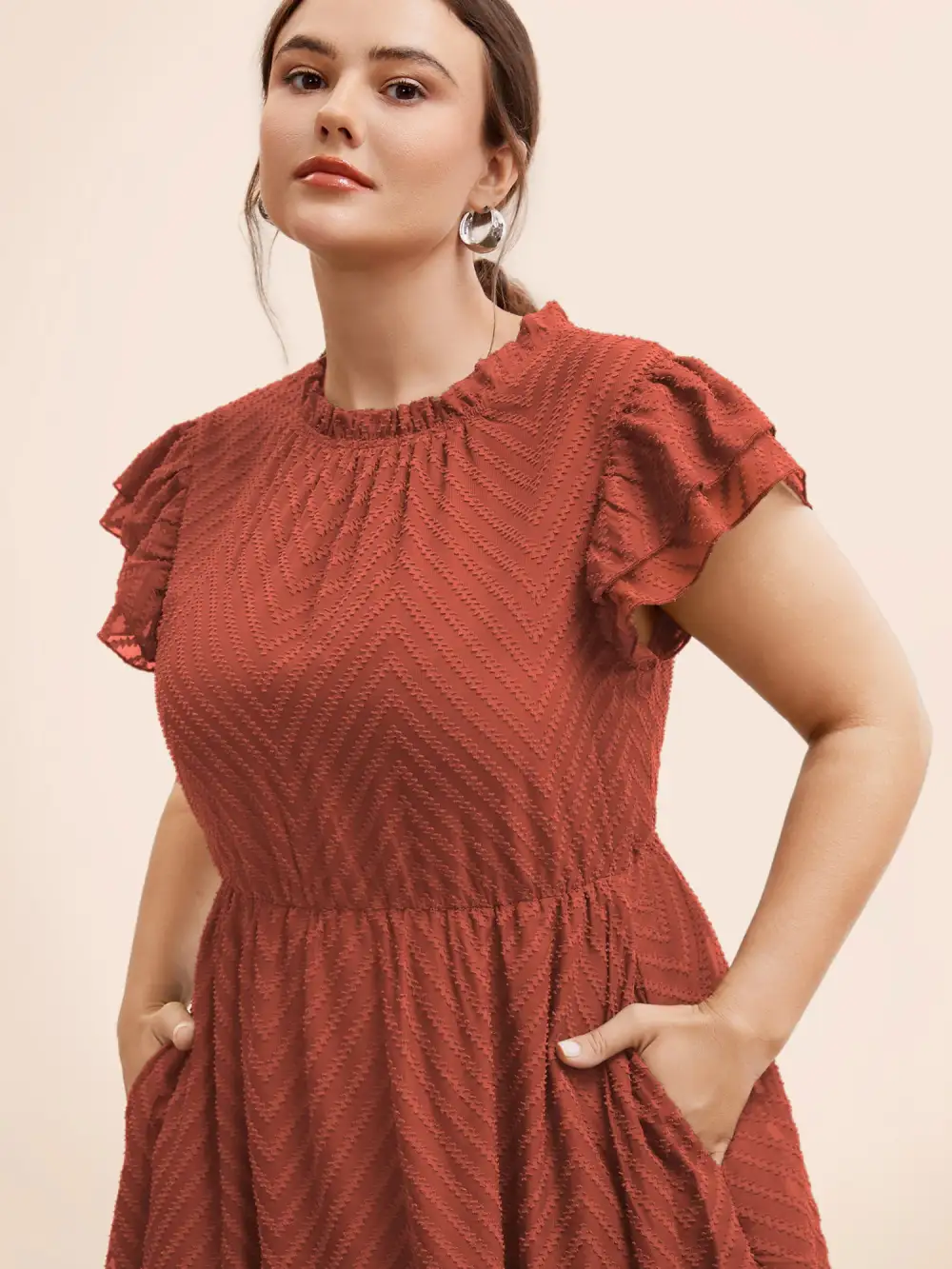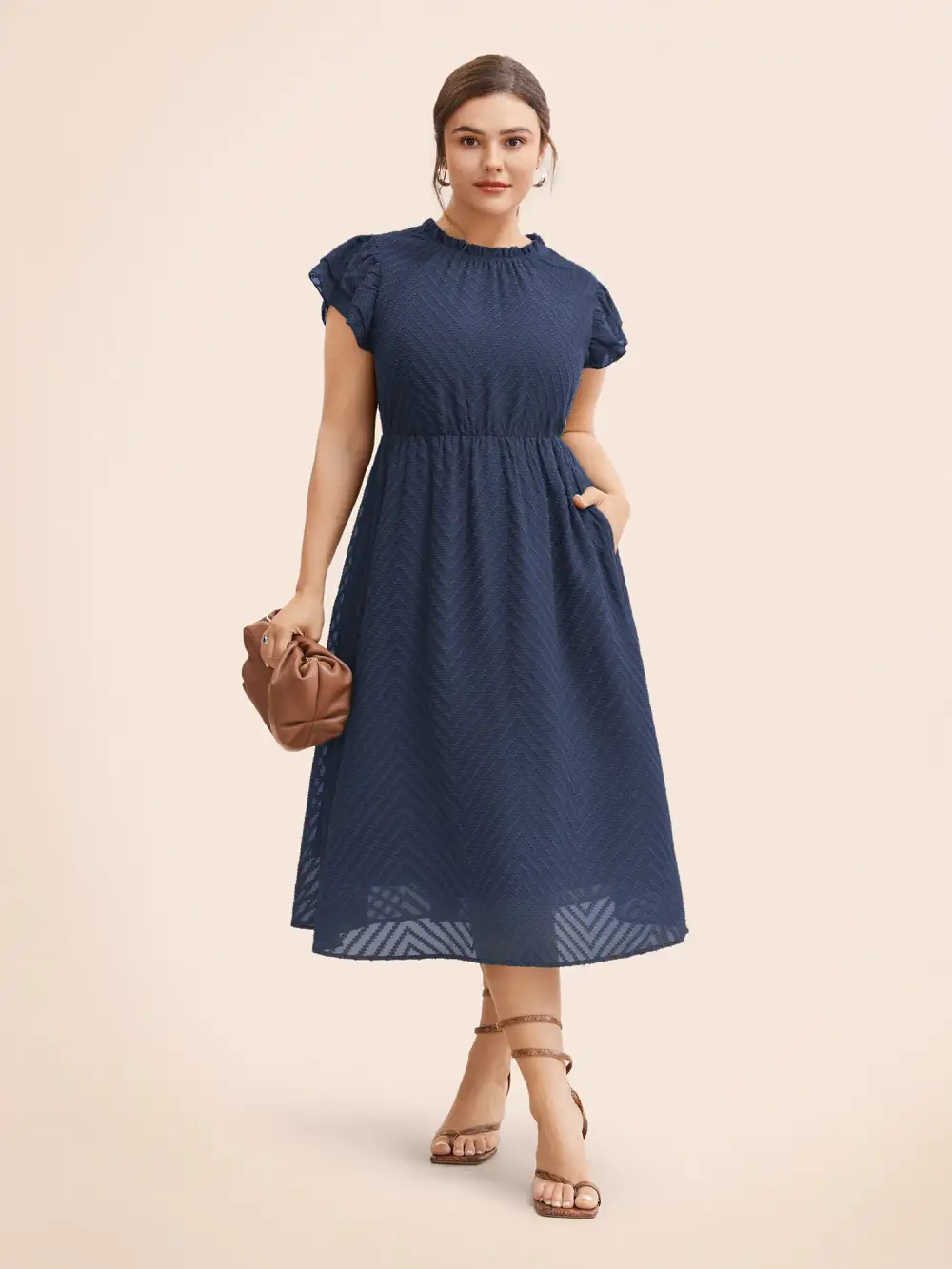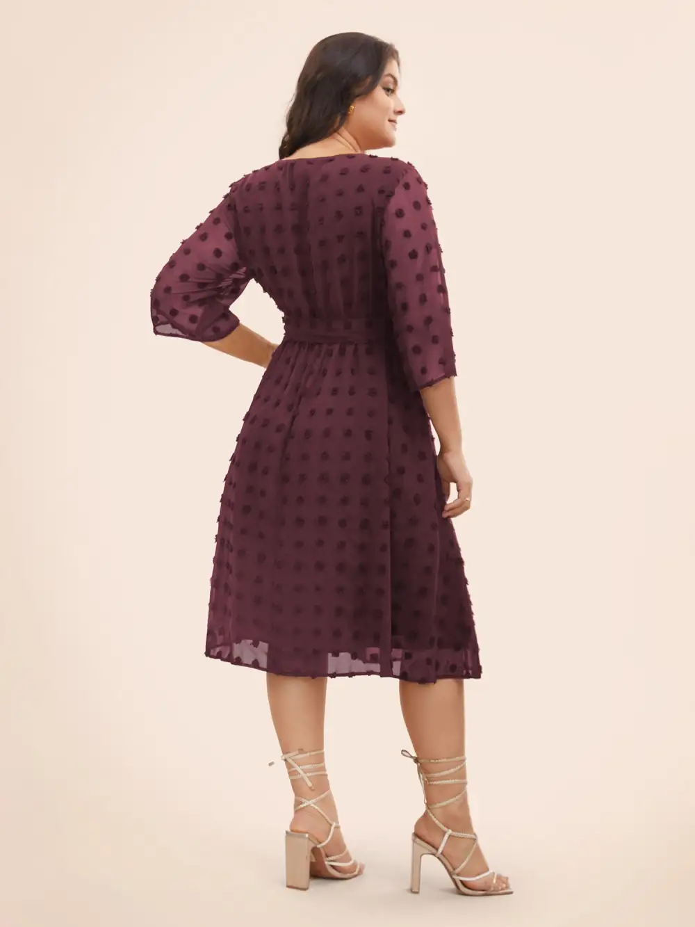 Chiffon Jacquard Patchwork Mesh Keyhole Dress