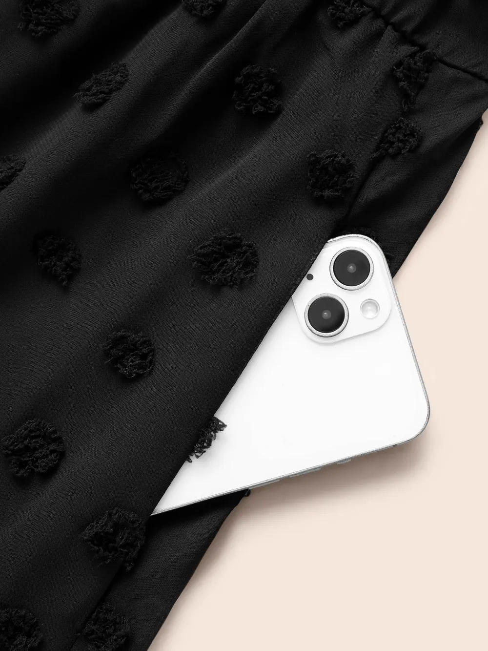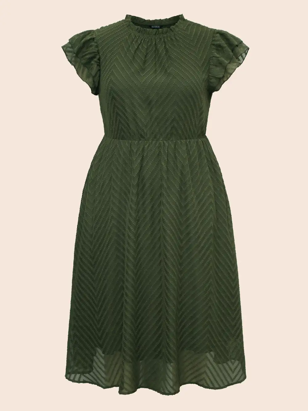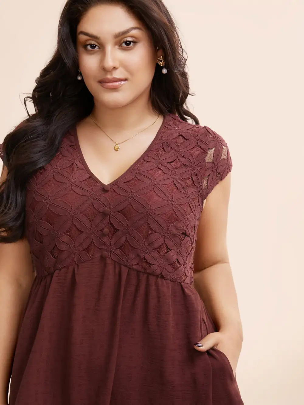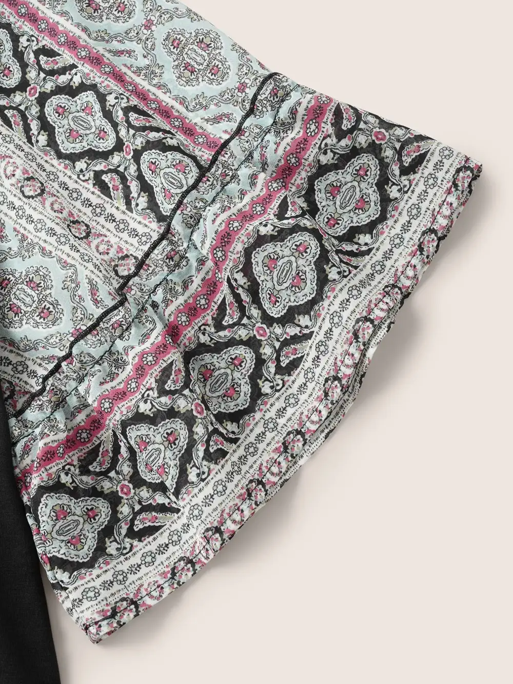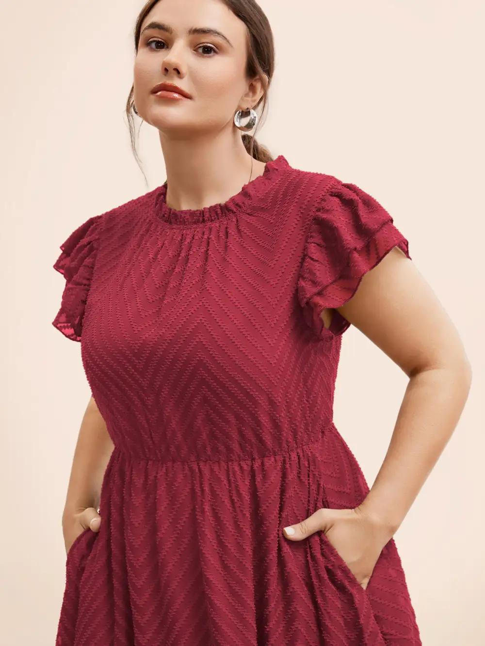 Chiffon Jacquard Patchwork Mesh Keyhole Dress