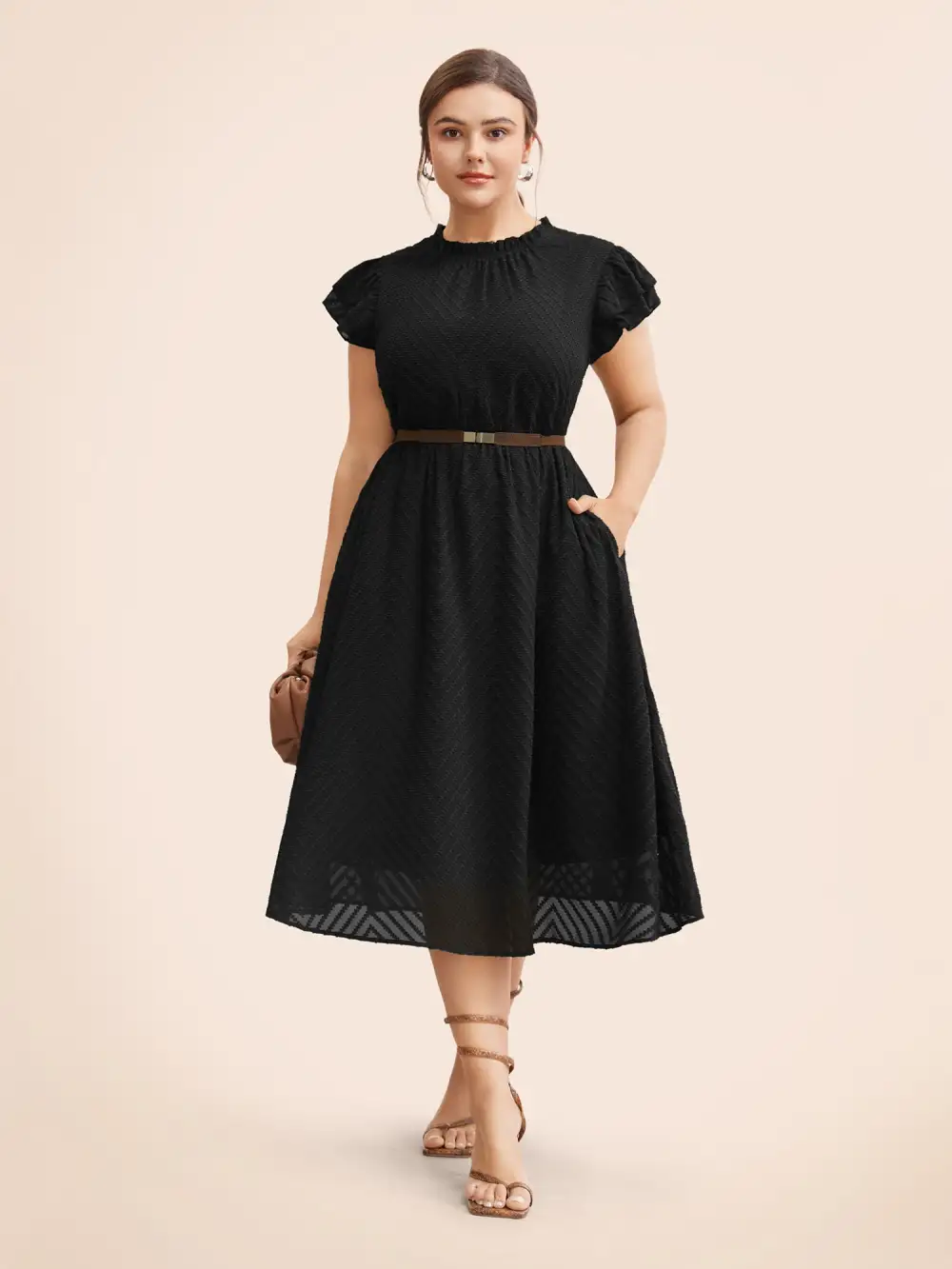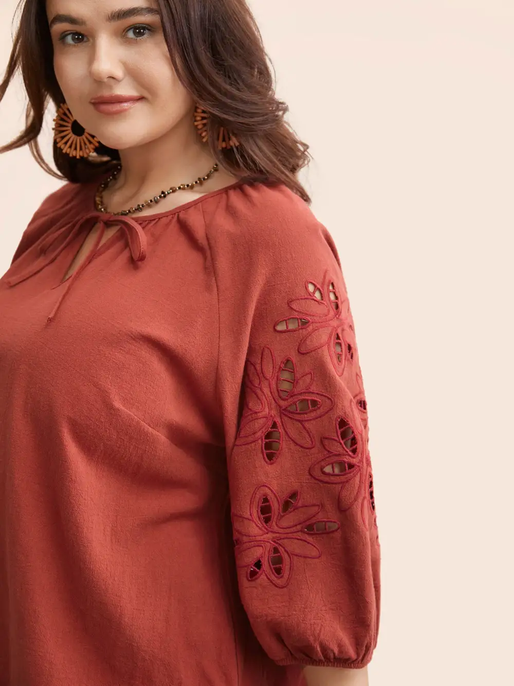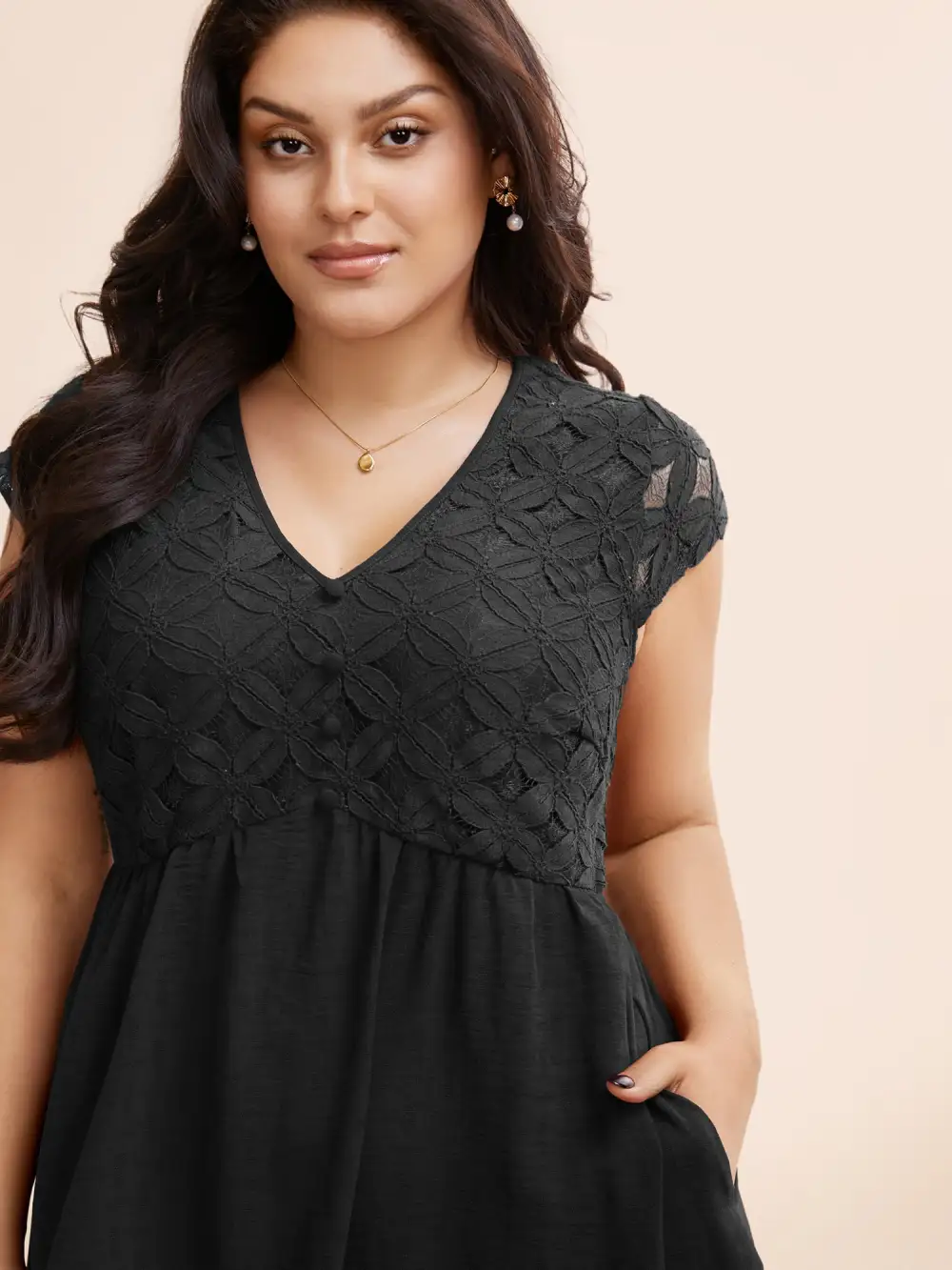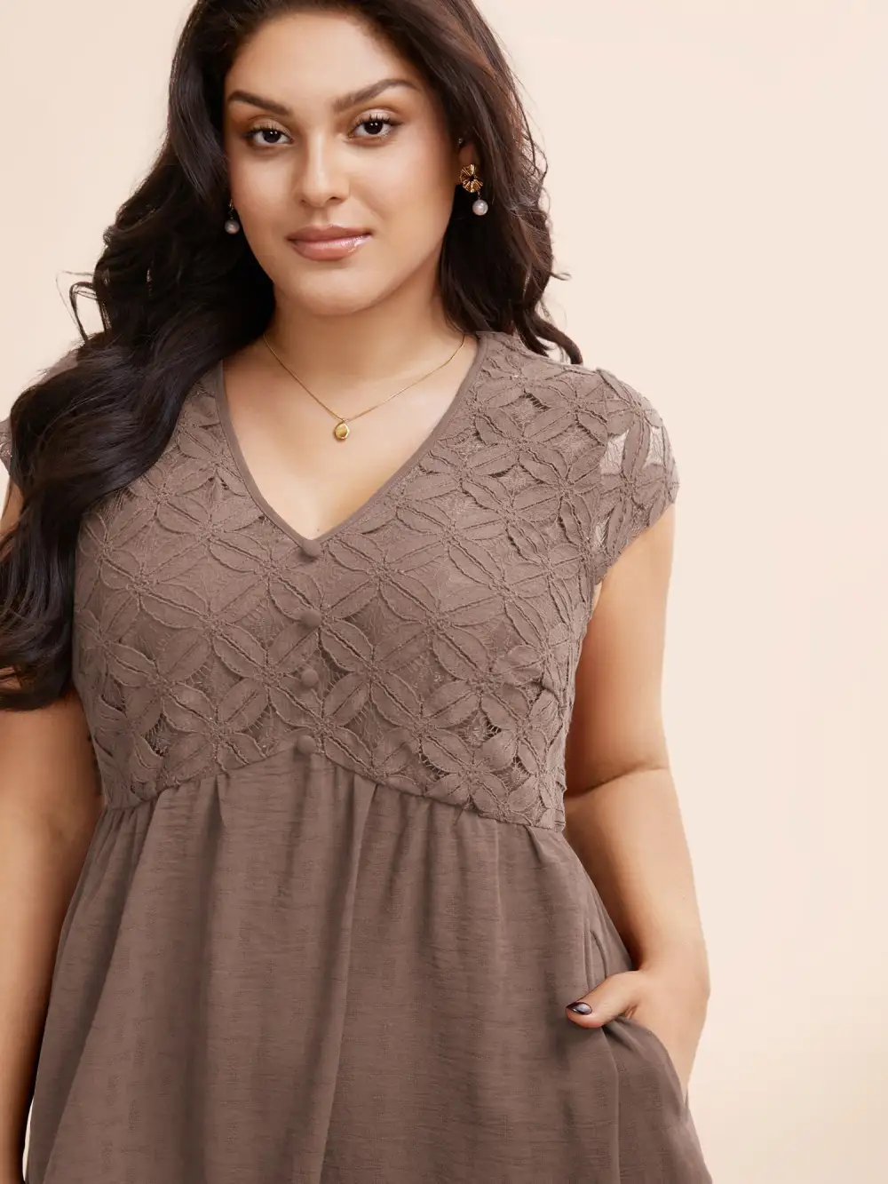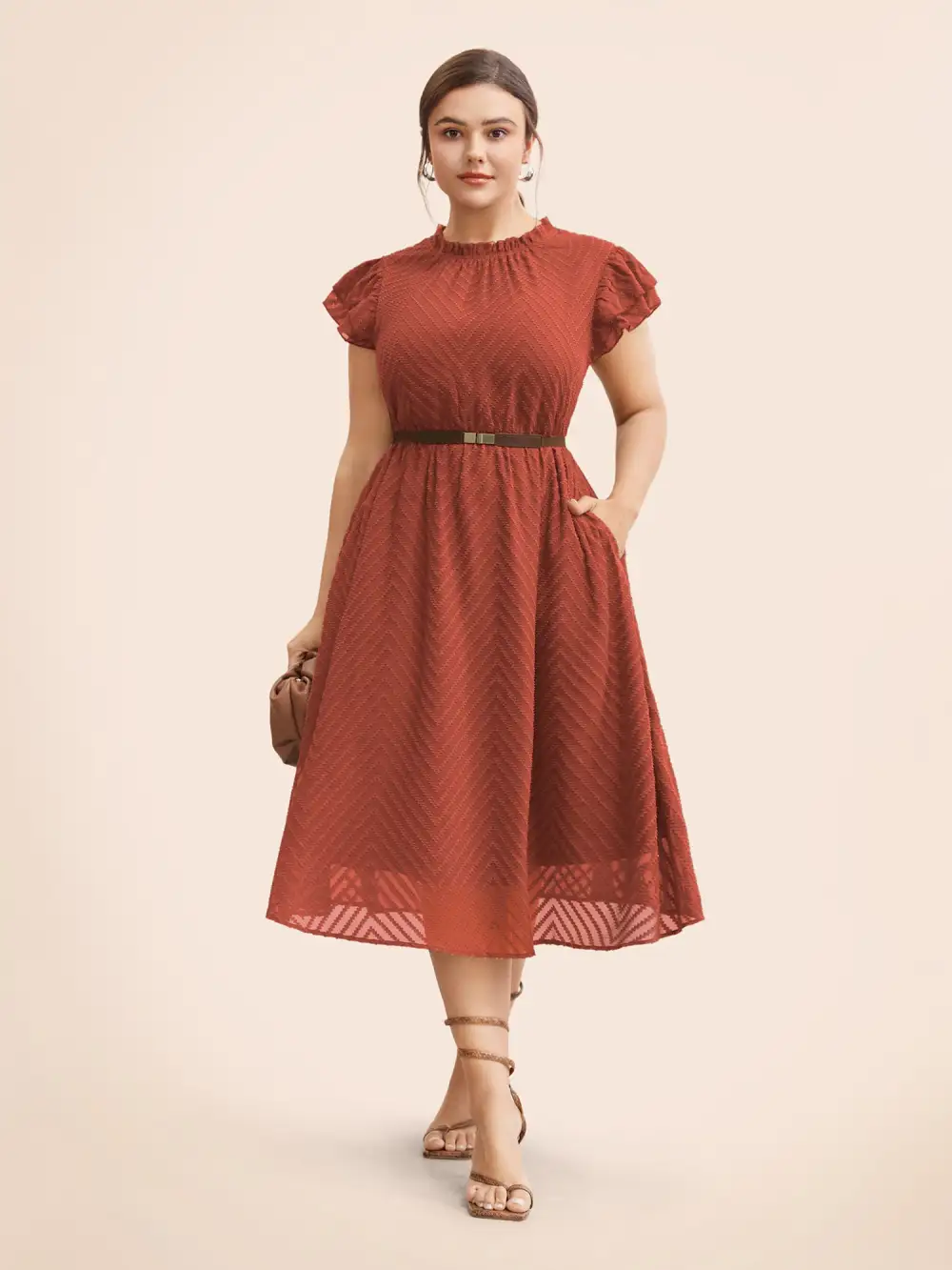 Chiffon Jacquard Patchwork Mesh Keyhole Dress