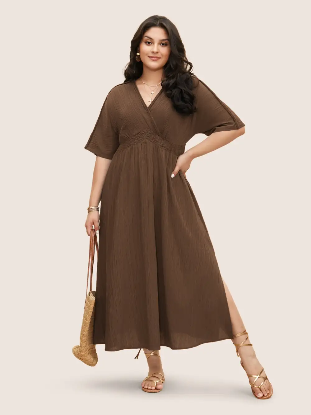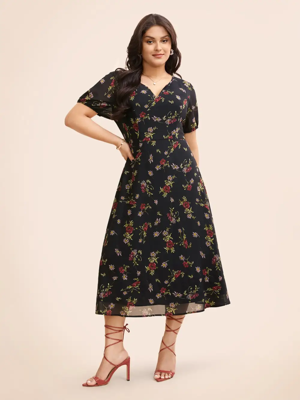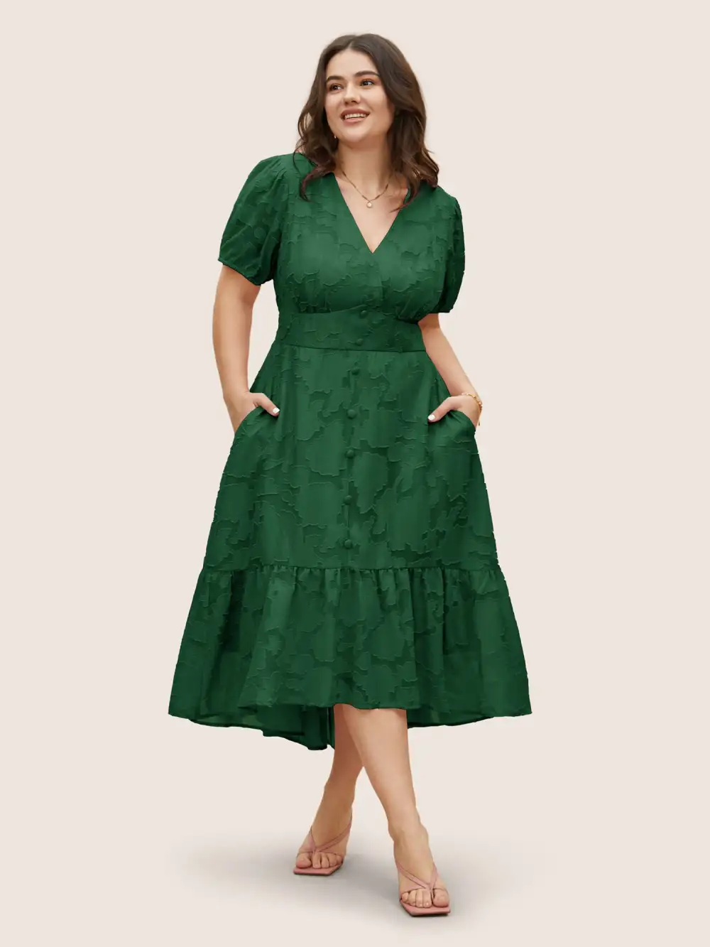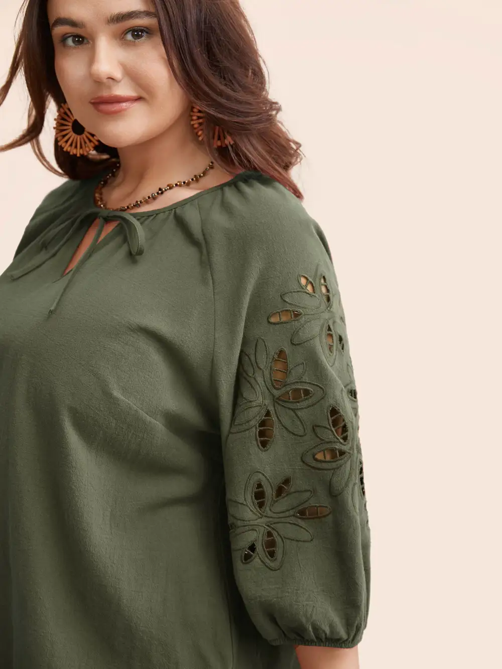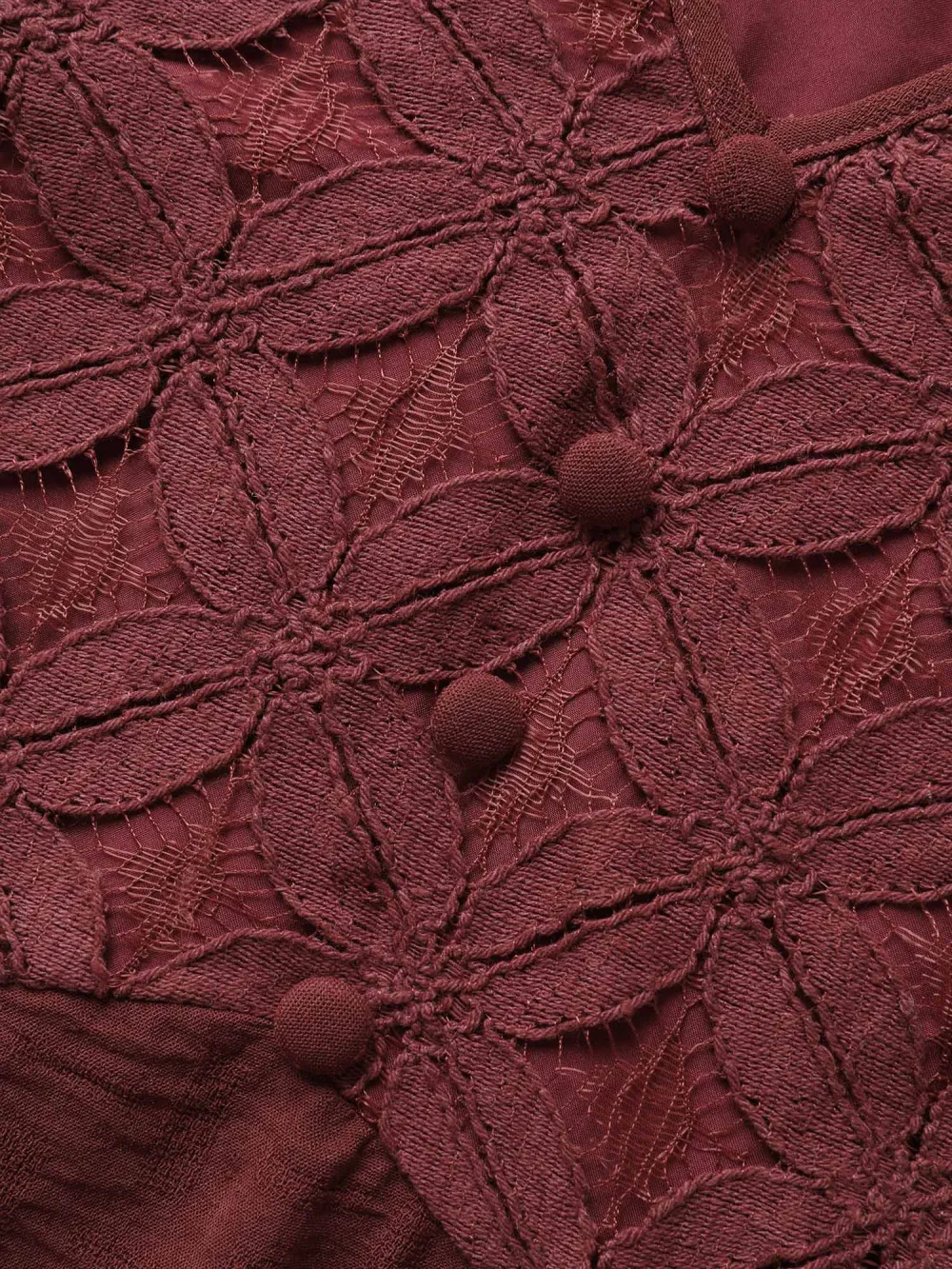 Chiffon Jacquard Patchwork Mesh Keyhole Dress
