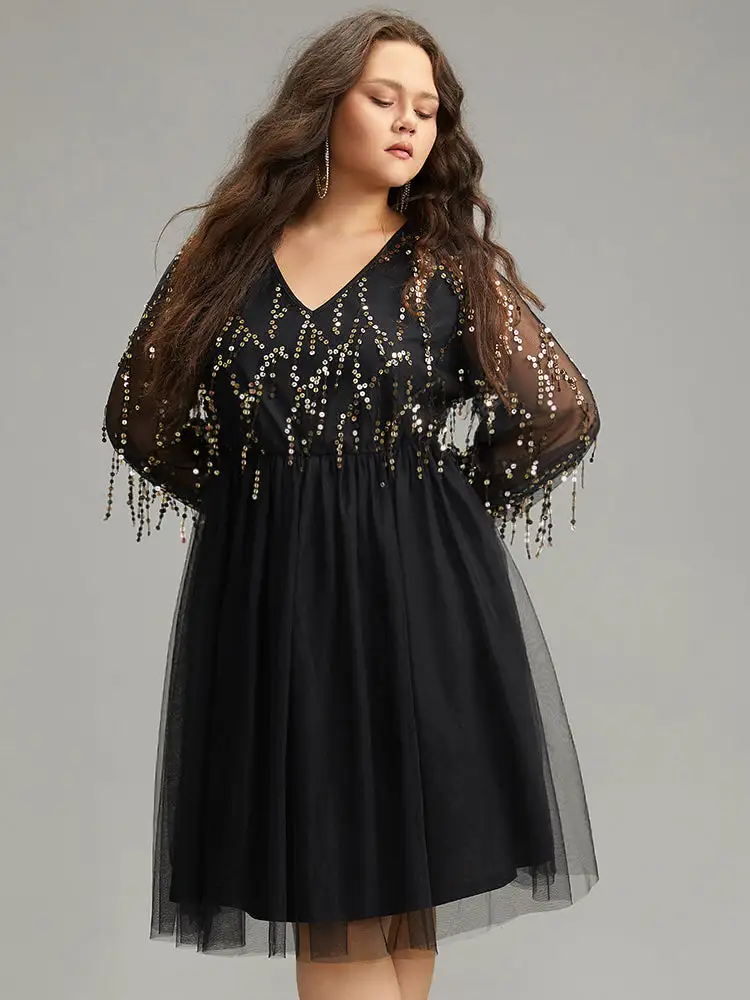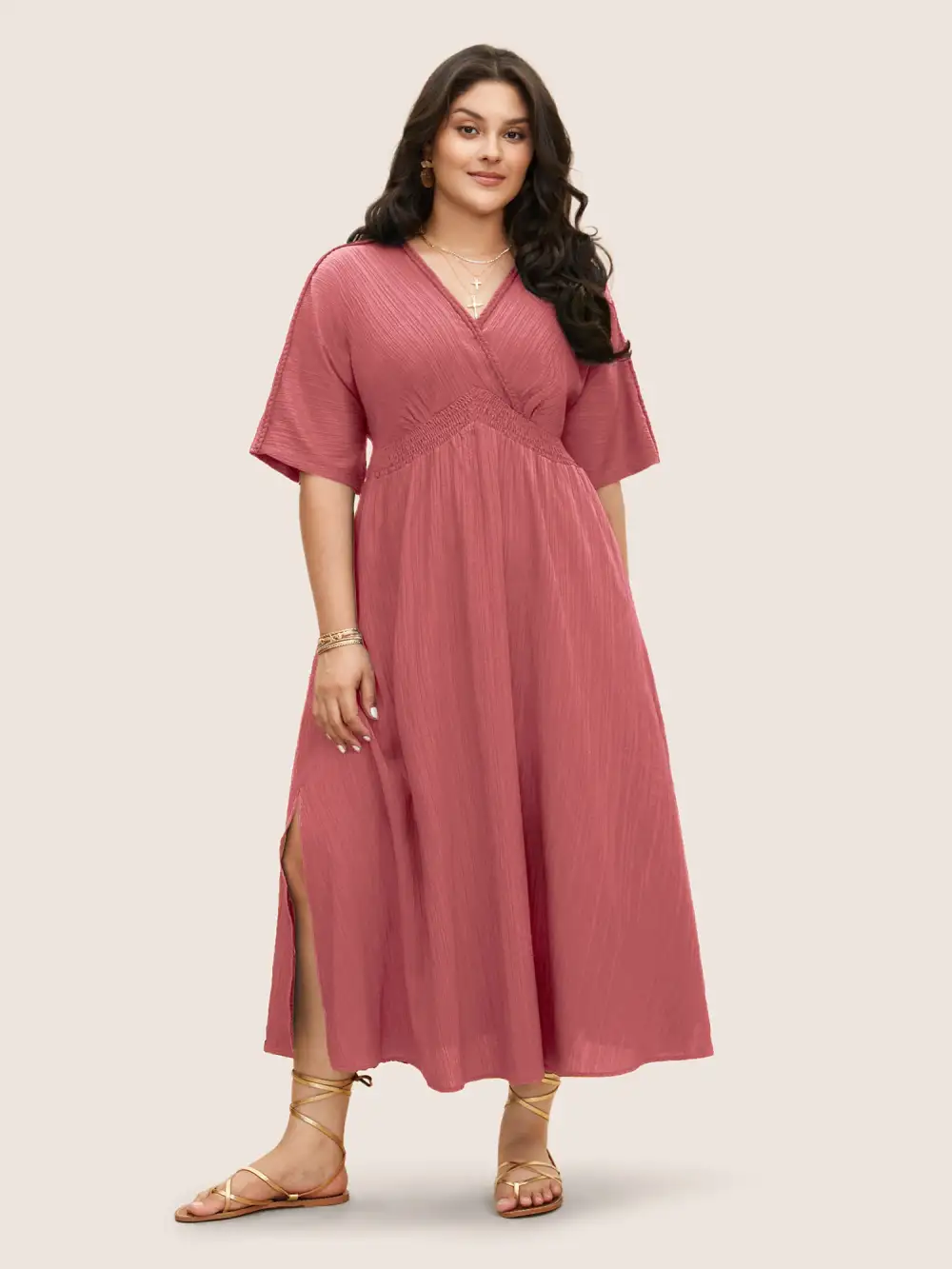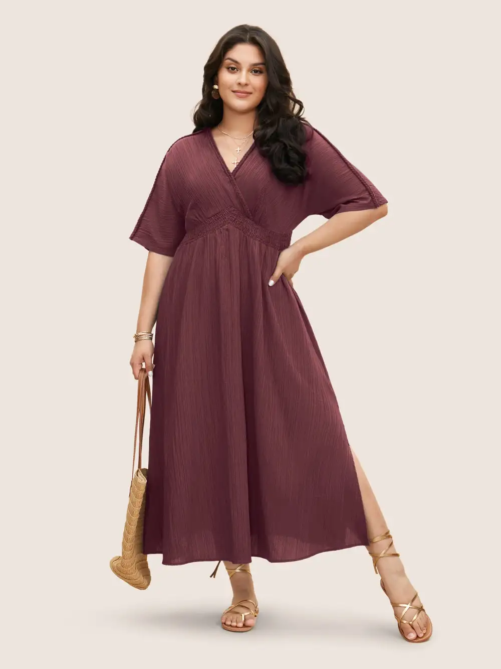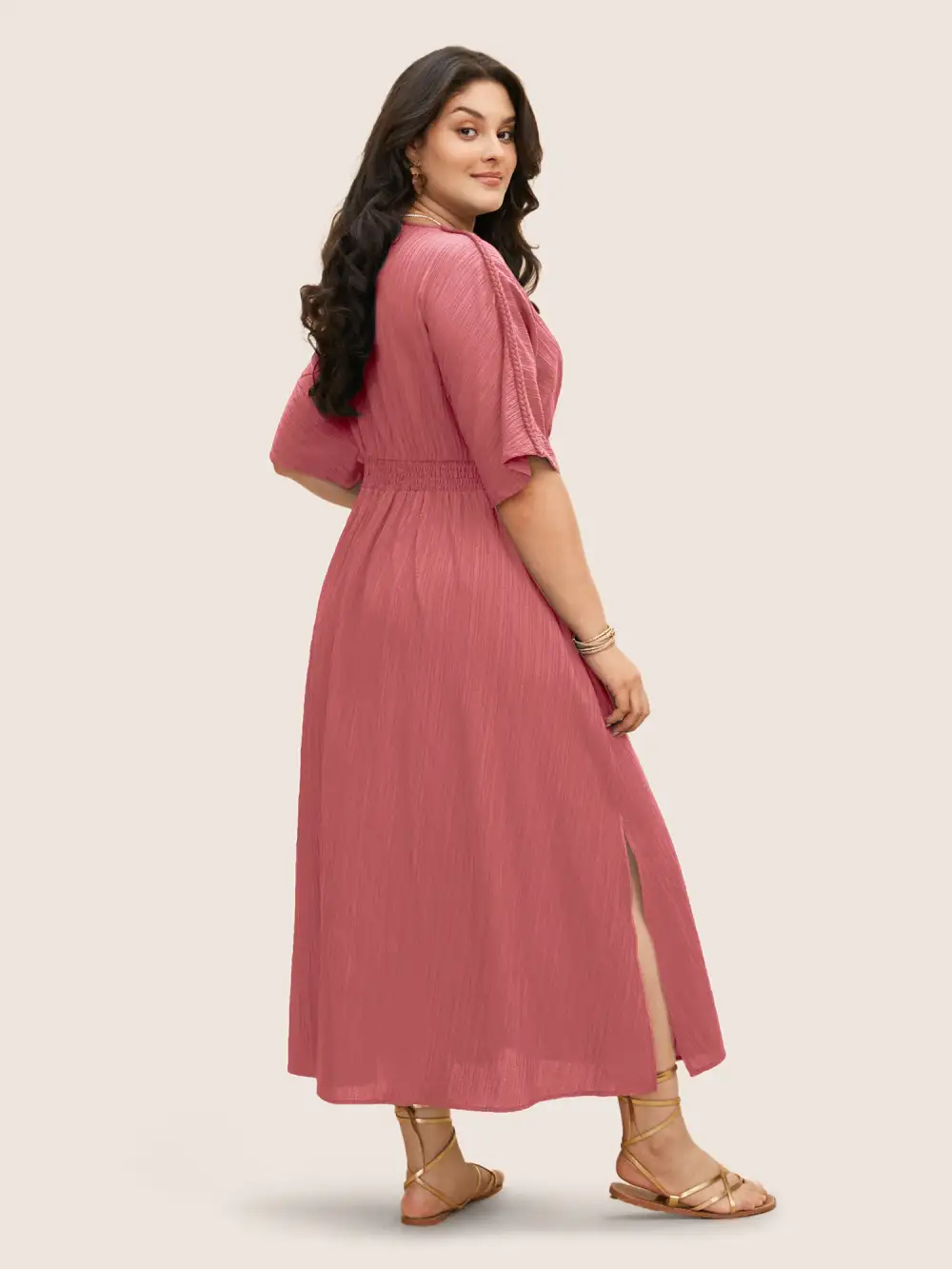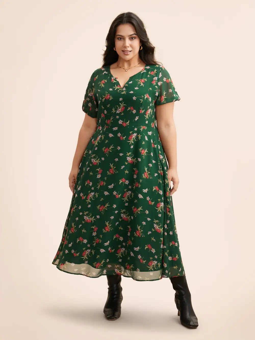 Chiffon Jacquard Patchwork Mesh Keyhole Dress