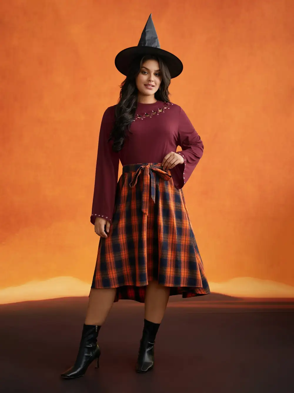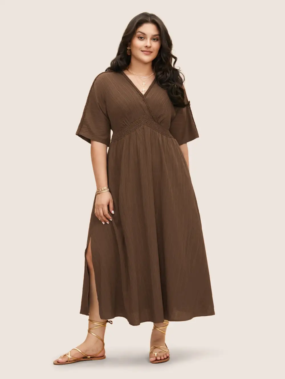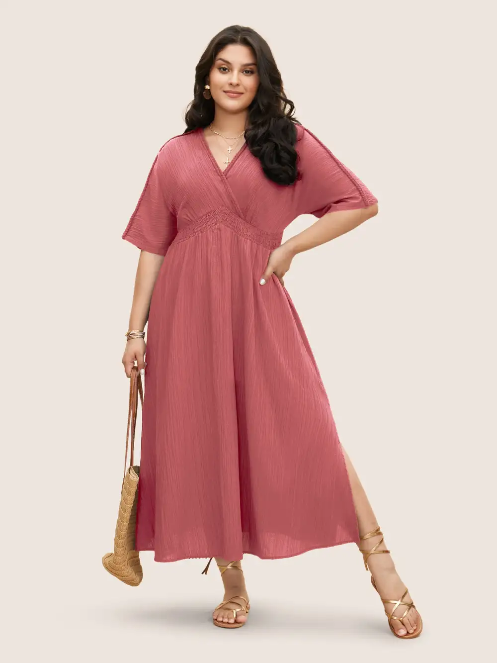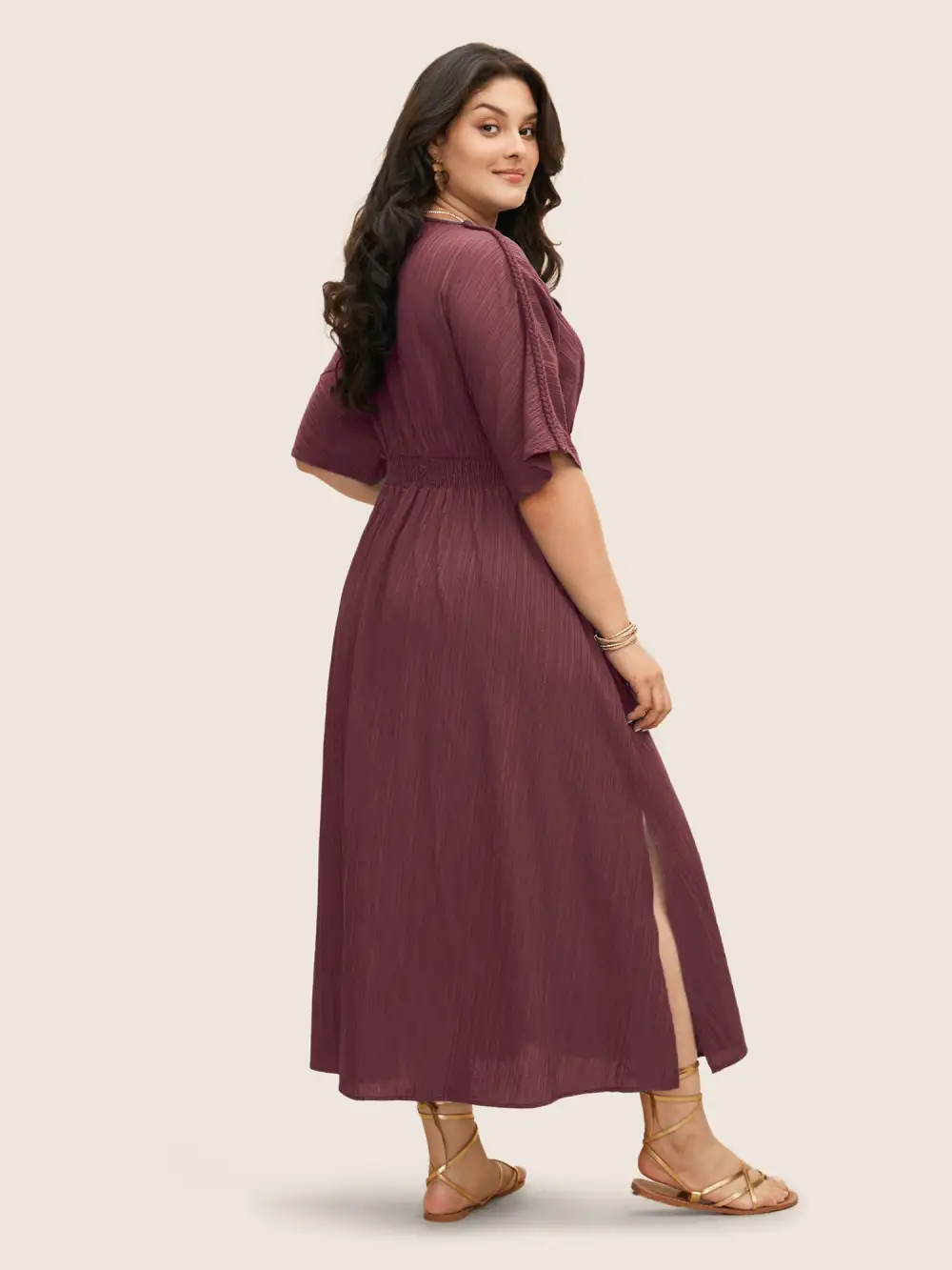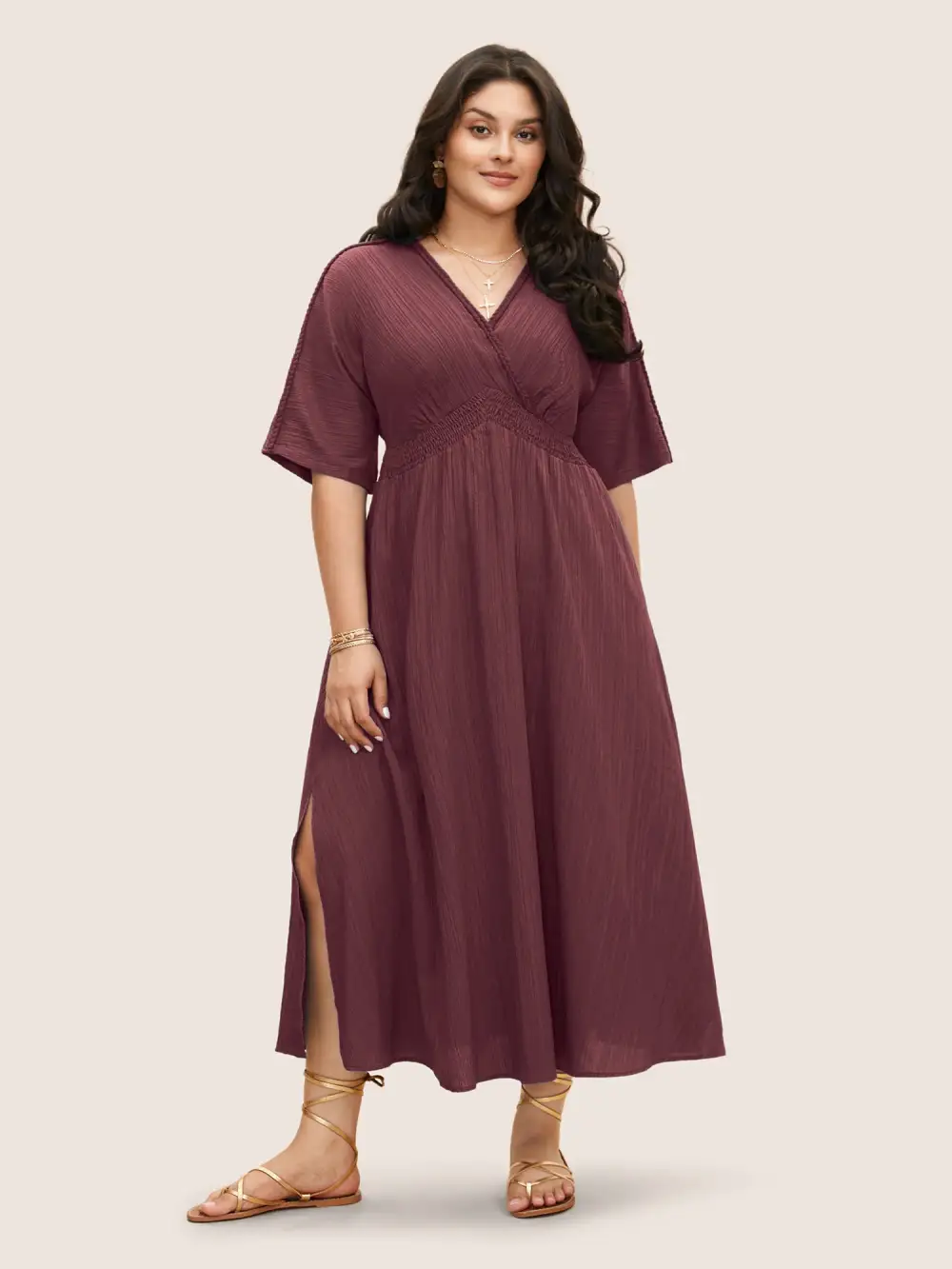 Chiffon Jacquard Patchwork Mesh Keyhole Dress