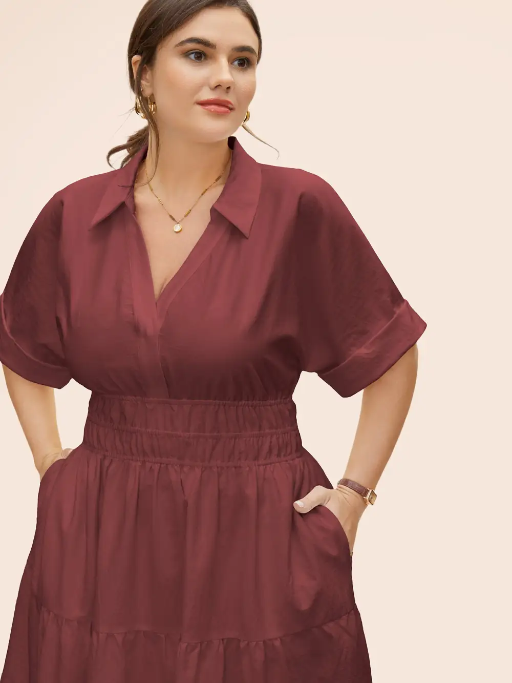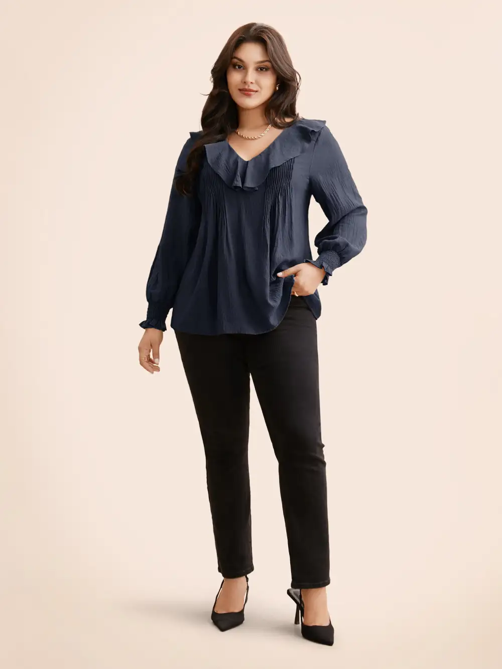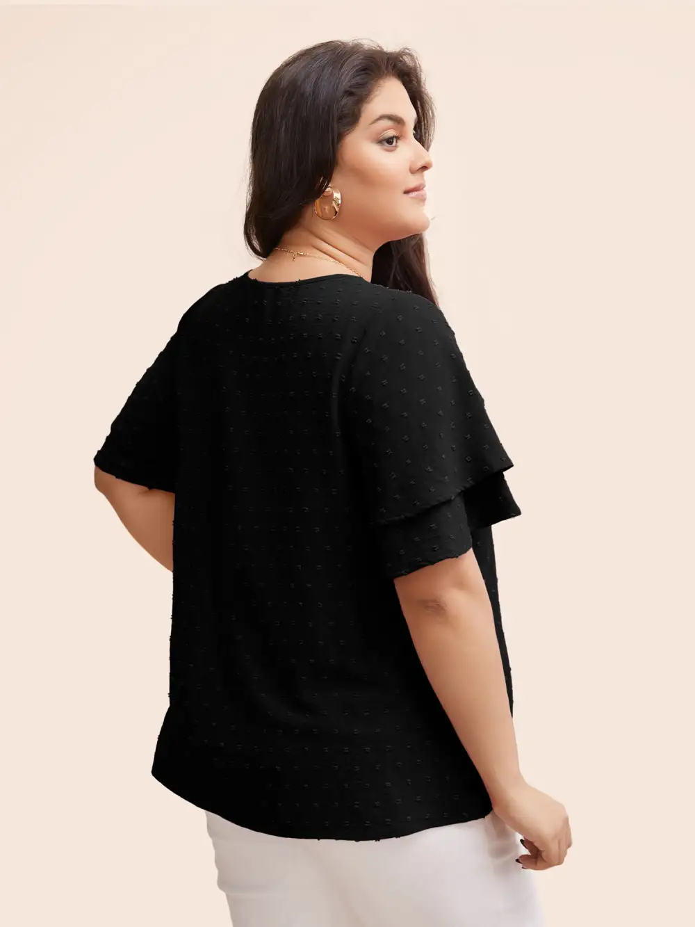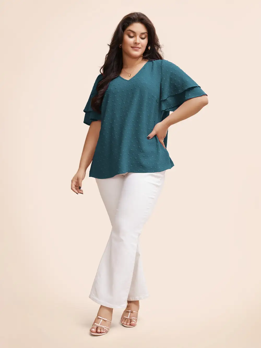 Plain Ruffle Tiered Sleeve V Neck Polka Dot Blouse
