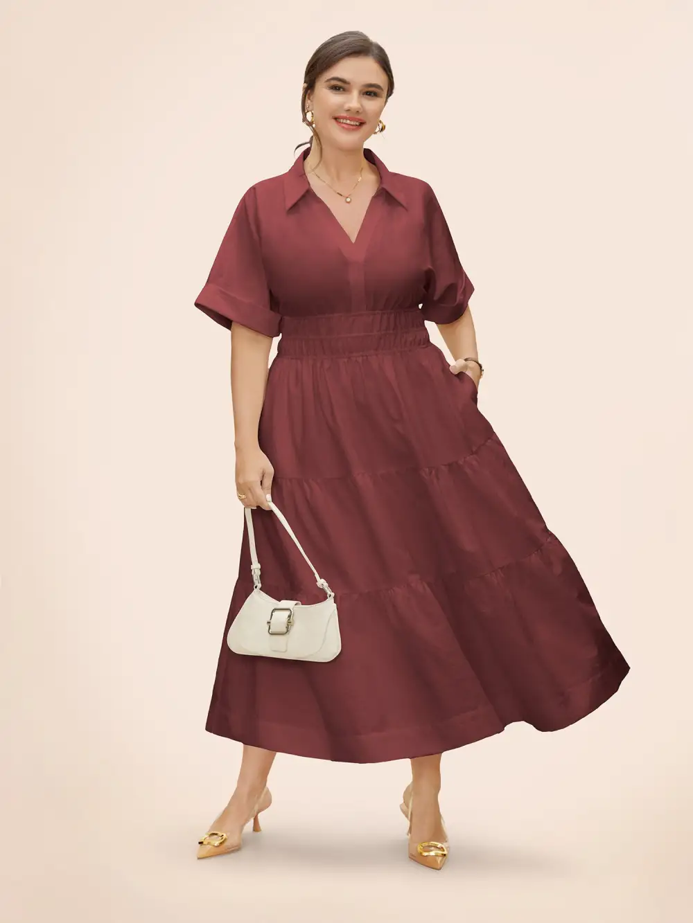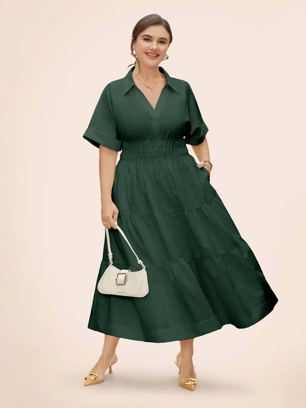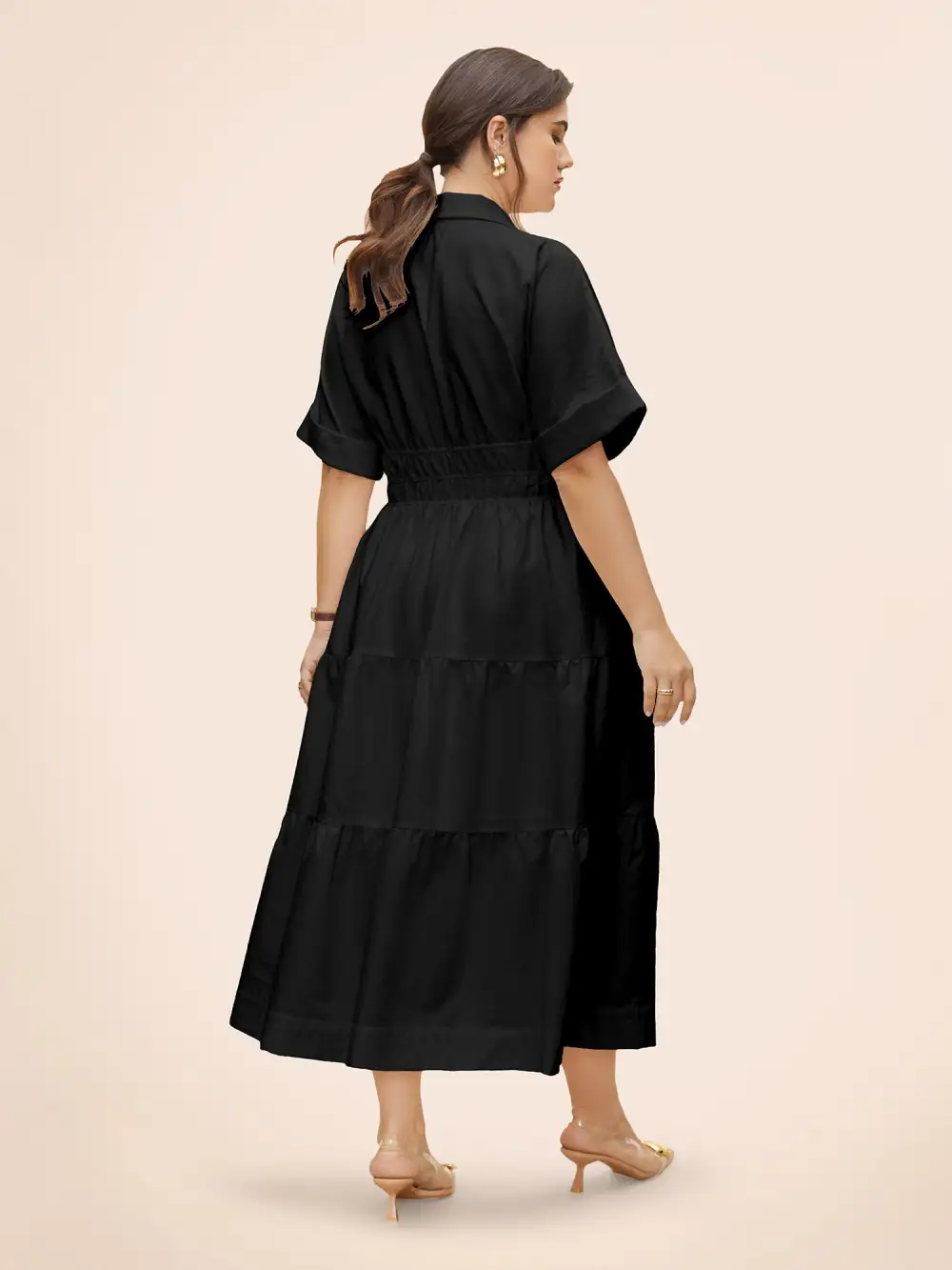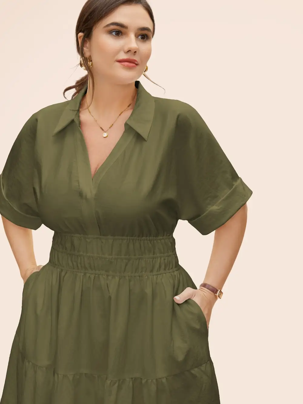 Plain Ruffle Tiered Sleeve V Neck Polka Dot Blouse