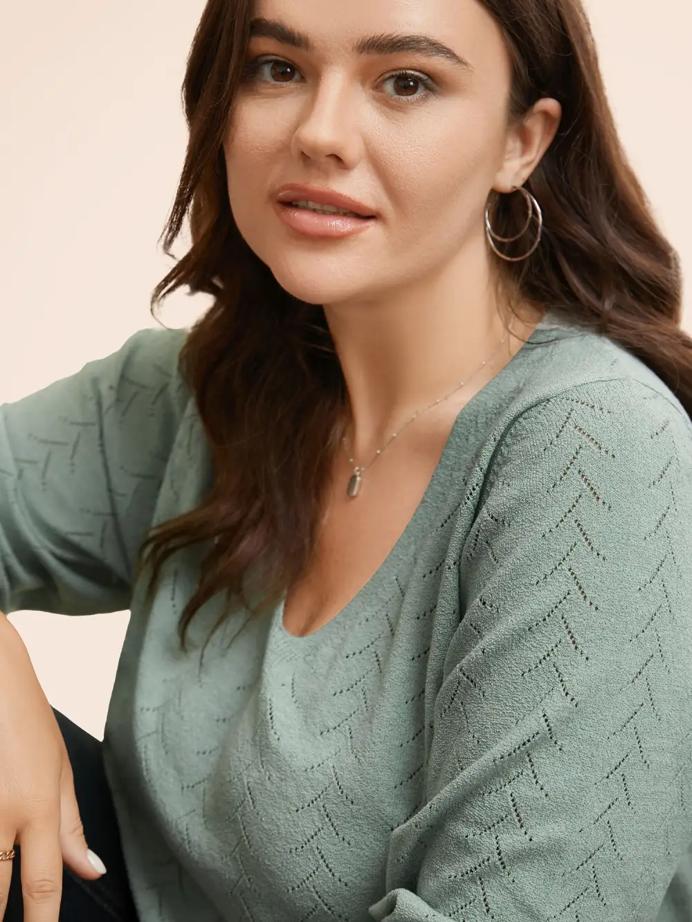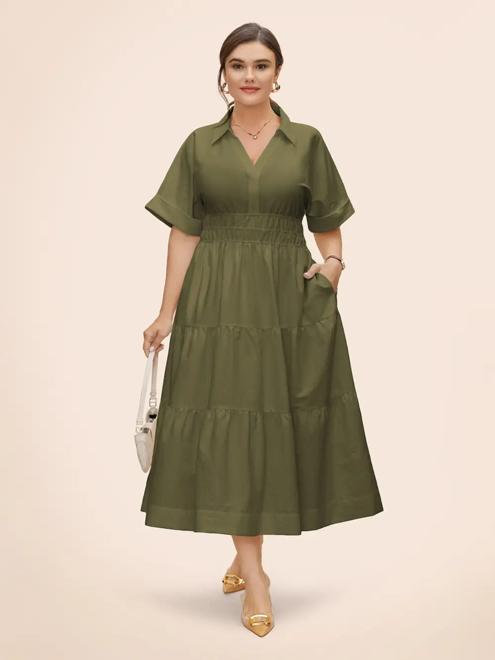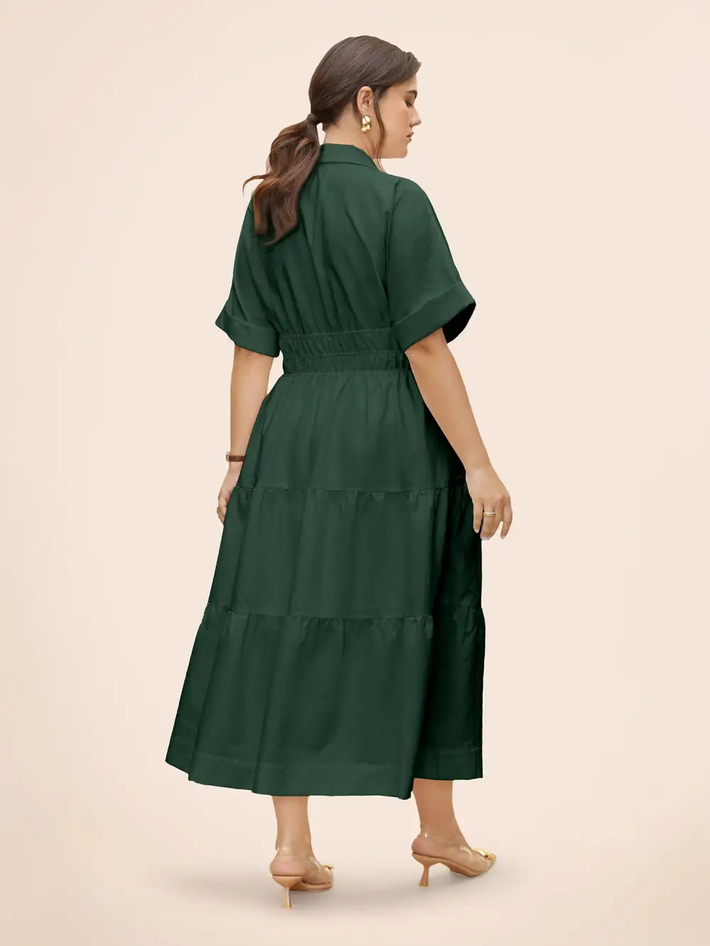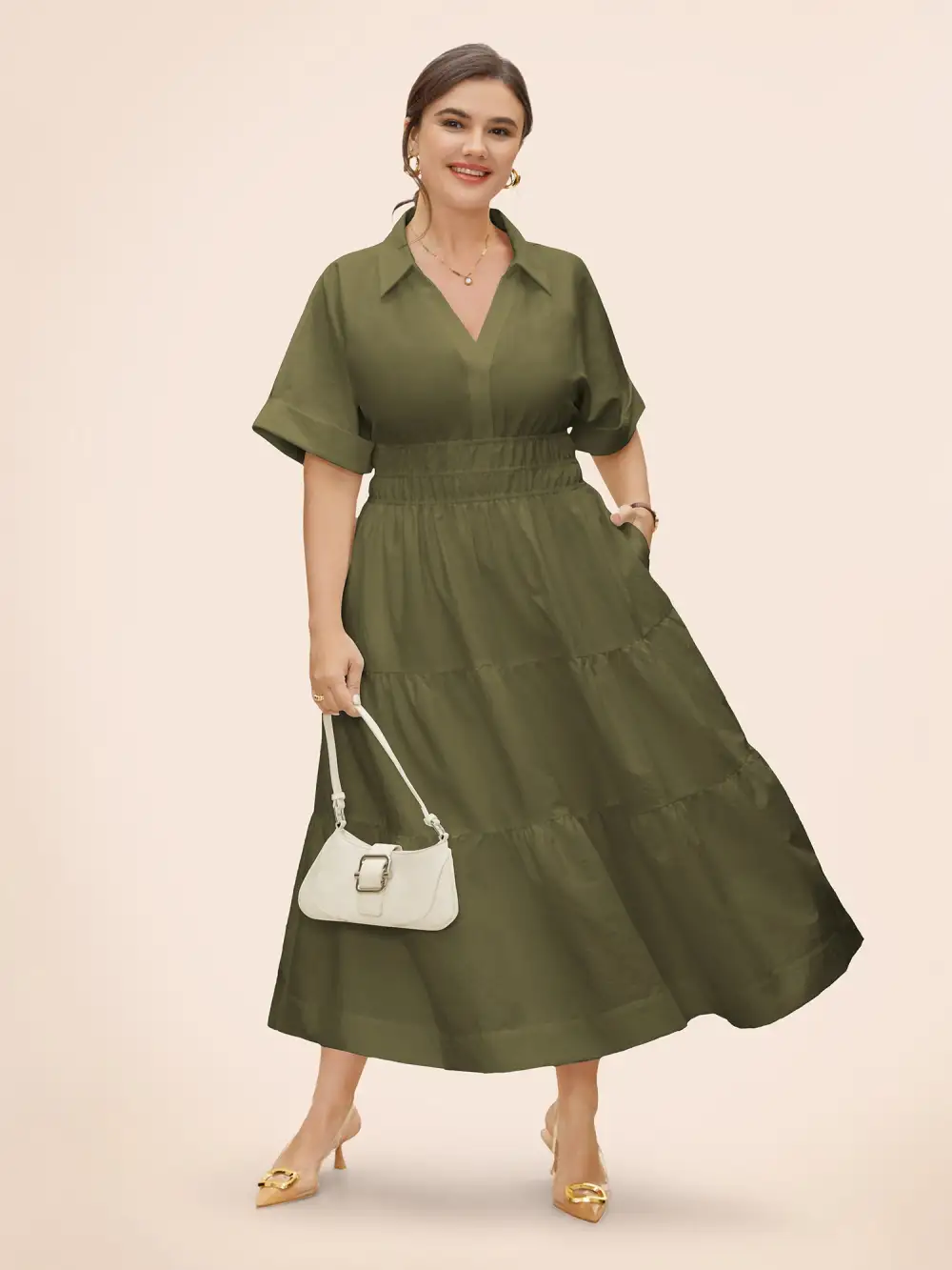 Plain Ruffle Tiered Sleeve V Neck Polka Dot Blouse