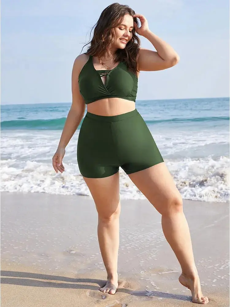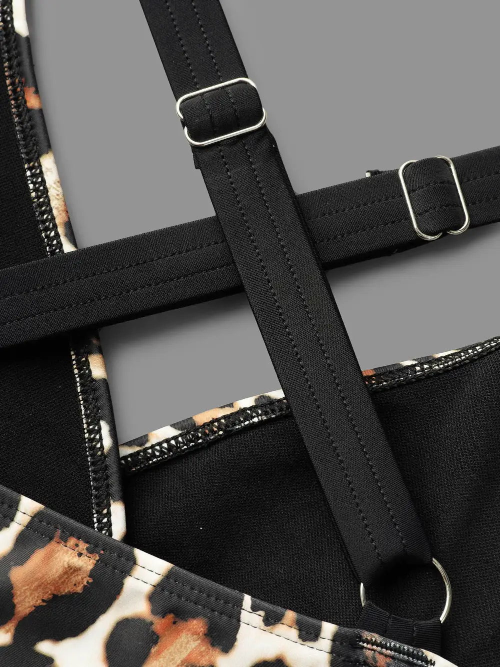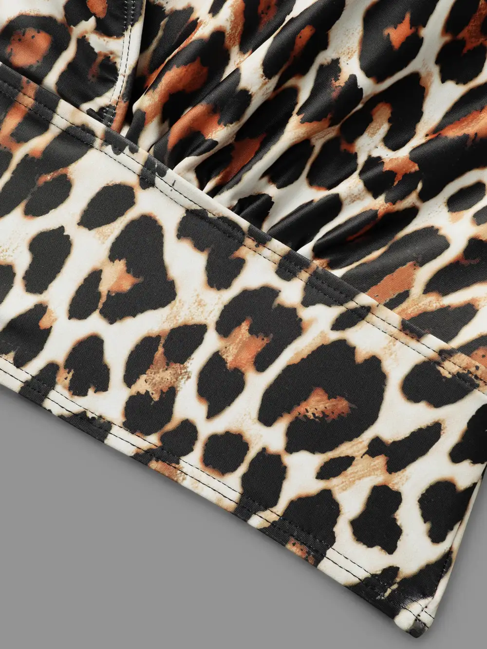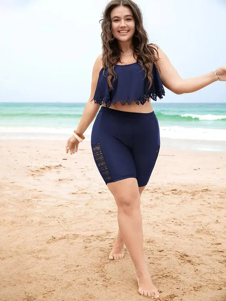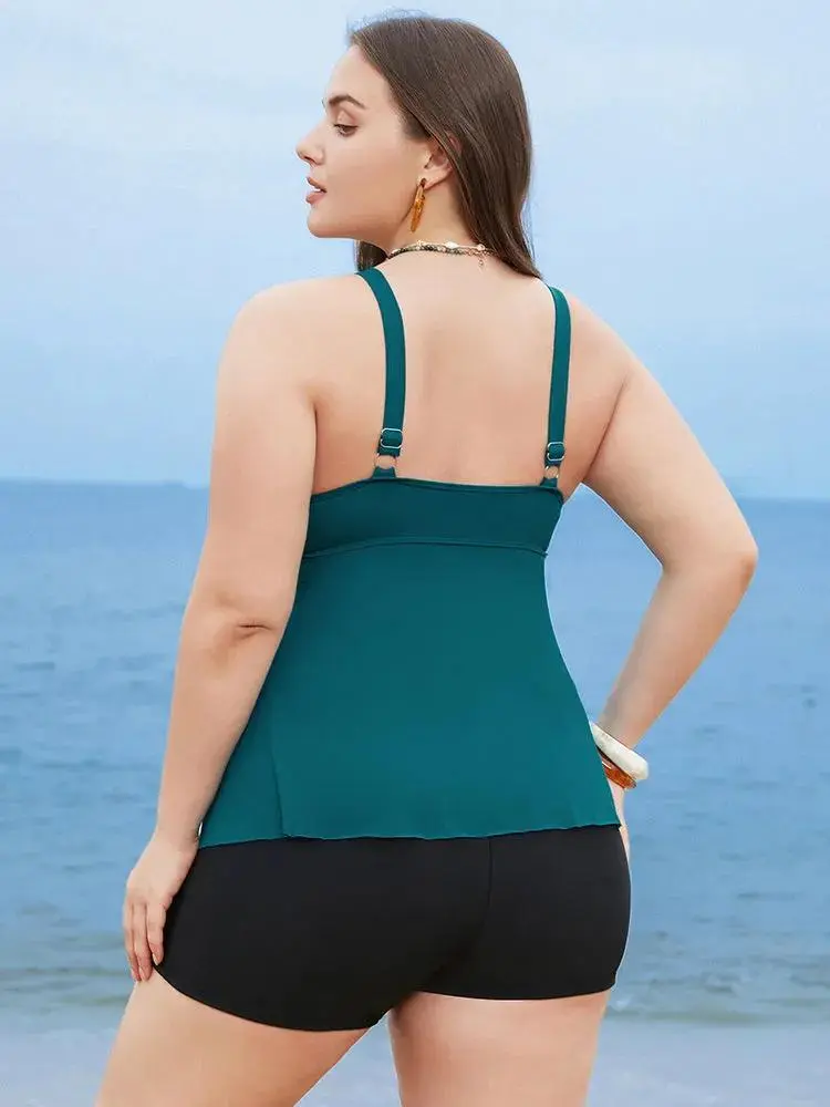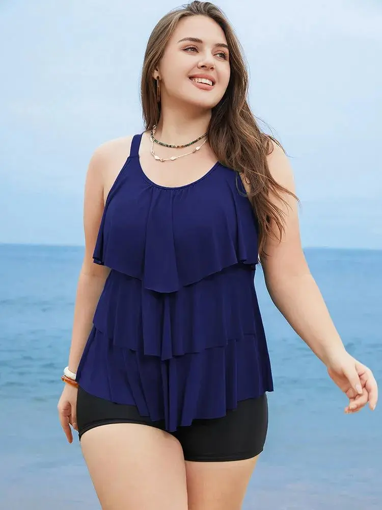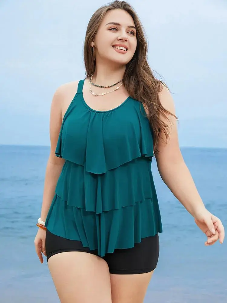 Ruffle Trim Adjustable Straps Gathered Sculpt Waist Swim Dress
