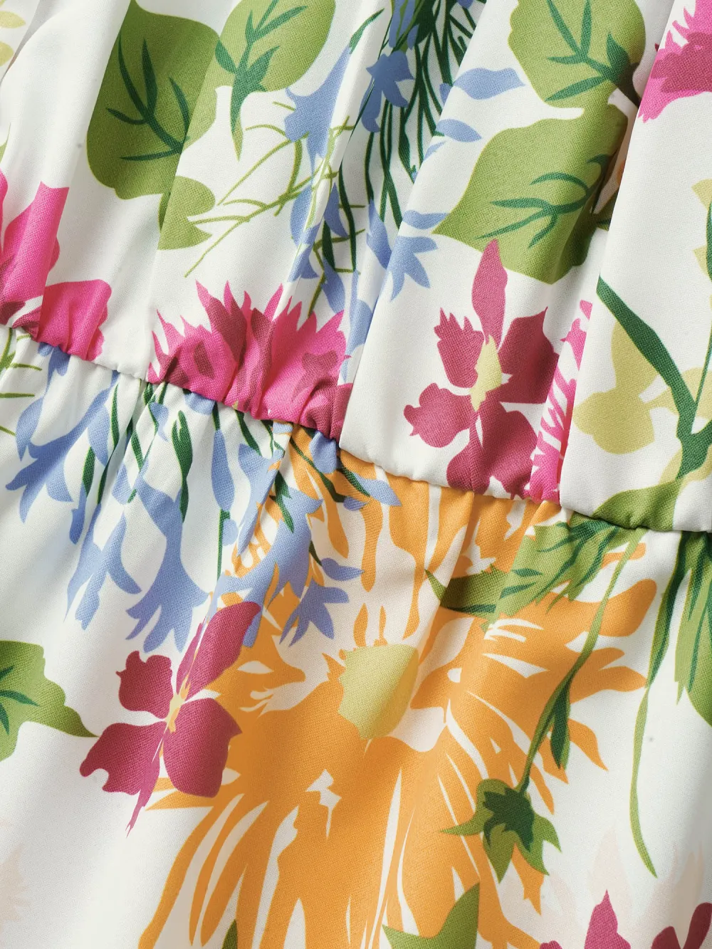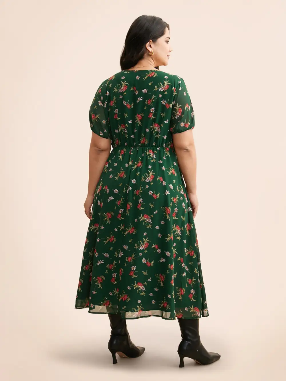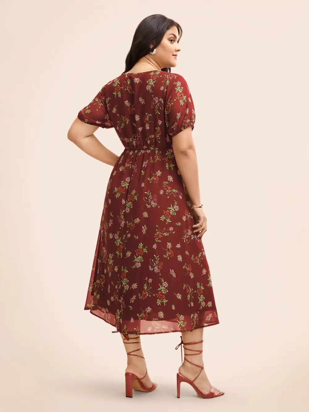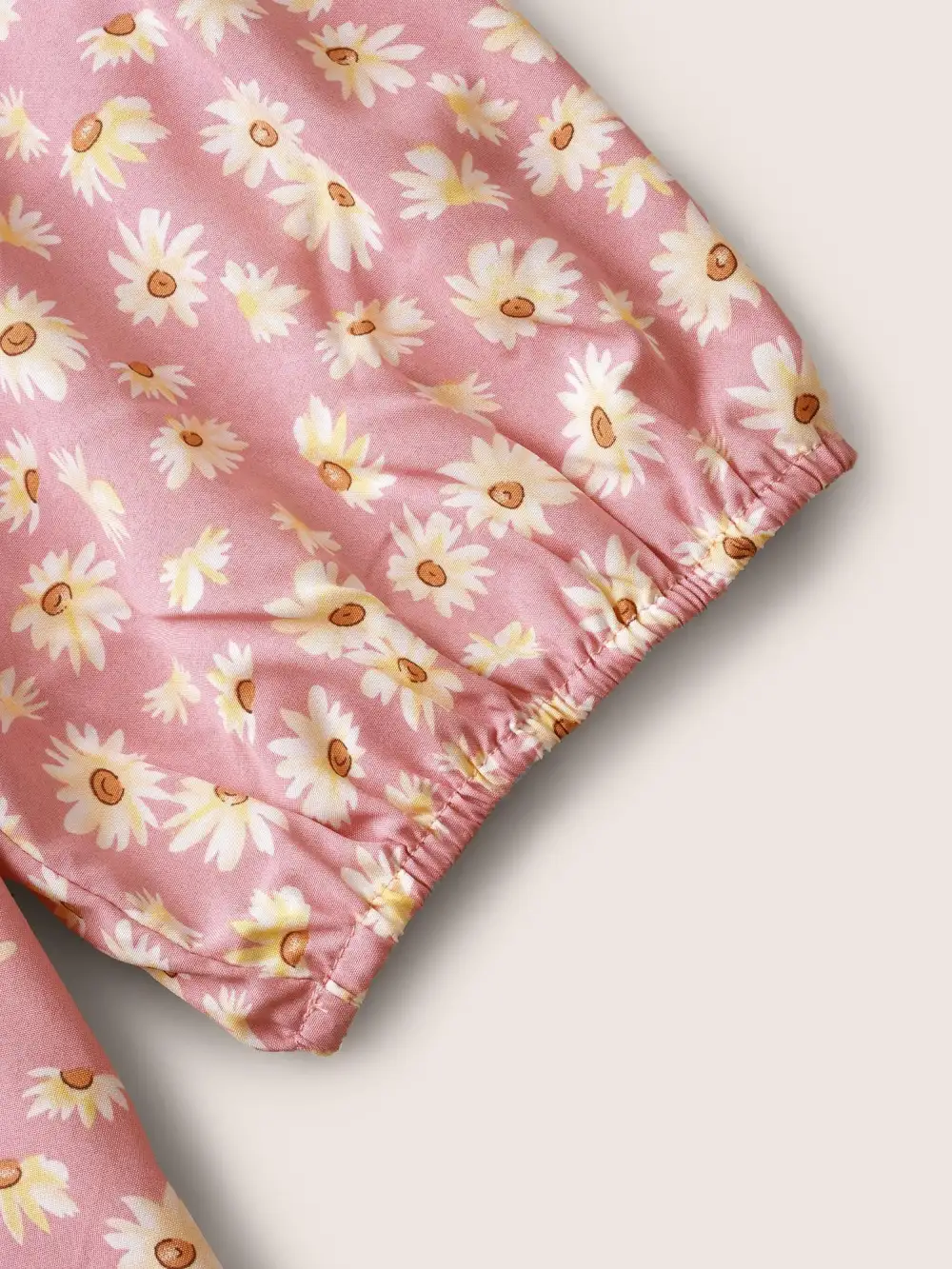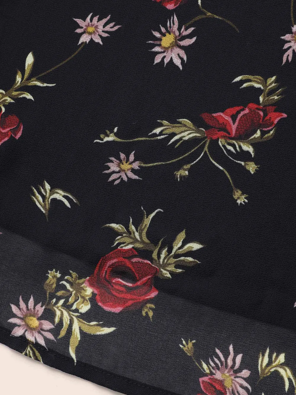 Ditsy Floral Shirred Ruffle Sleeve Elastic Waist Blouse