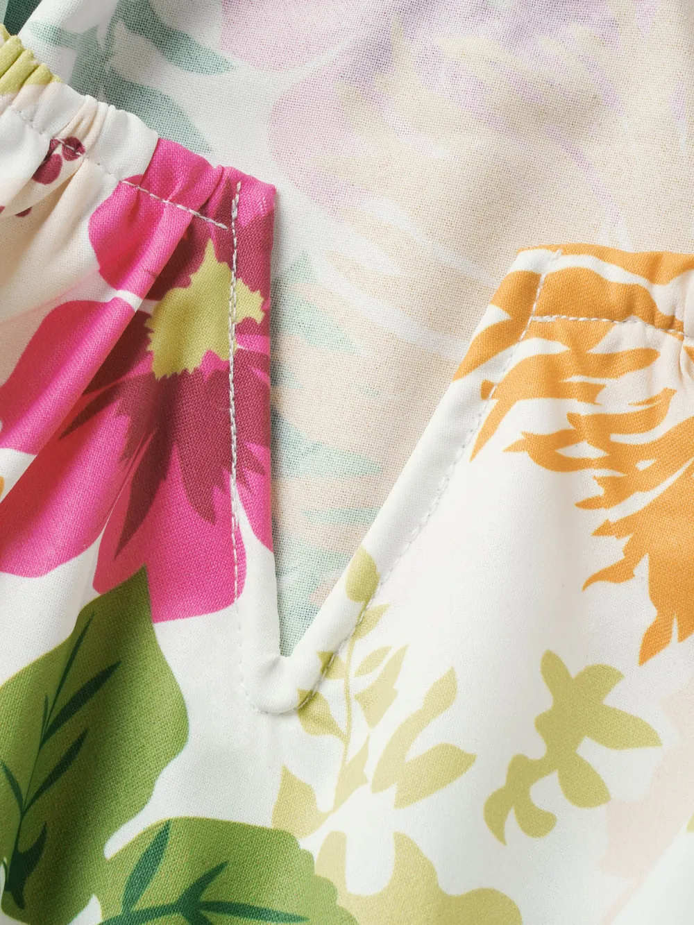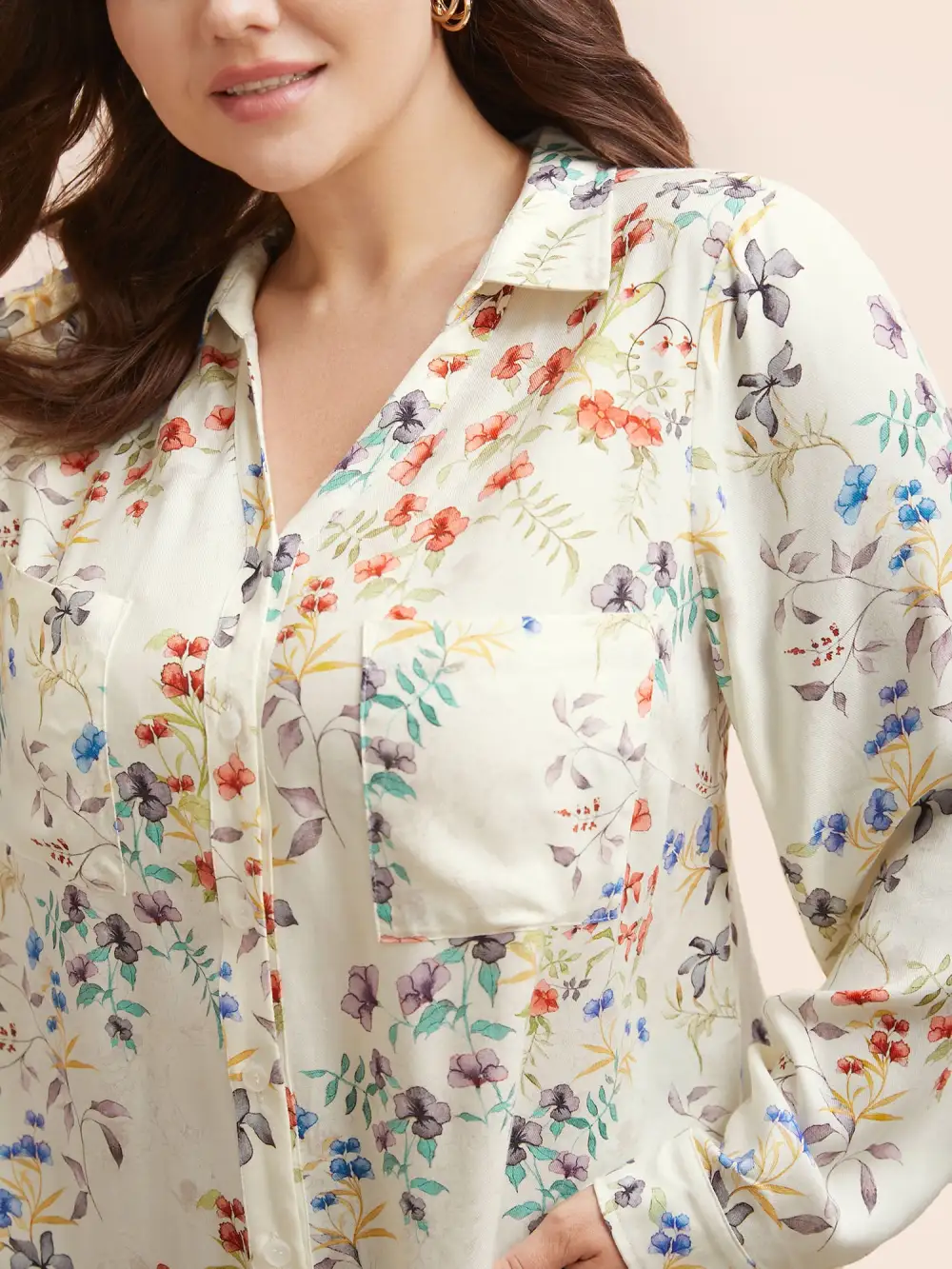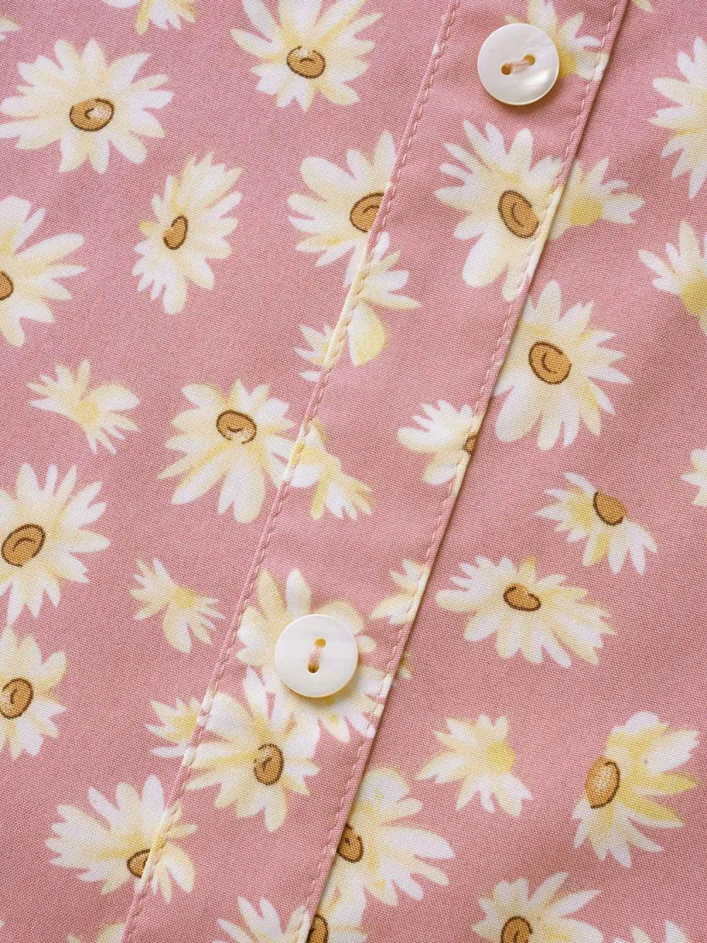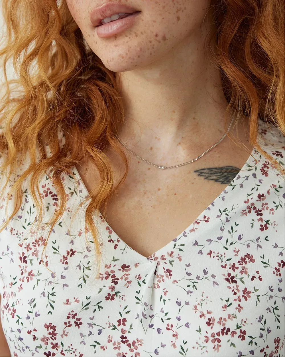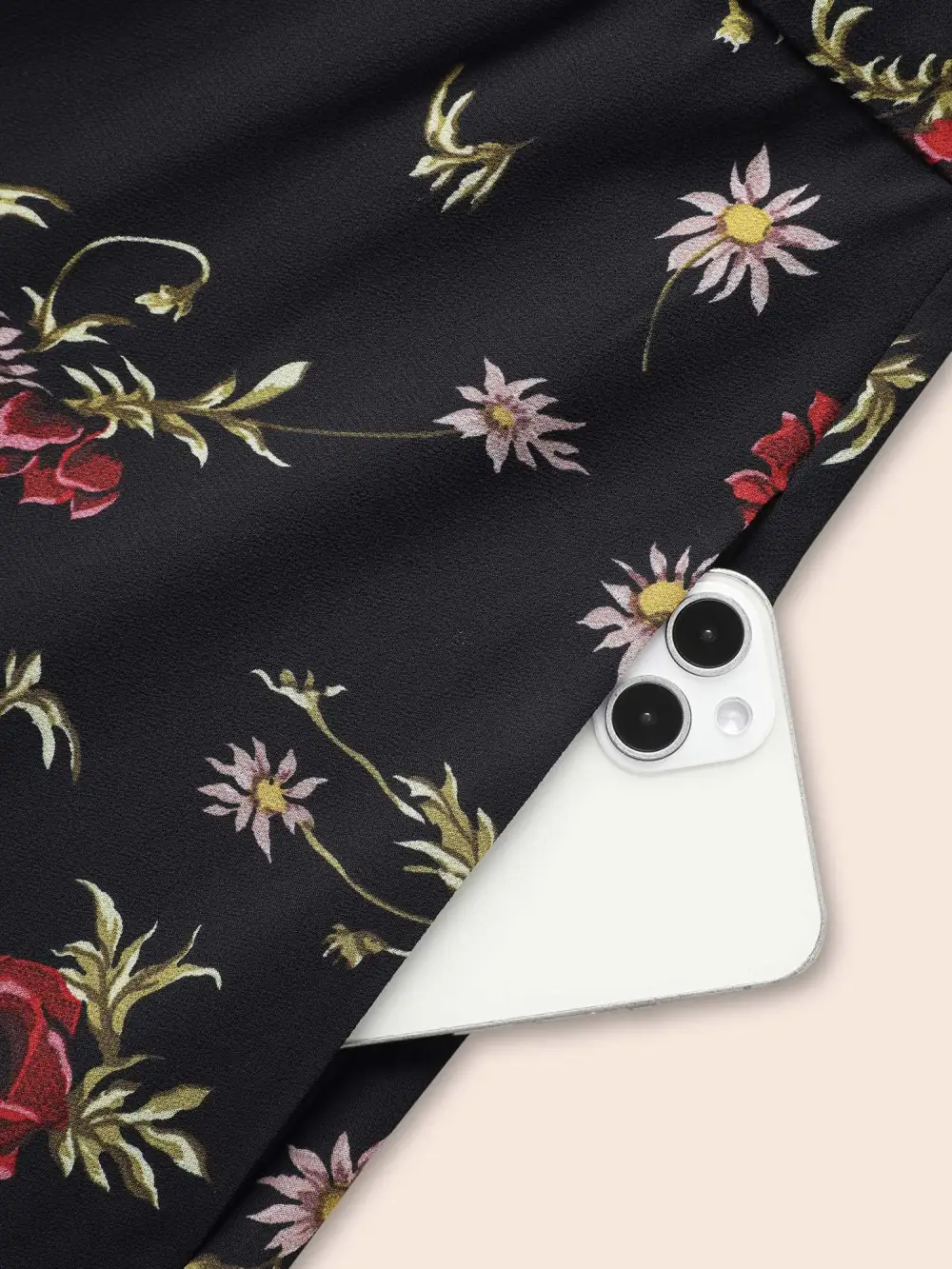 Ditsy Floral Shirred Ruffle Sleeve Elastic Waist Blouse