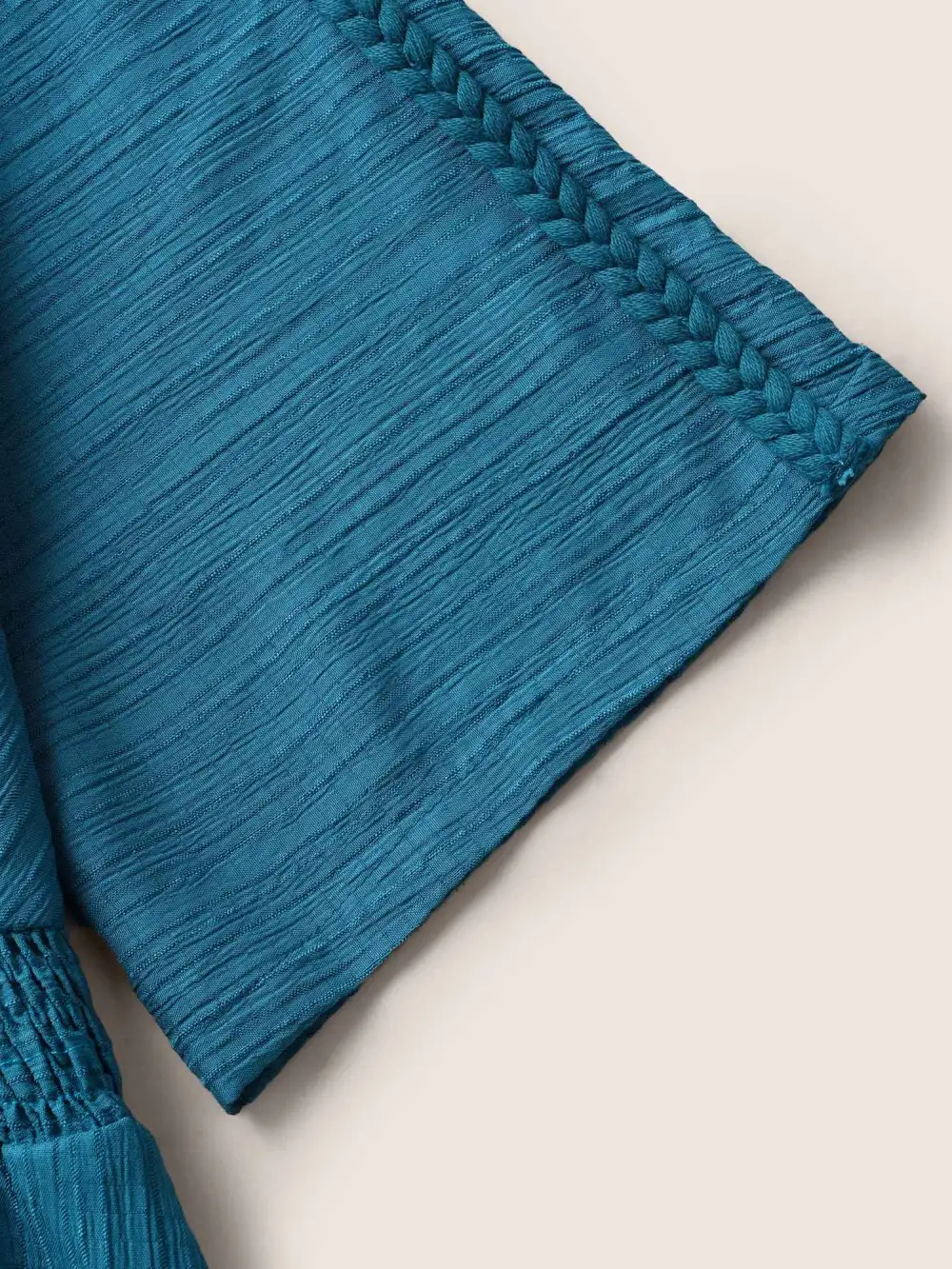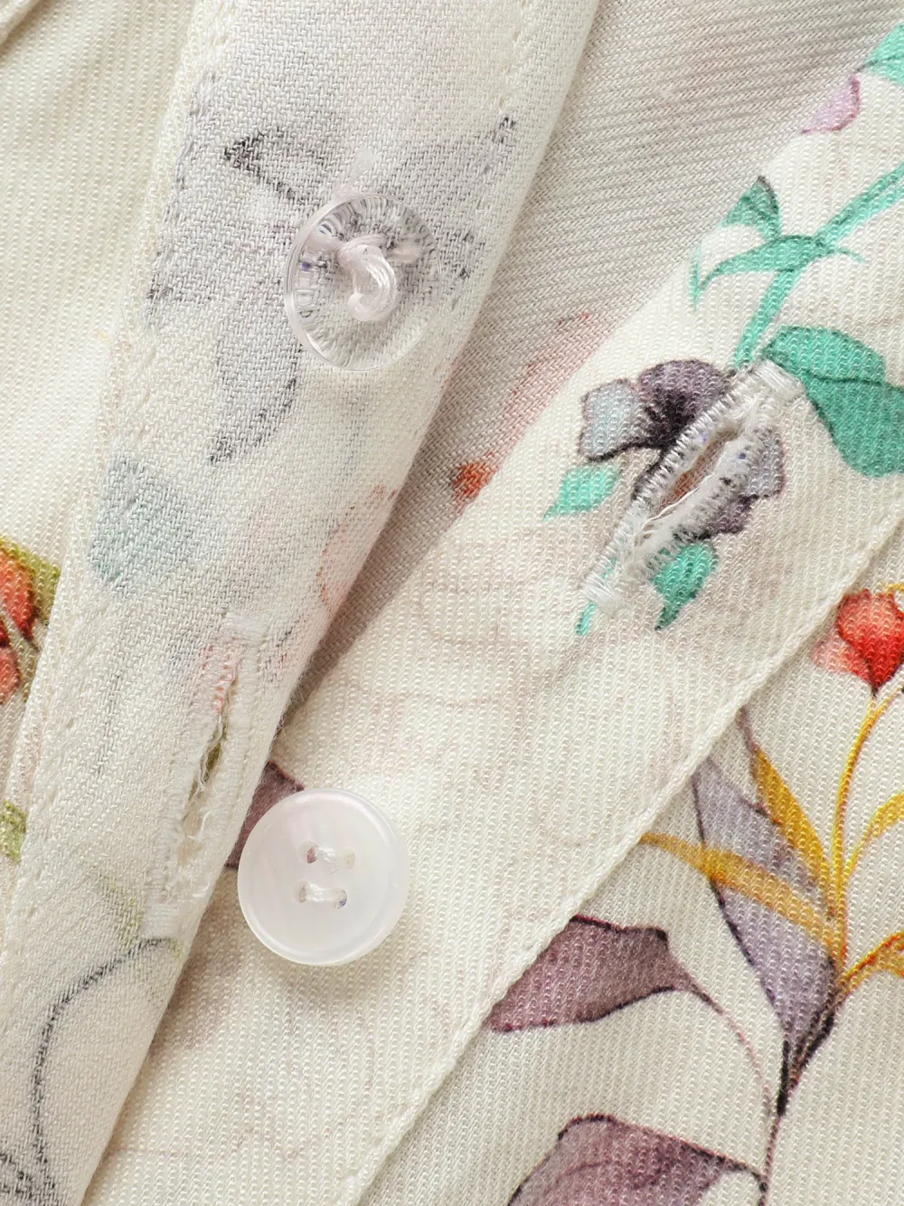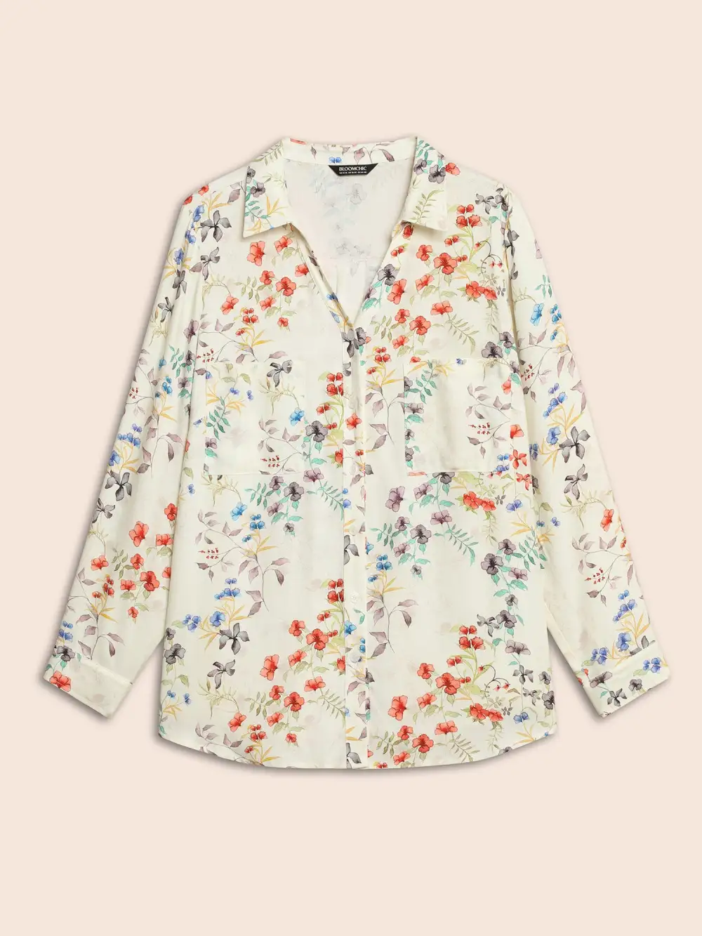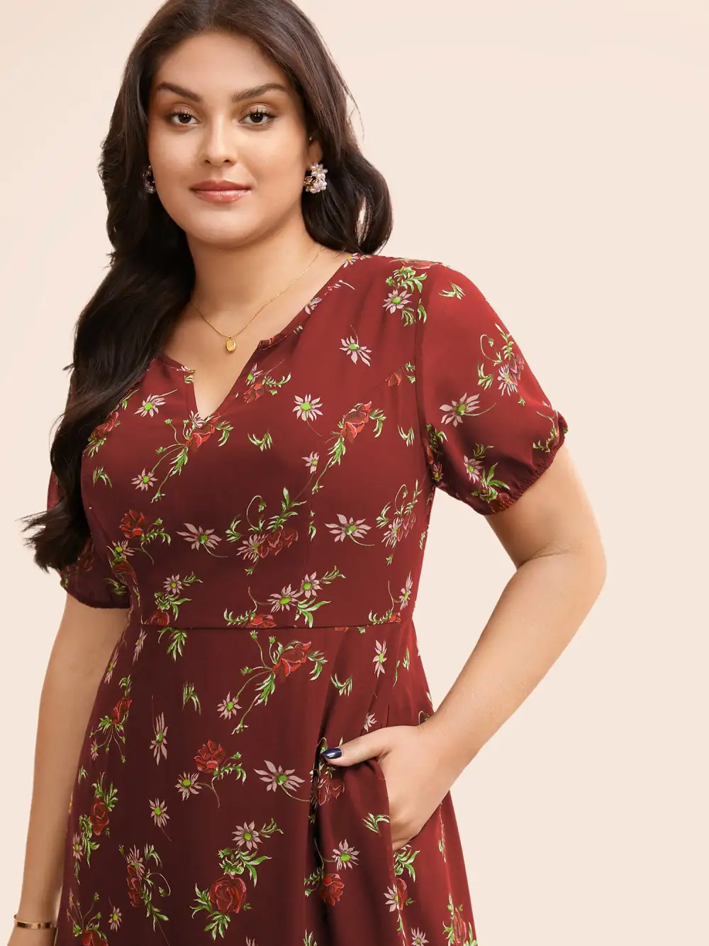Ditsy Floral Shirred Ruffle Sleeve Elastic Waist Blouse