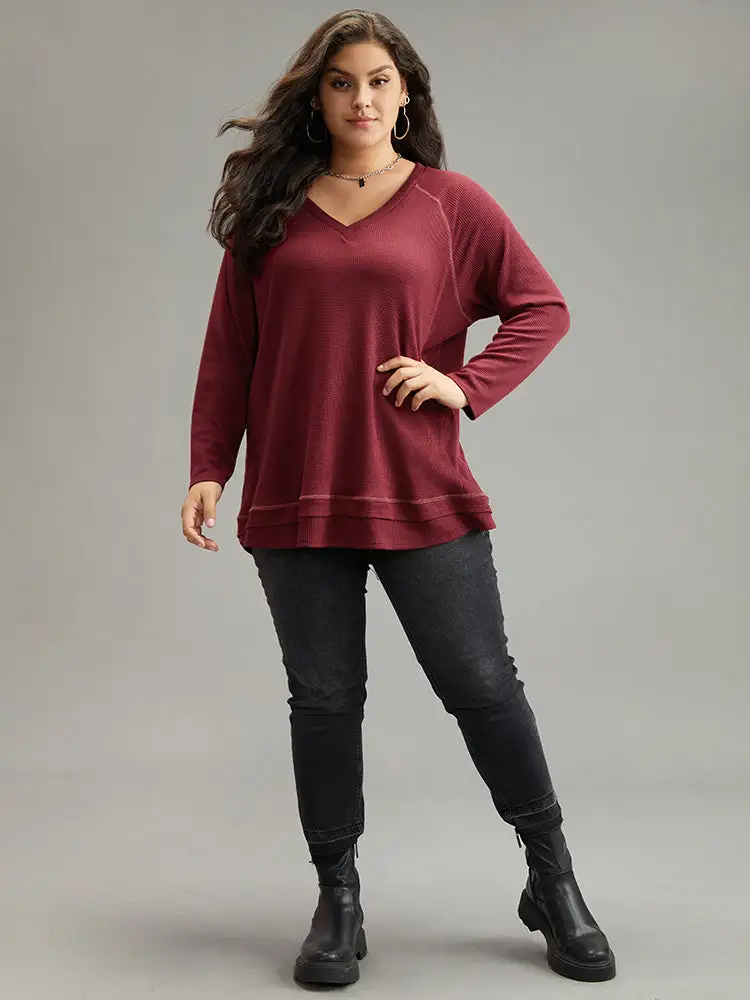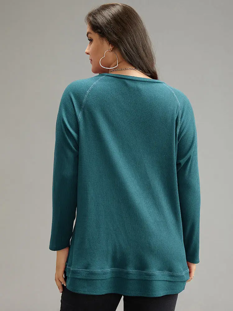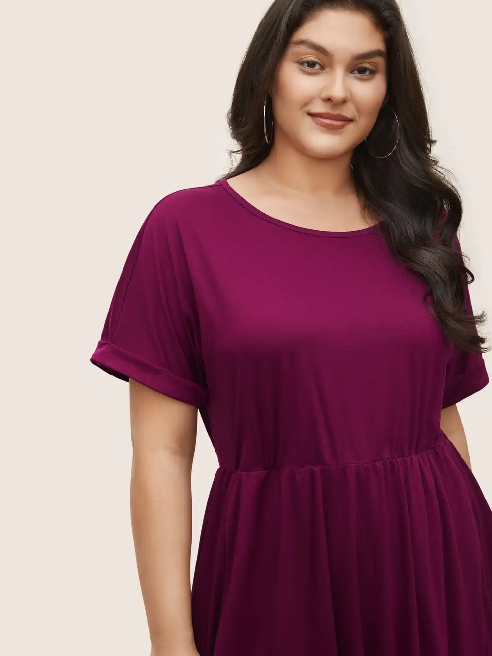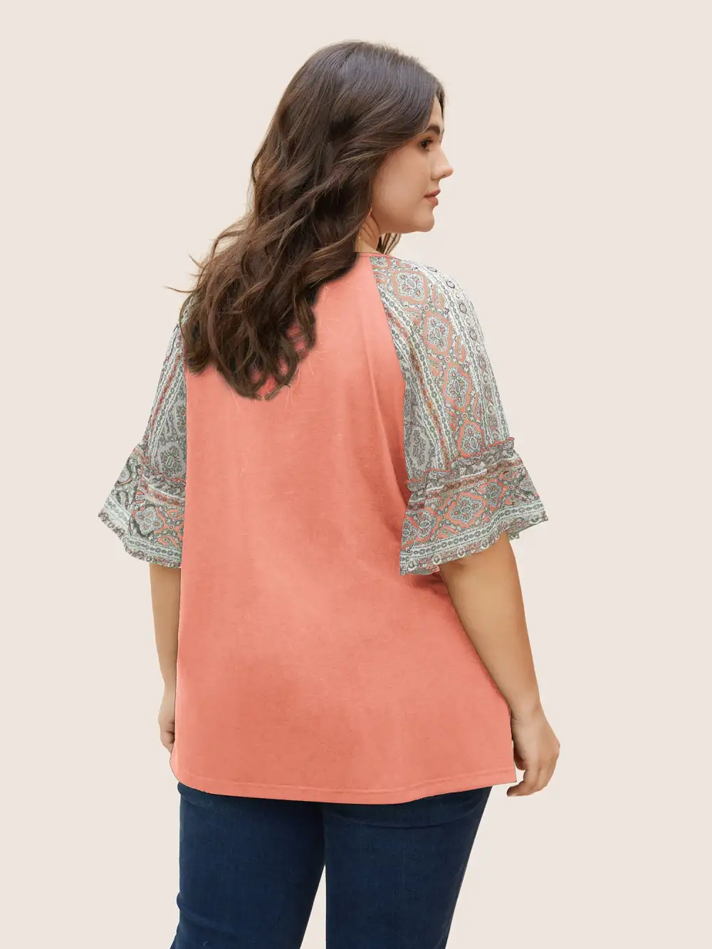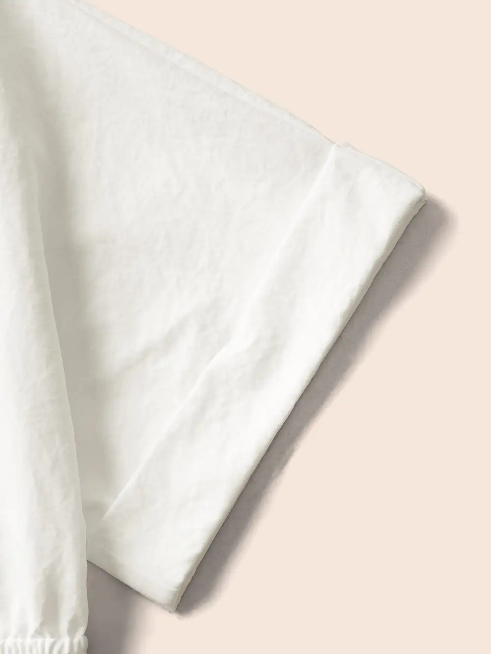 Solid Ruffle Sleeve High Low Hem T-Shirt