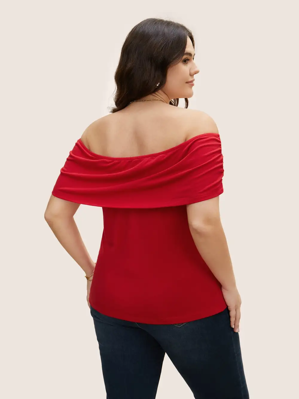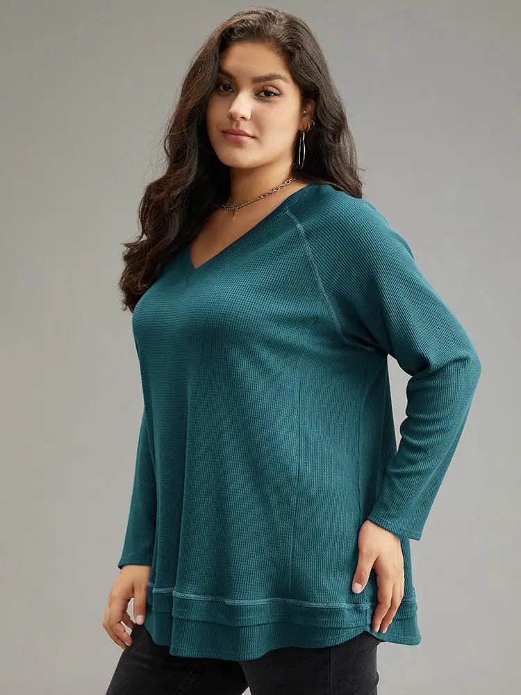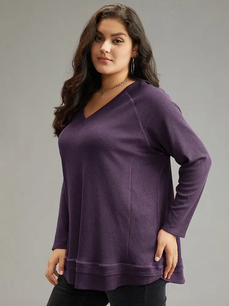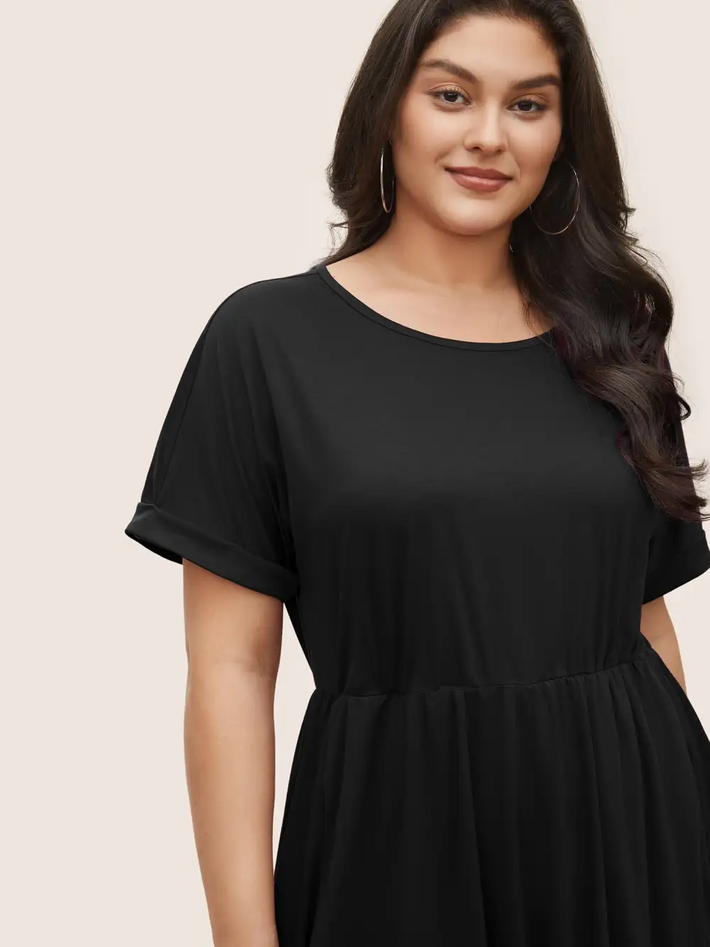 Solid Ruffle Sleeve High Low Hem T-Shirt