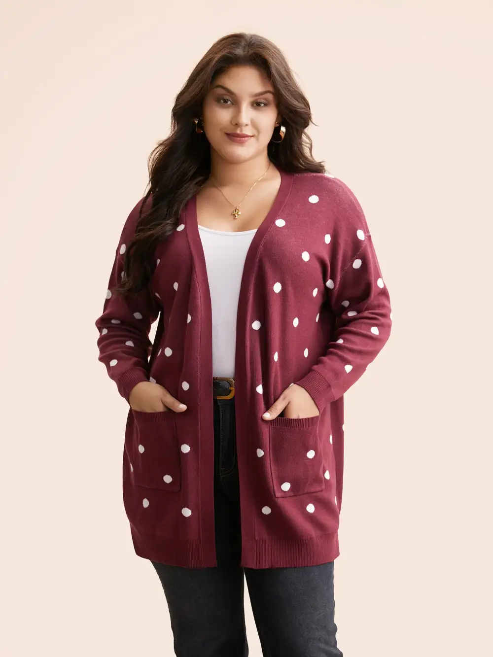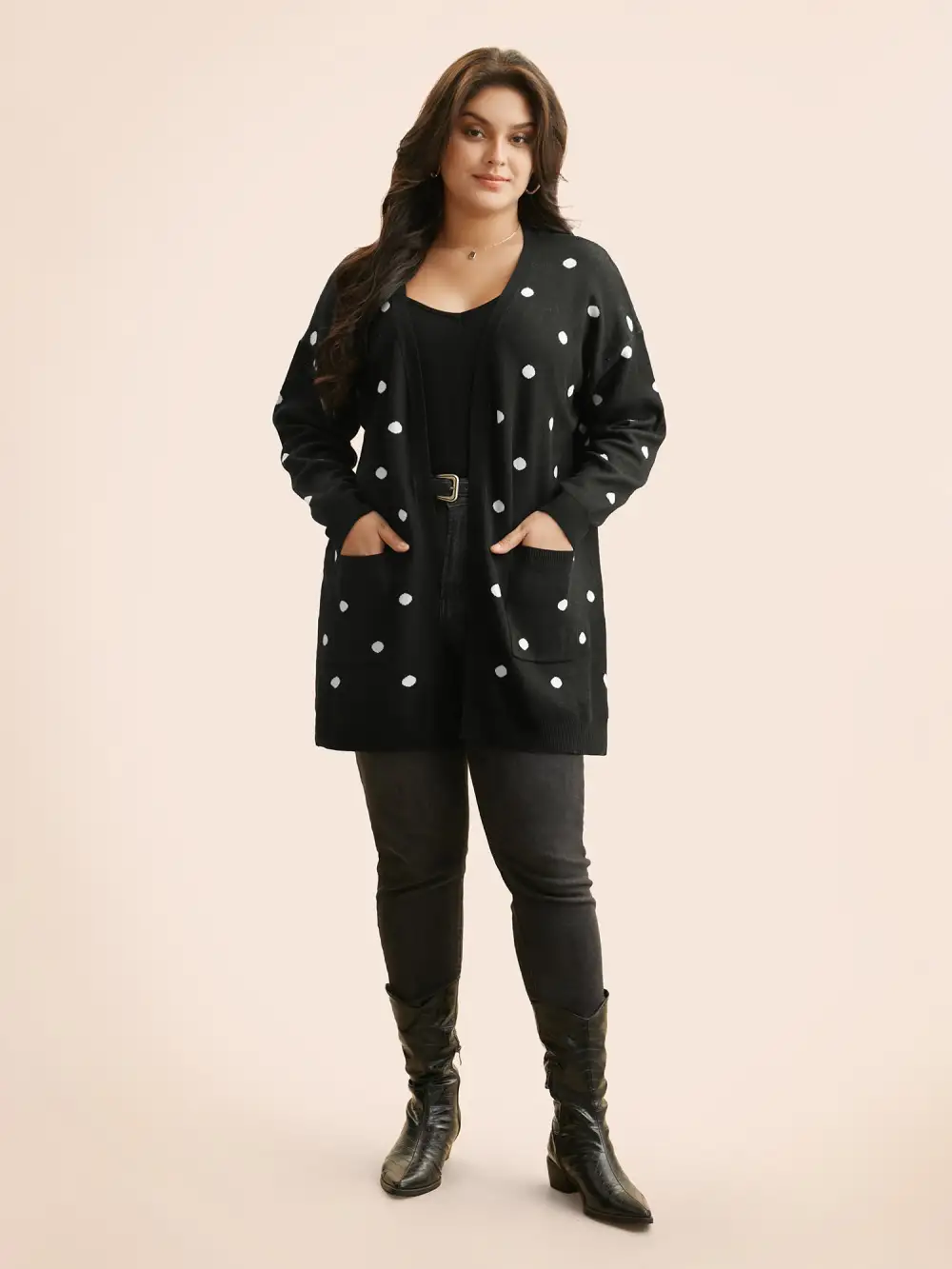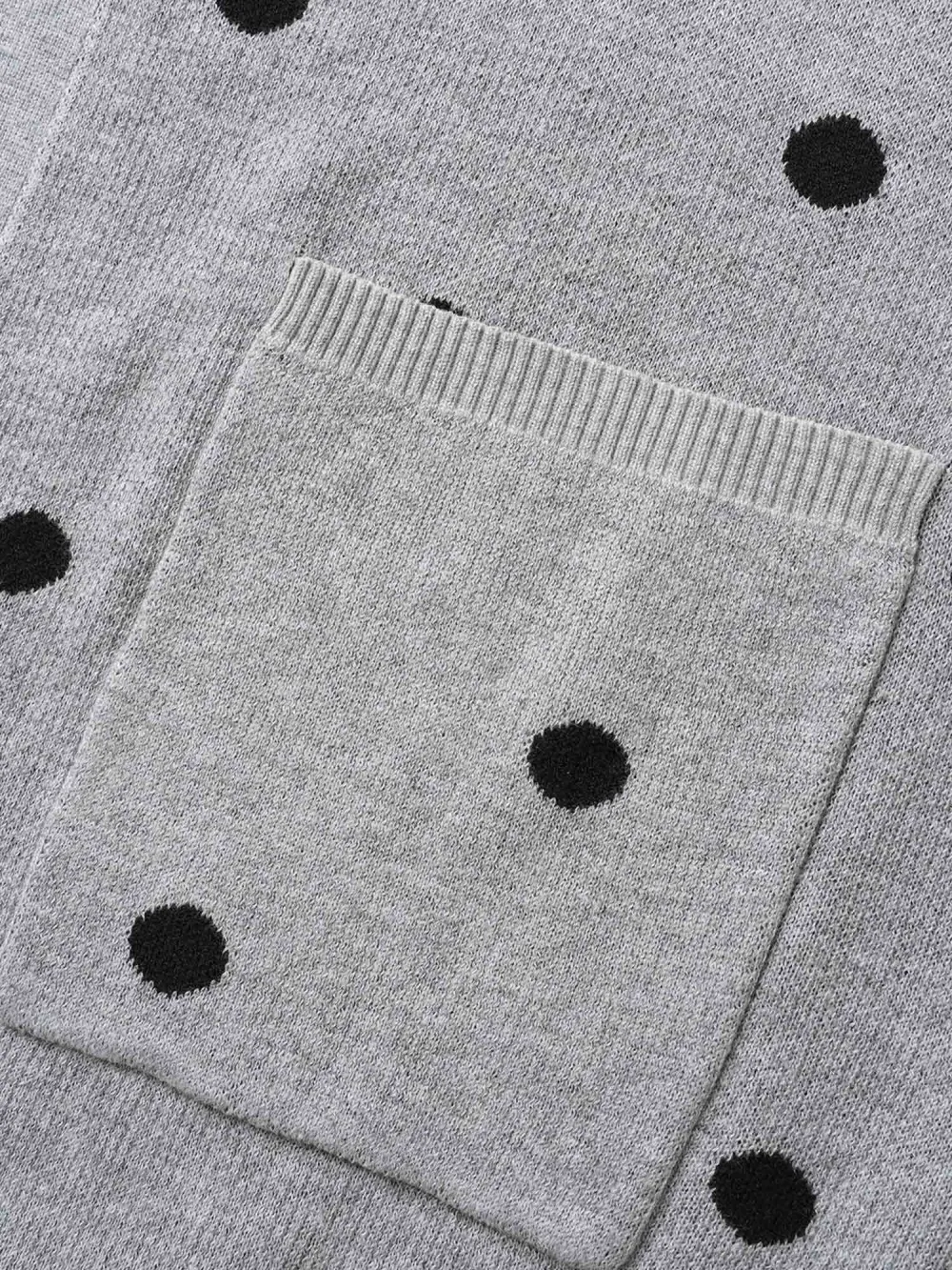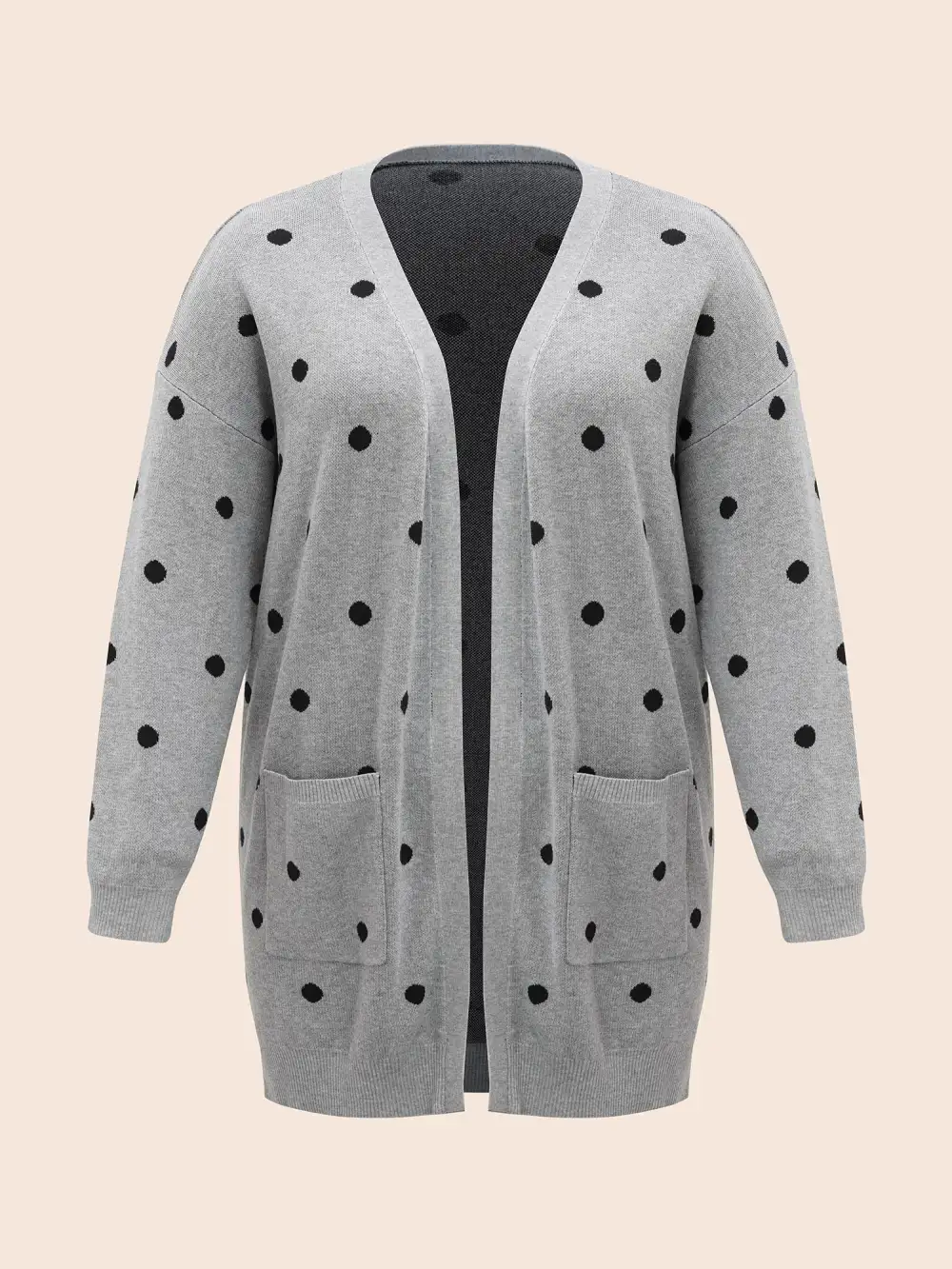 Polka Dot Kimono Collar Patch Pocket Cardigan
