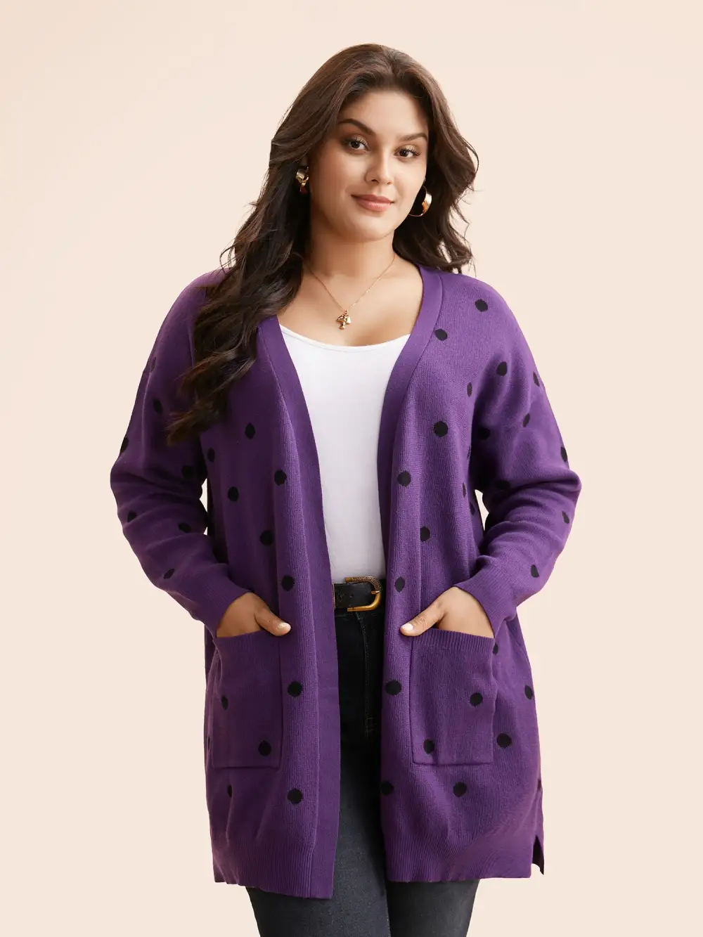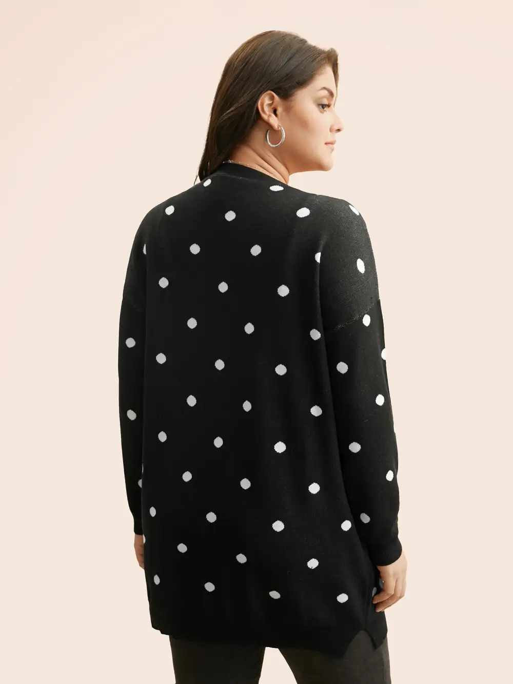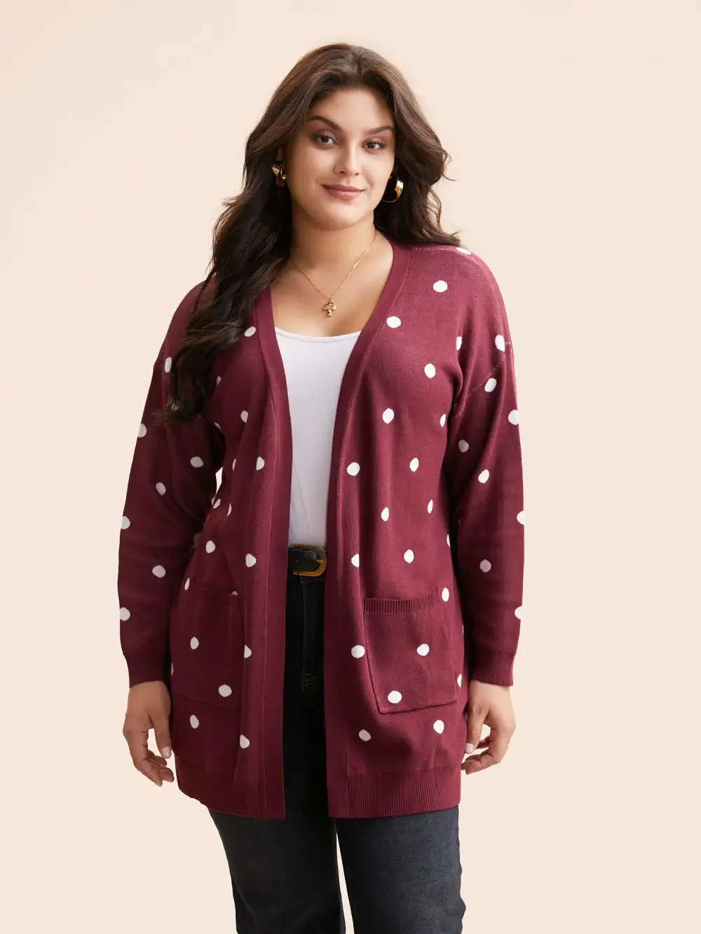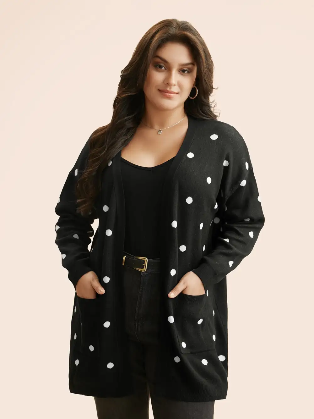 Polka Dot Kimono Collar Patch Pocket Cardigan