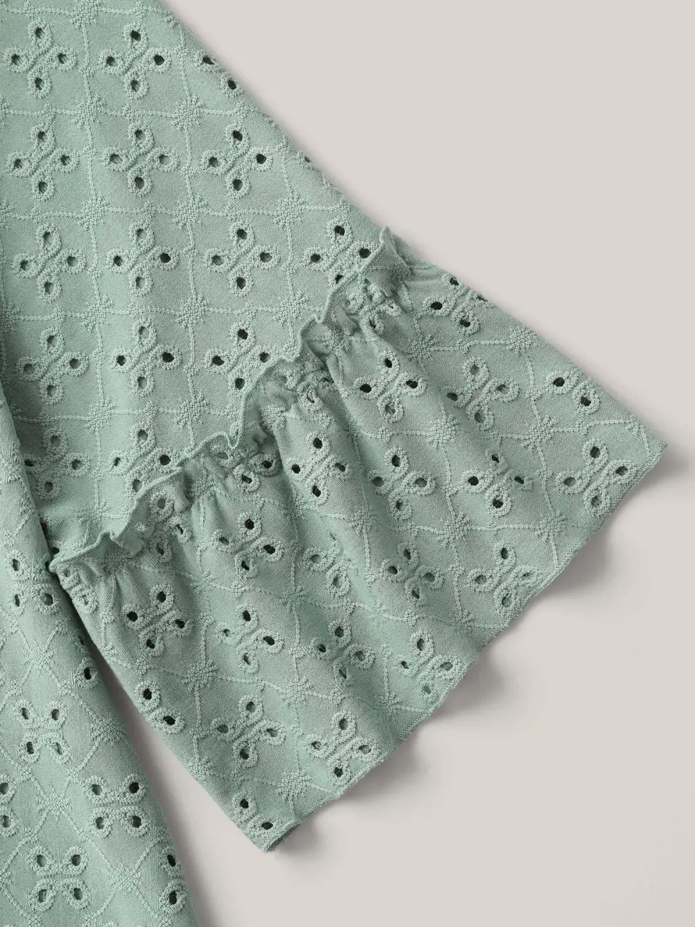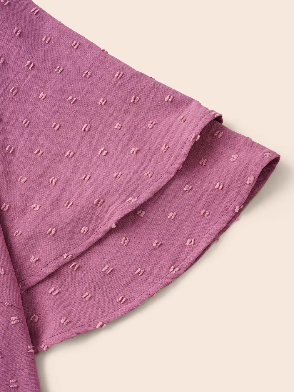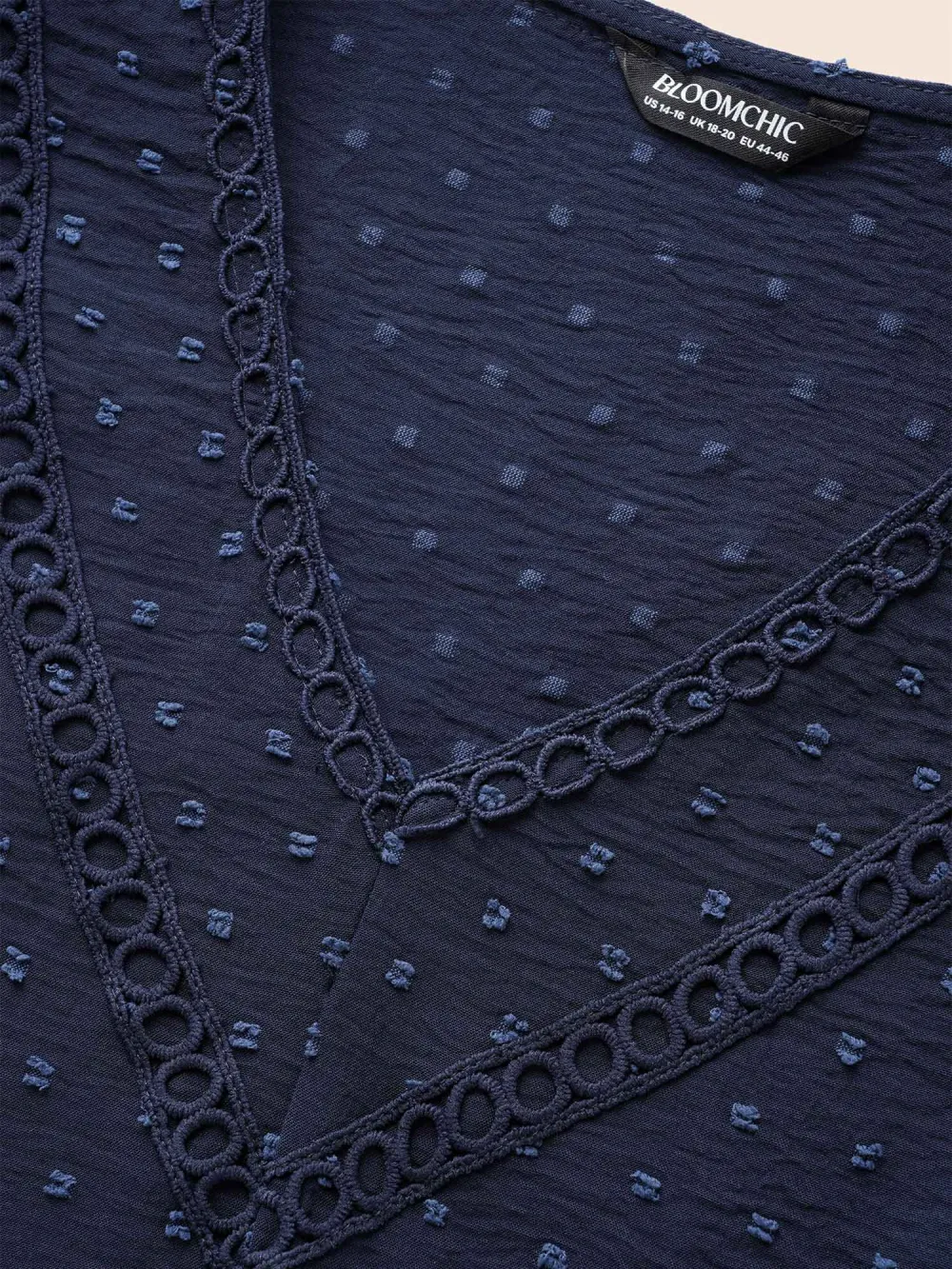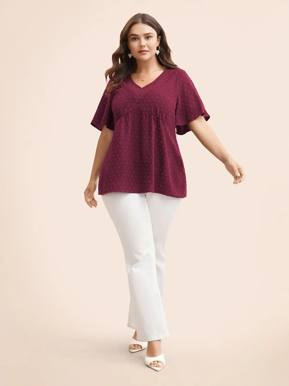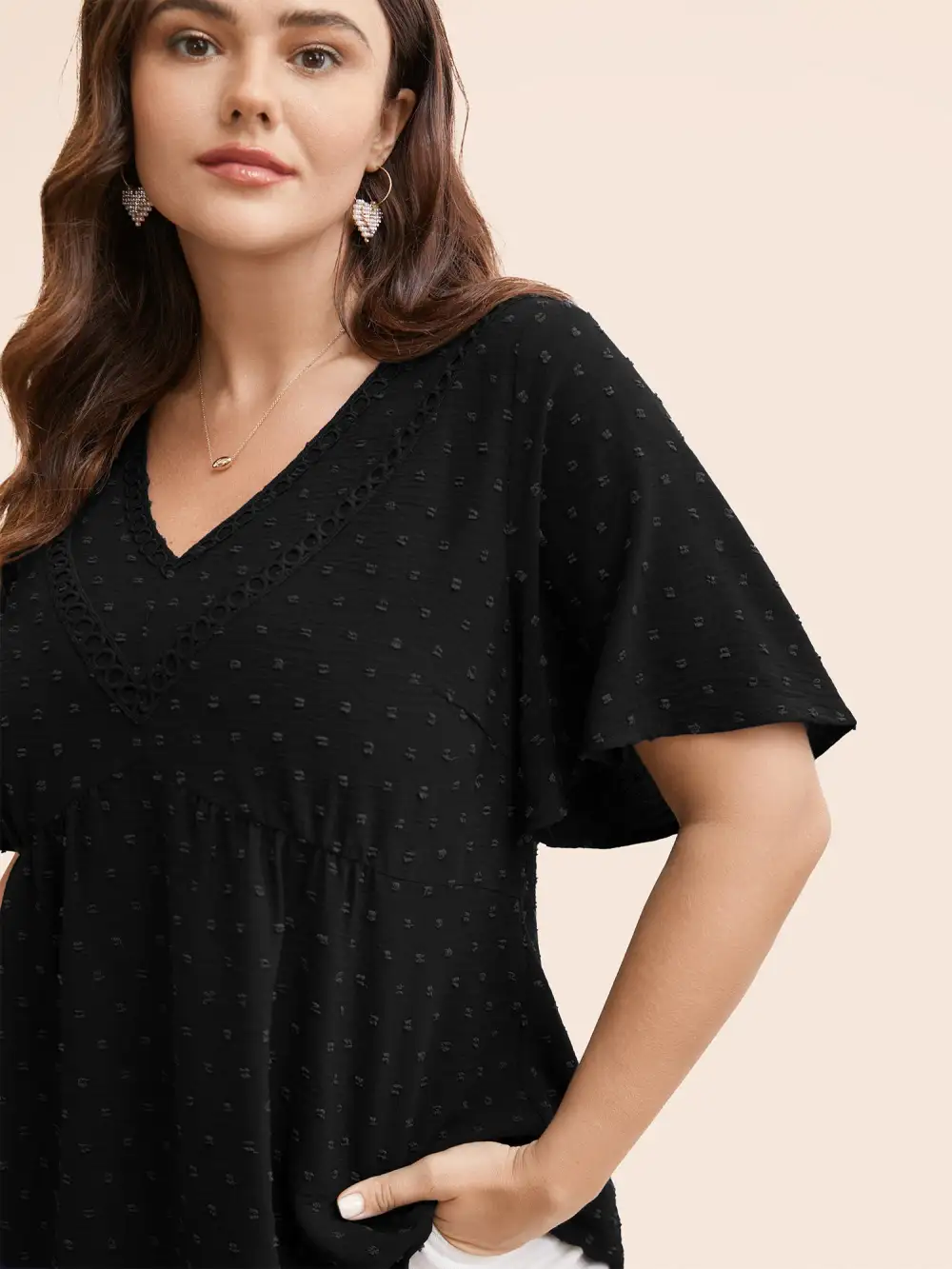 Polka Dot Frill Trim V Neck Flutter Blouse