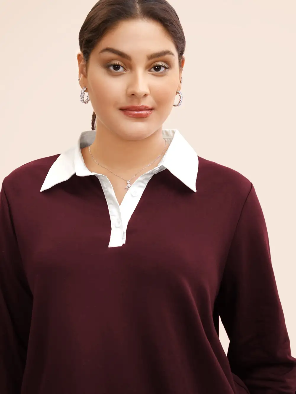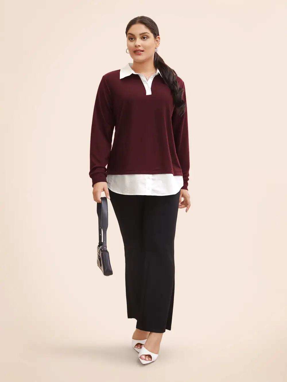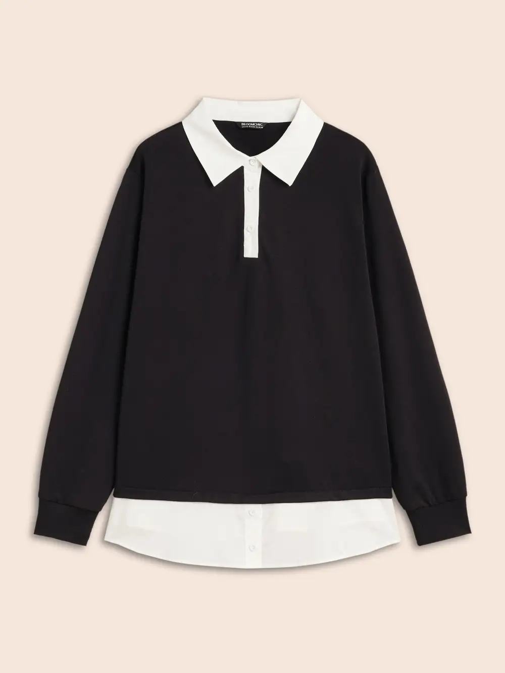 2-In-1 Shirt Collar Contrast Patchwork Sweatshirt