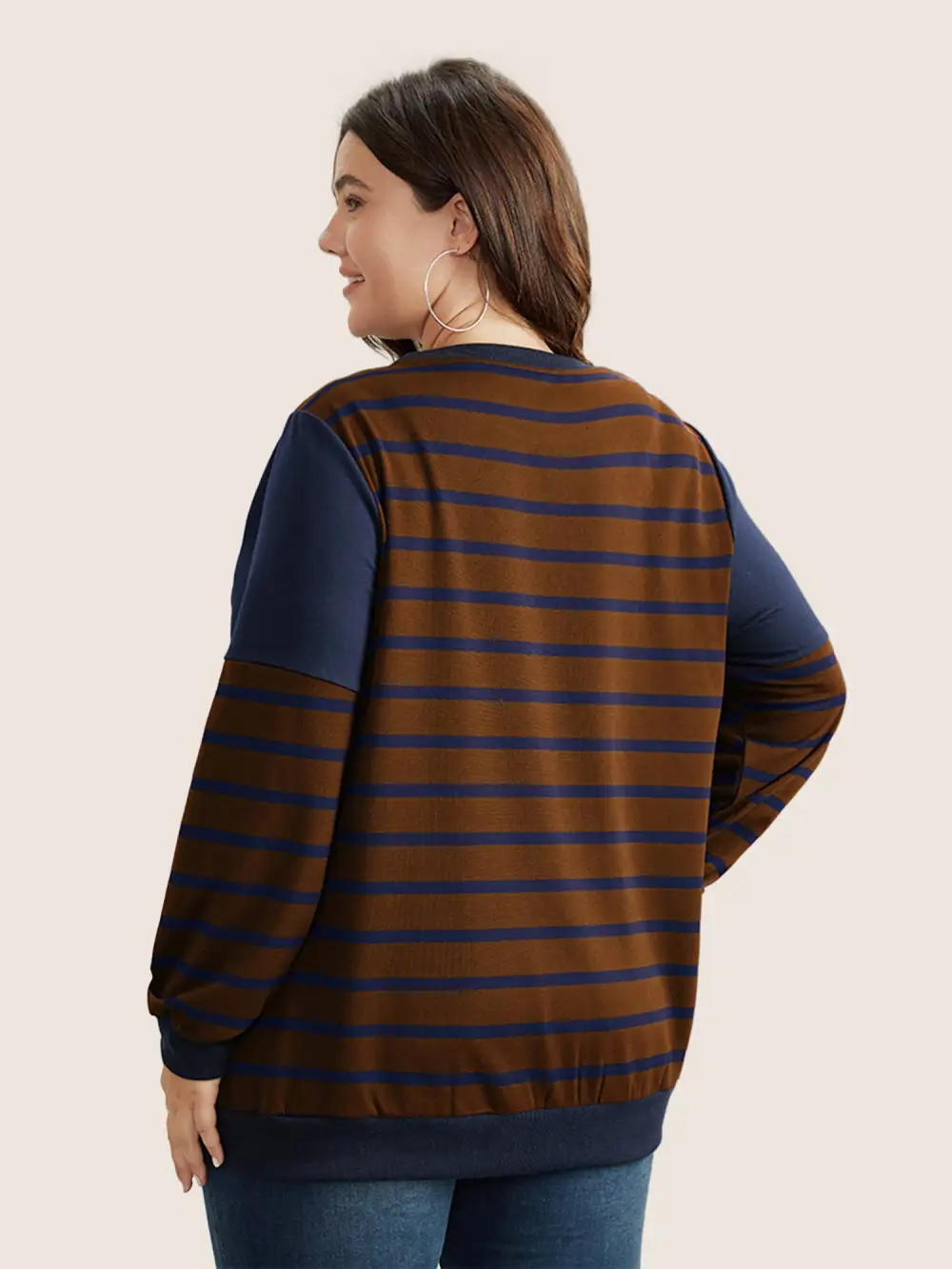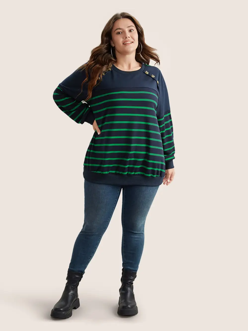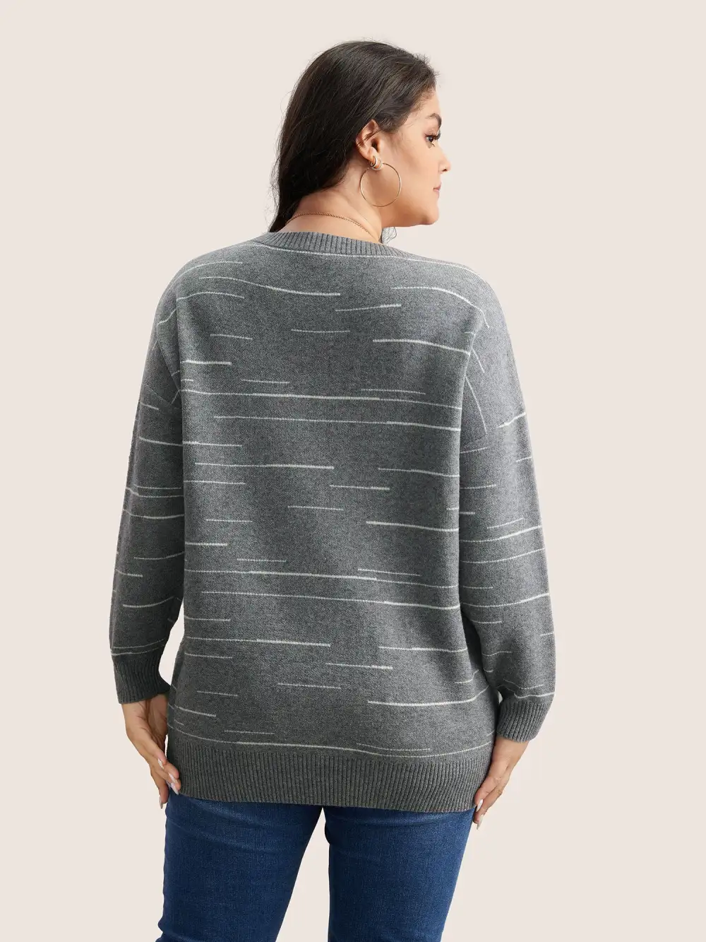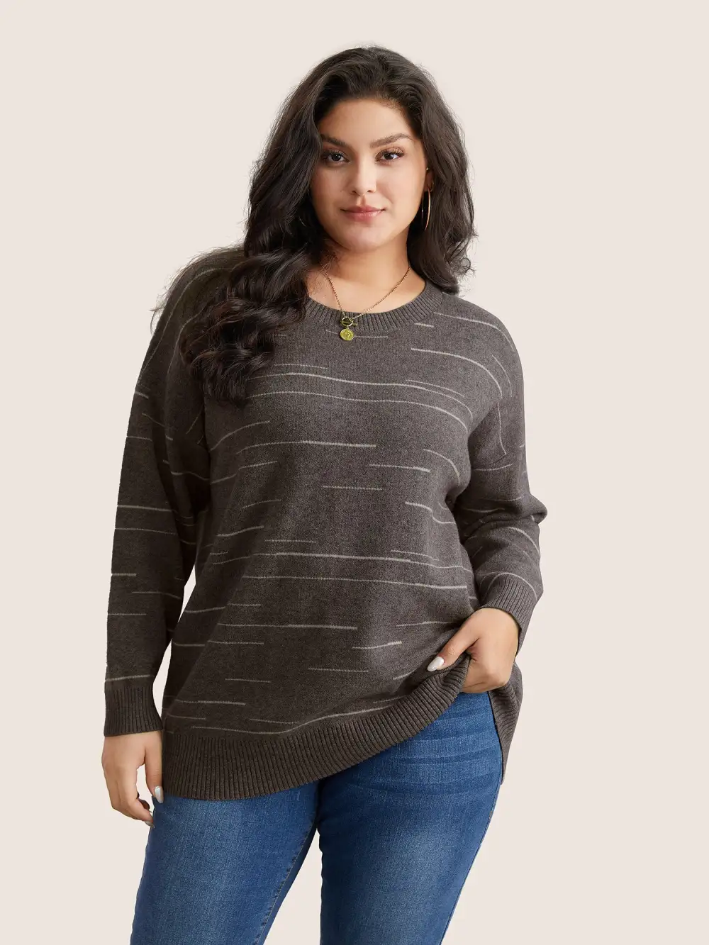 Supersoft Essentials Asymmetrical Striped Round Neck Pullover