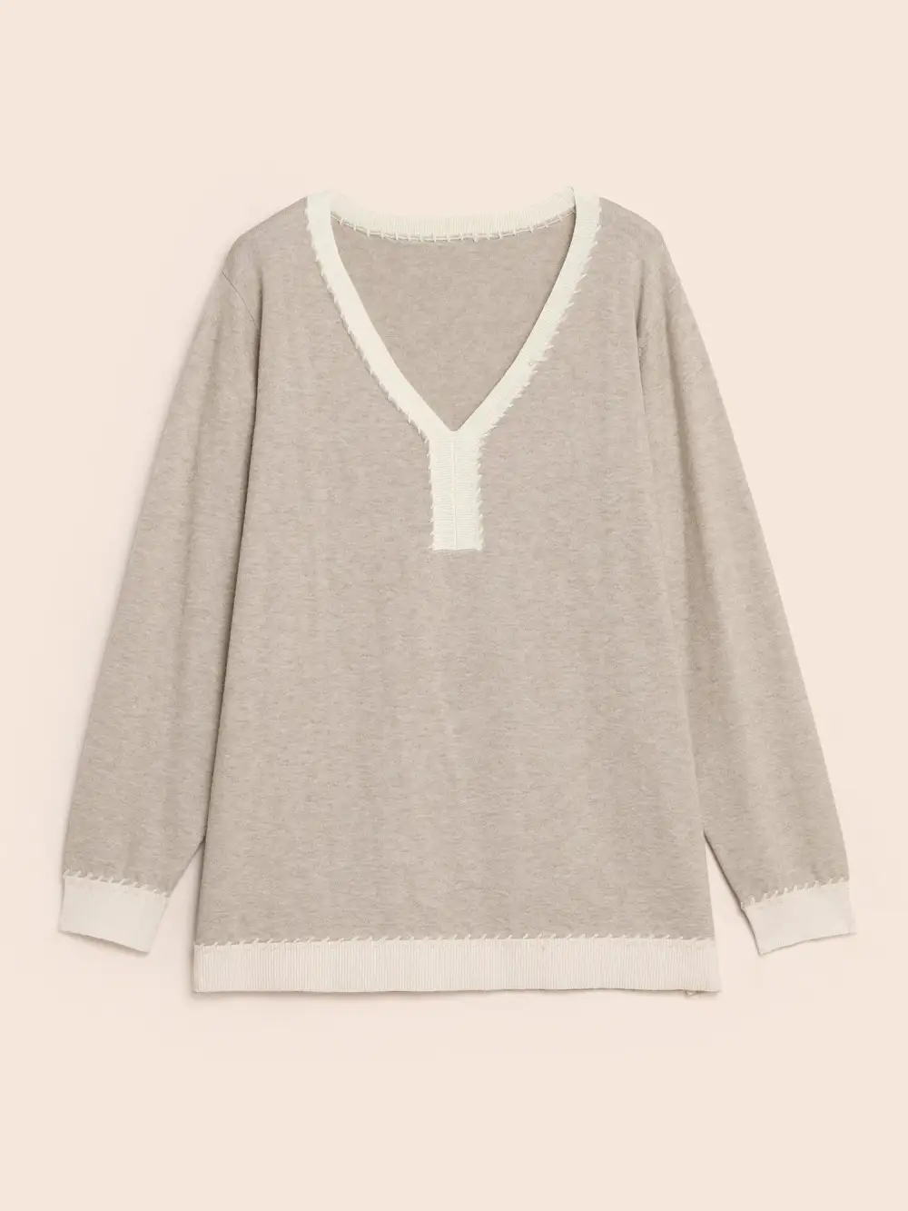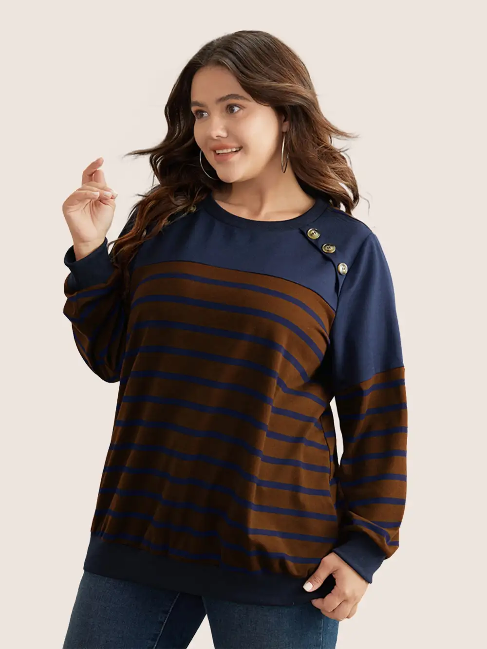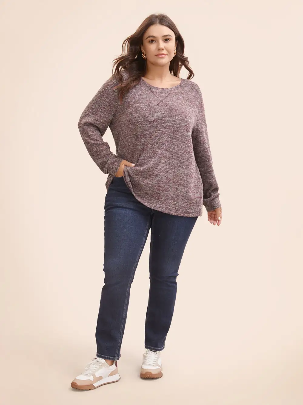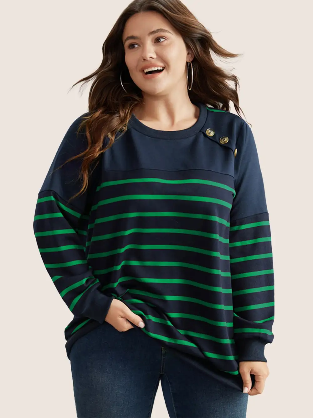Supersoft Essentials Asymmetrical Striped Round Neck Pullover