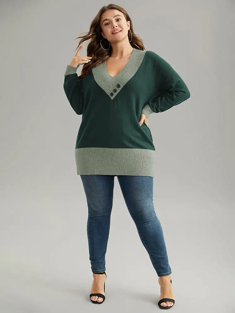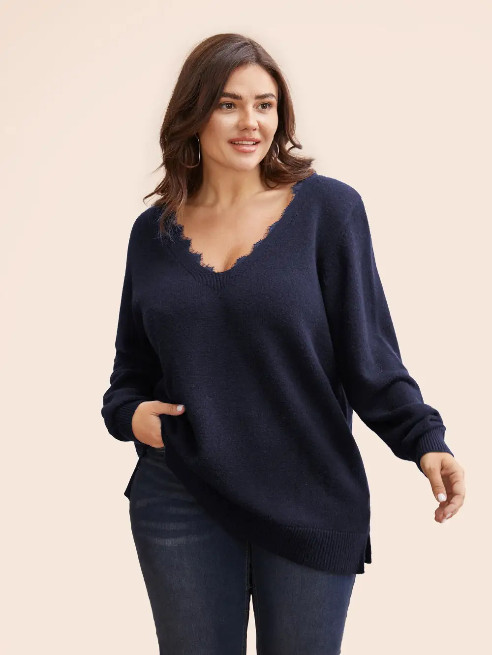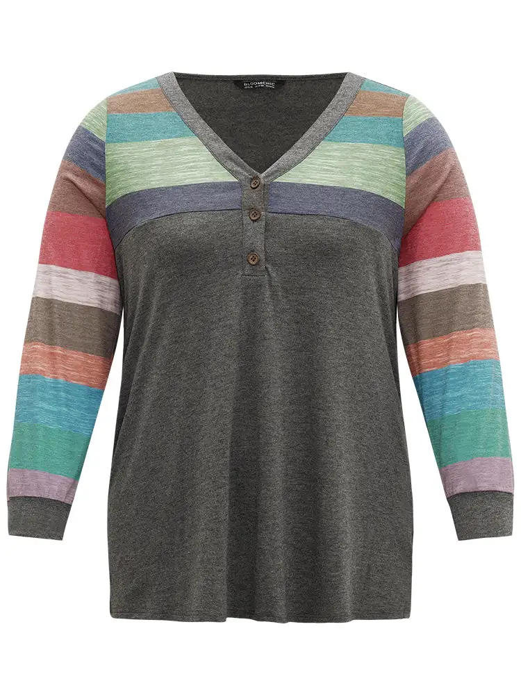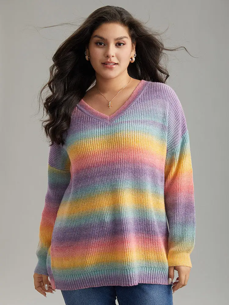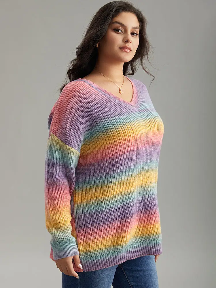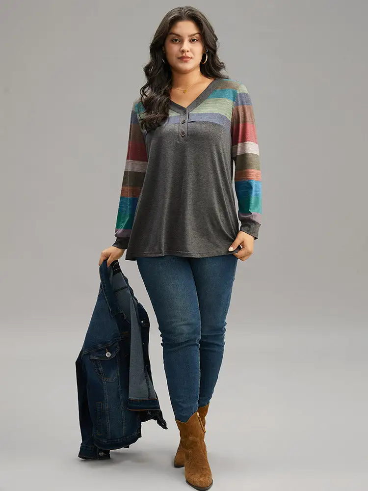 Supersoft Essentials Asymmetrical Striped Round Neck Pullover