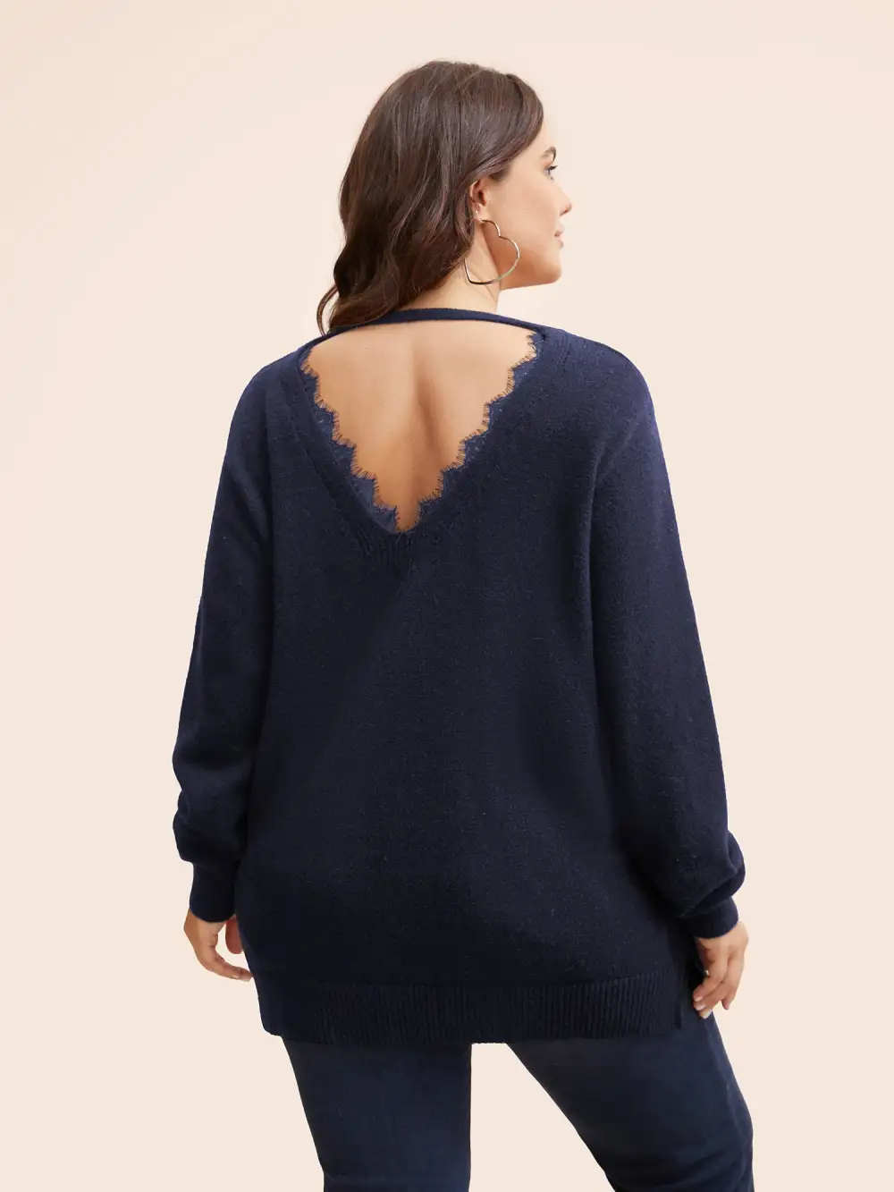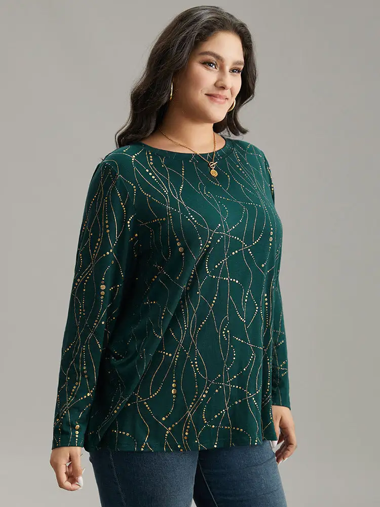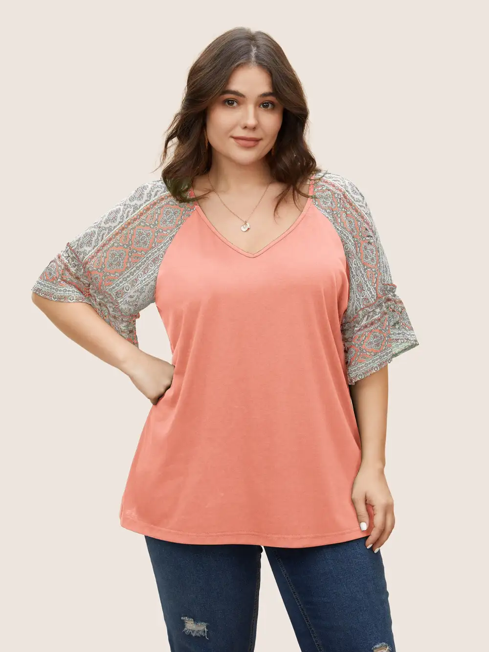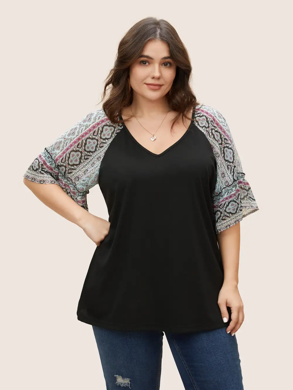 Velvet Patchwork Mesh Sequin Notched T-Shirt