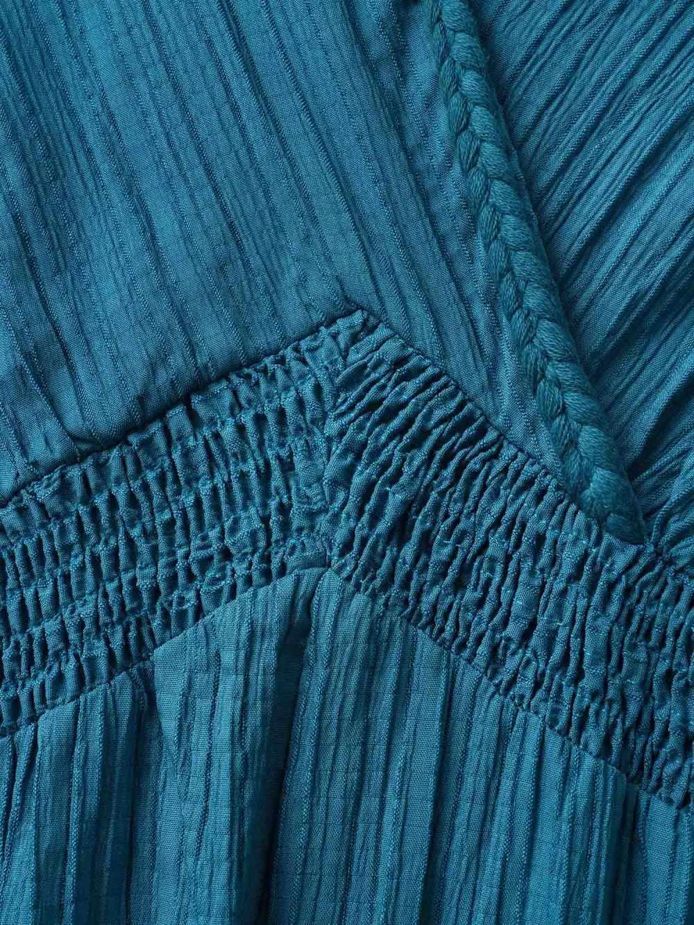 Sequin Mesh Lantern Sleeve Wrap Belted Striped Blouse